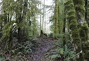 연어가 돌아오는 길목의 원시림 지역입니다. 동네 옆에 있지만 원시림 면적이 제법 넓고, 갈림길이 많아, 여유시간에 맞춰 가벼운 산행을 할 수 있는 곳입니다. 이곳에서의 산책이 동네 사람들에게는 평범한 일상이지만 사실은 원시림 속에서의 특별한 경험입니다.