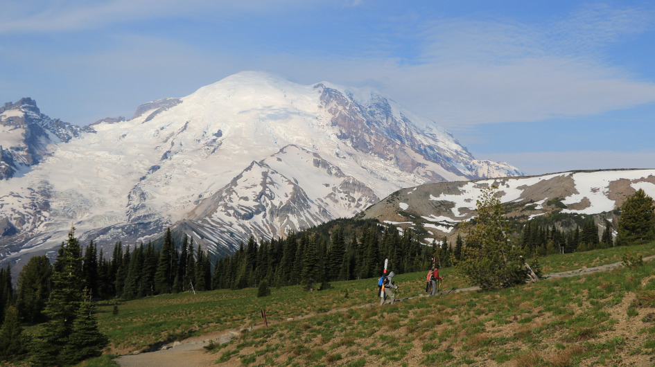 7월에도 스노보드를 메고 산을 오르는 산객이 있습니다. 야영장비가 없는 것을 보니 정상 도전팀은 아닌 것 같습니다.