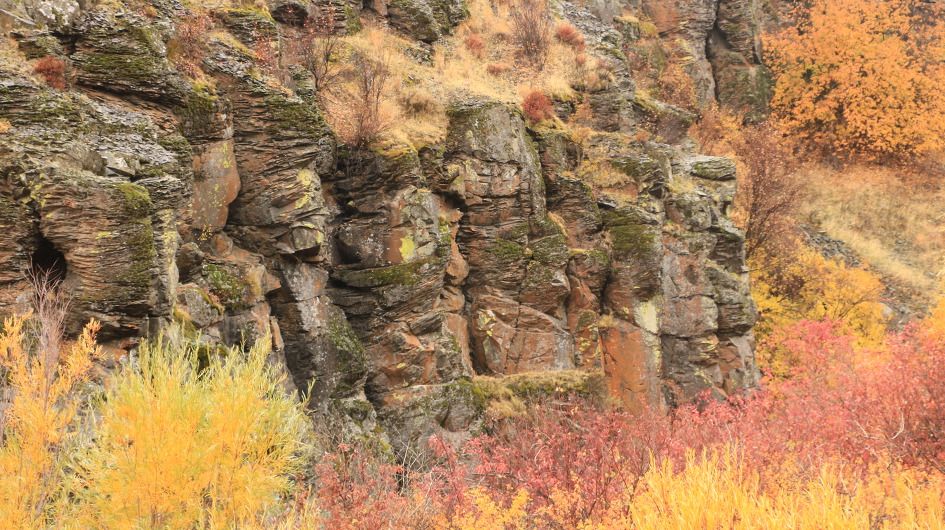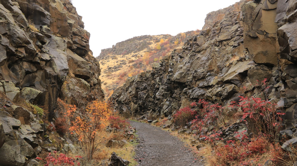 보기 드문 사막의 단풍이 계곡 양쪽의 암벽들과 어우러져 멋진 풍경을 만들었습니다. 신비한 빛의 단풍과 기묘하게 생긴 암벽들이 너무 인상 깊어 오래도록 여운이 남네요.