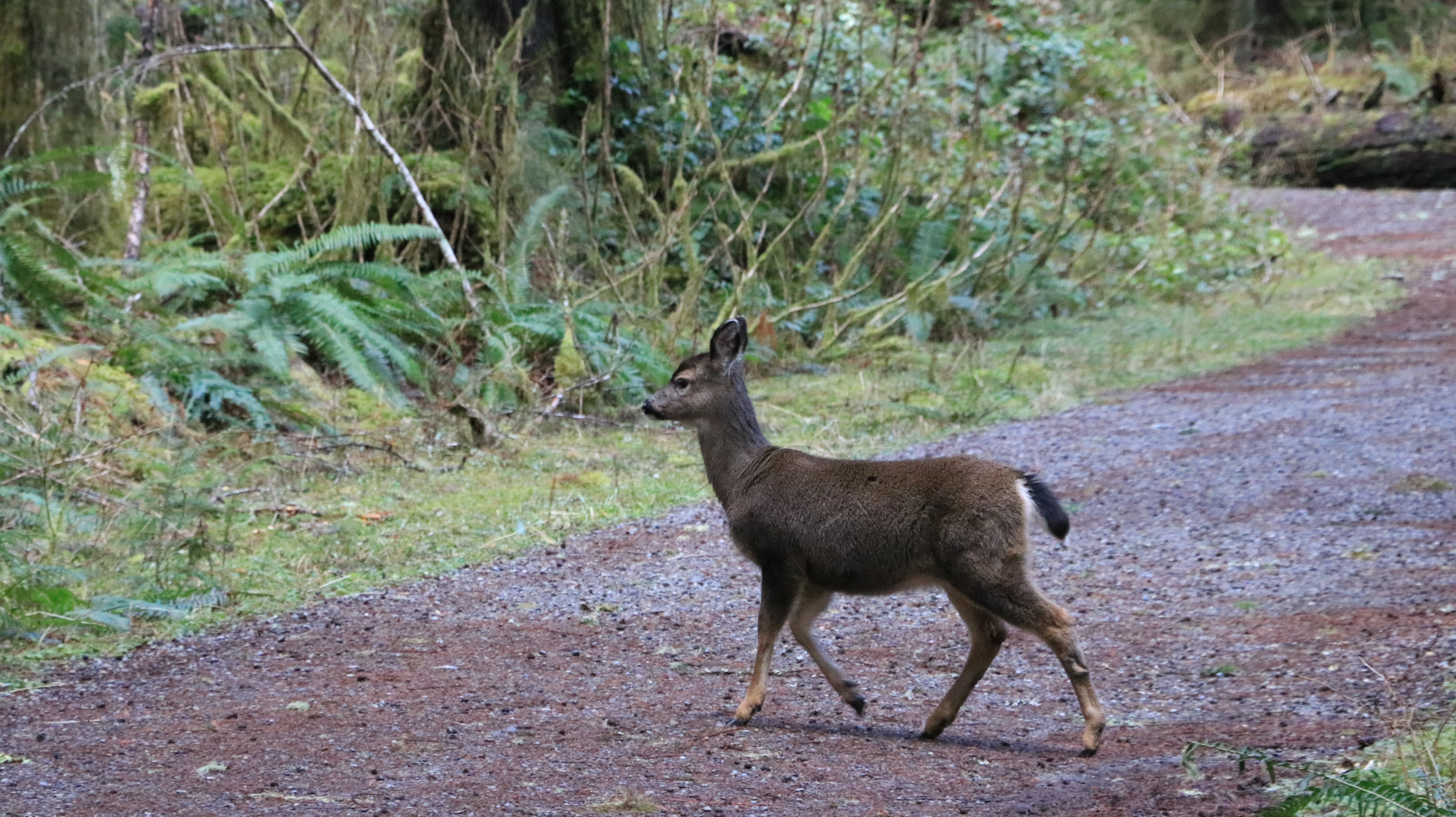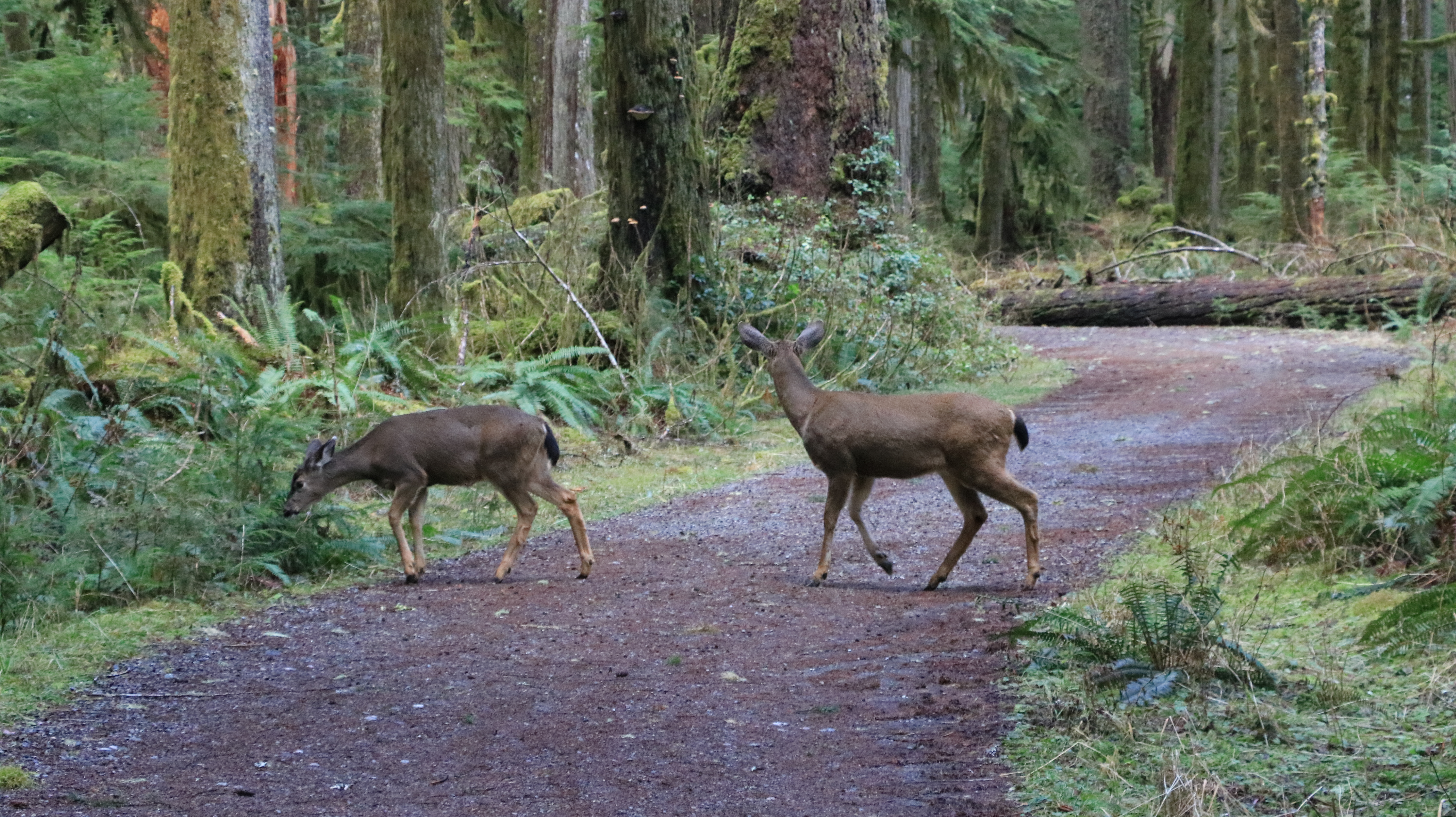 아침에 산을 오르면서 이 근처에서 엘크 한 마리를 만났는데 후다닥 도망을 가네요. 하산길에 다시 숲 속에 있는 엘크 5 마리를 보았습니다. 보통 동물들이 사람을 만나도 도망가지 않는데, 이 녀석은 새끼를 3 마리 데리고 있어 예민했나 봅니다. 제가 뒤로 몇 걸음 물러나 있으니 안전하다고 생각했는지 새끼들을 데리고 산악도로를 건넙니다. 그런데, 먼저 가던 새끼 엘크가 길 건너다 말고 배가 고픈가 딴전을 핍니다.