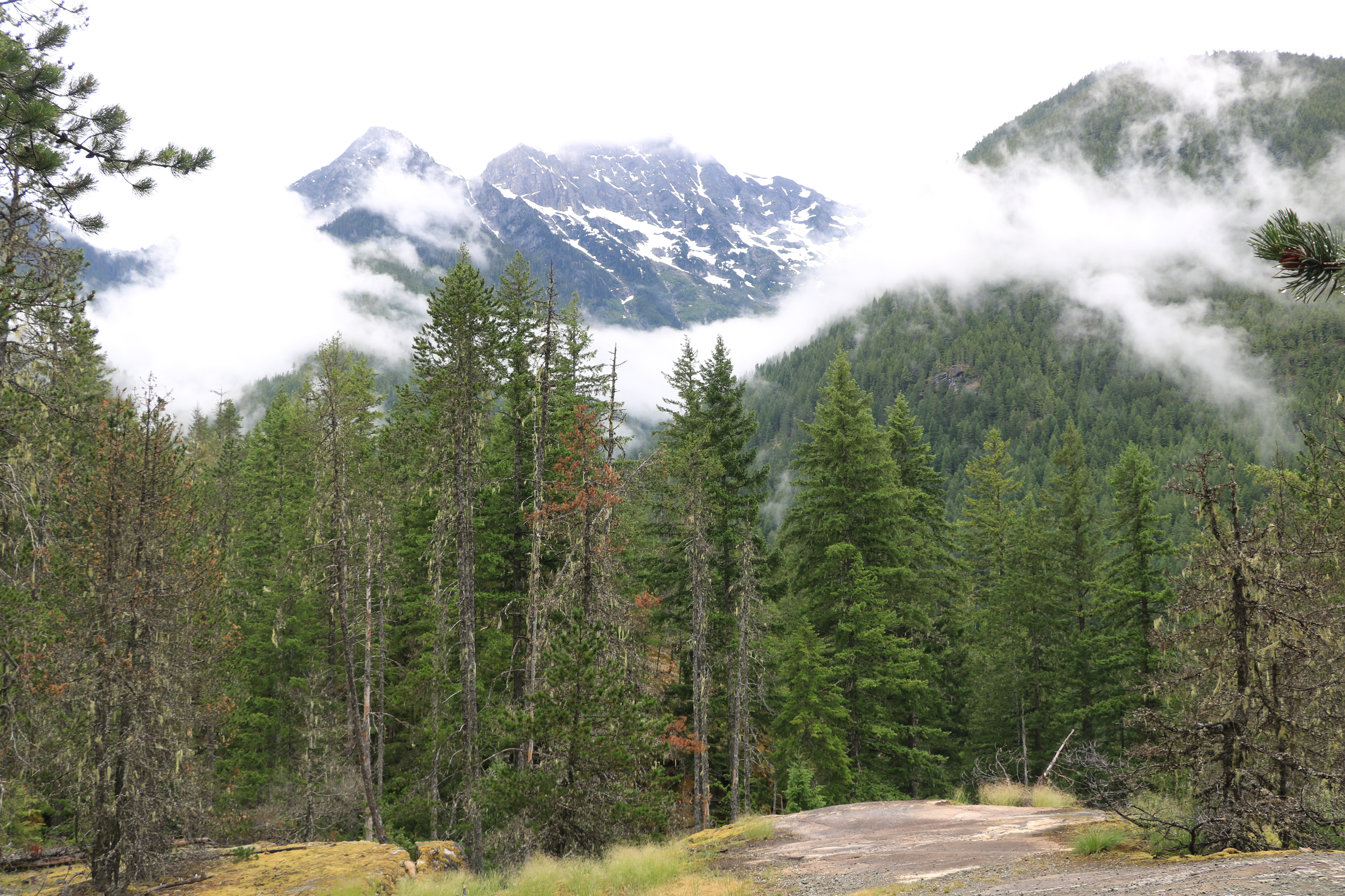 촉촉이 비에 젖은 황금빛 이끼 색이 무척 곱습니다. 오늘은 가랑비가 내려서 등산로에 사람들이 별로 없었습니다. Thunder Creek까지 가려고 계획하였는데 비가 계속 오네요.