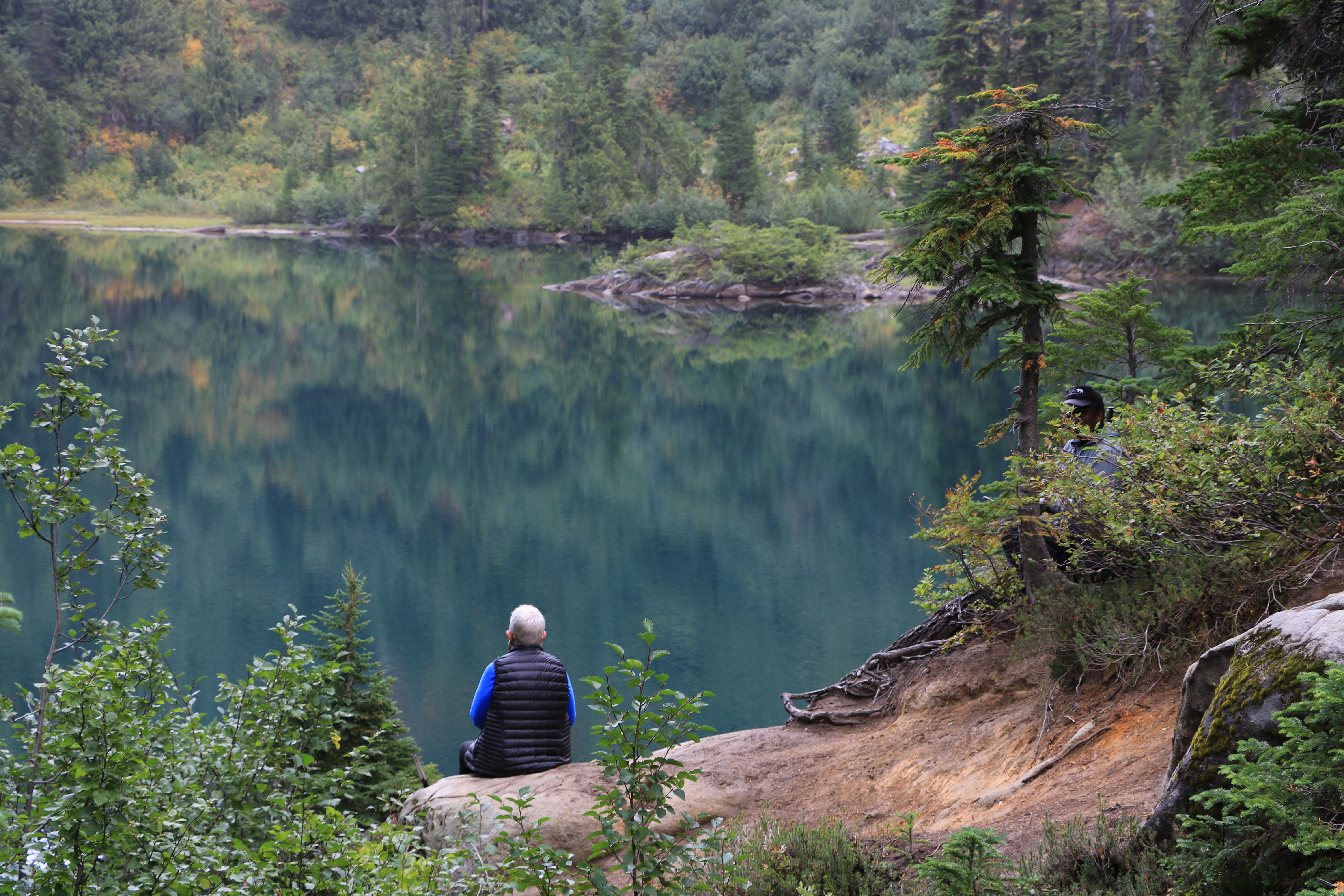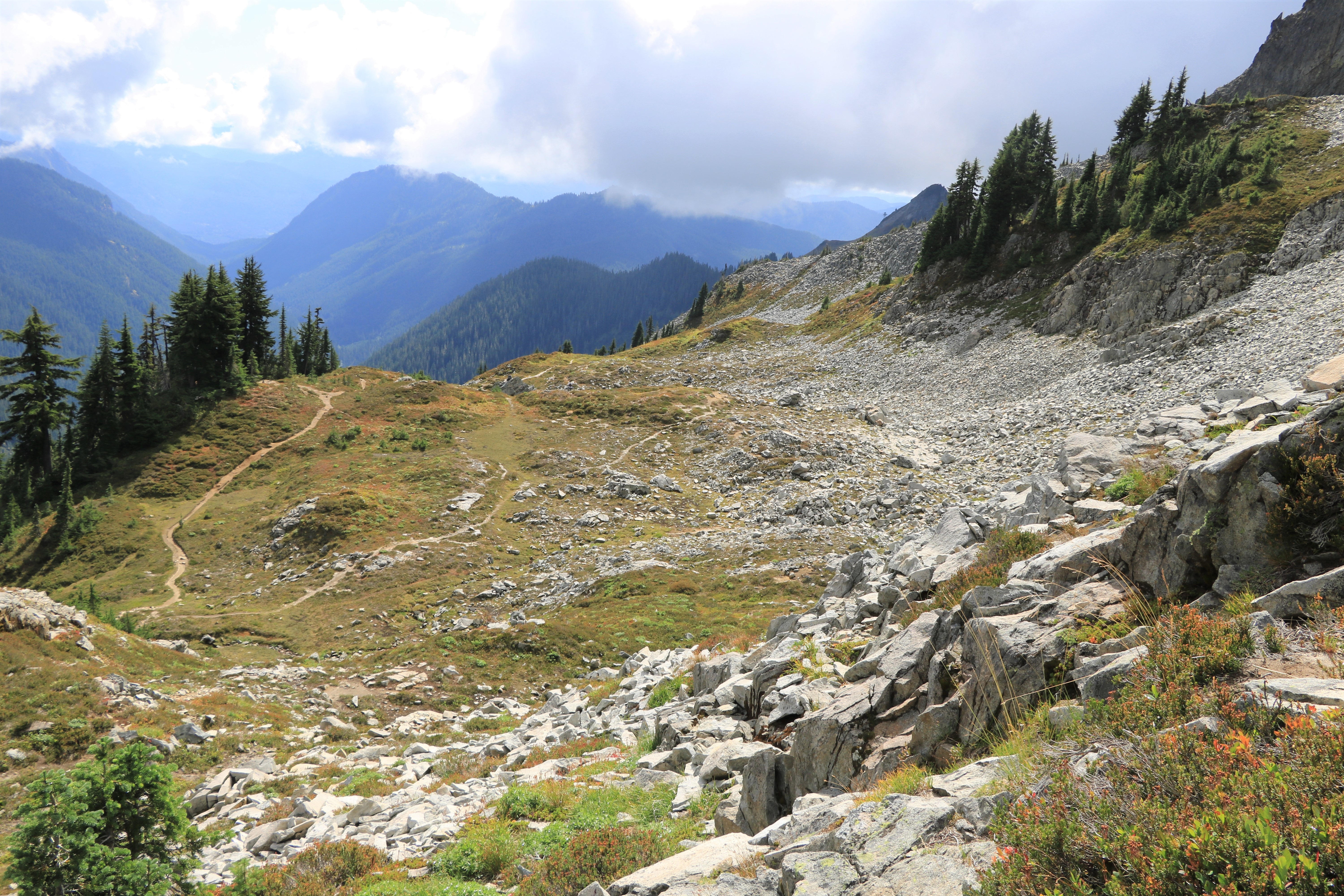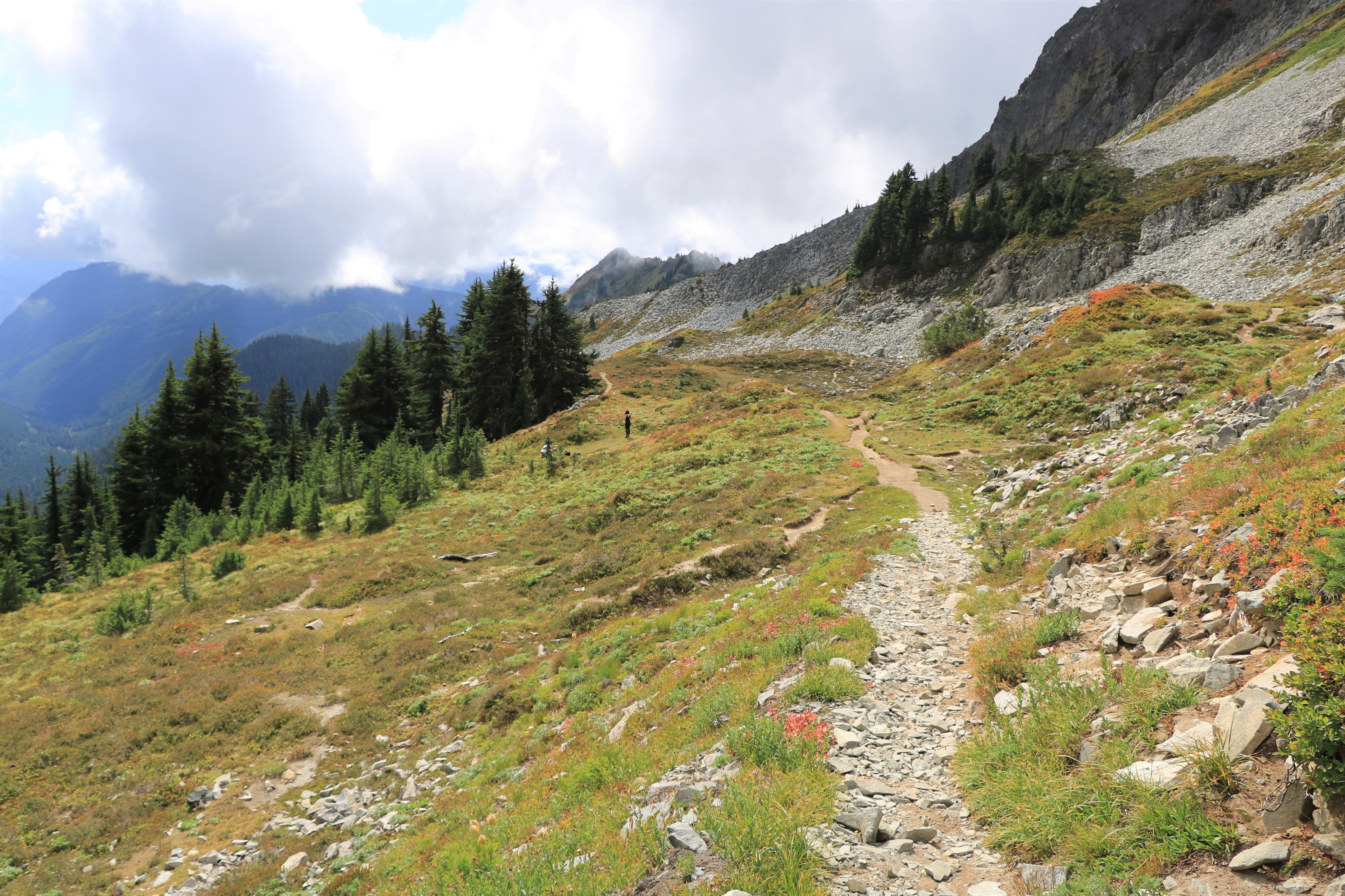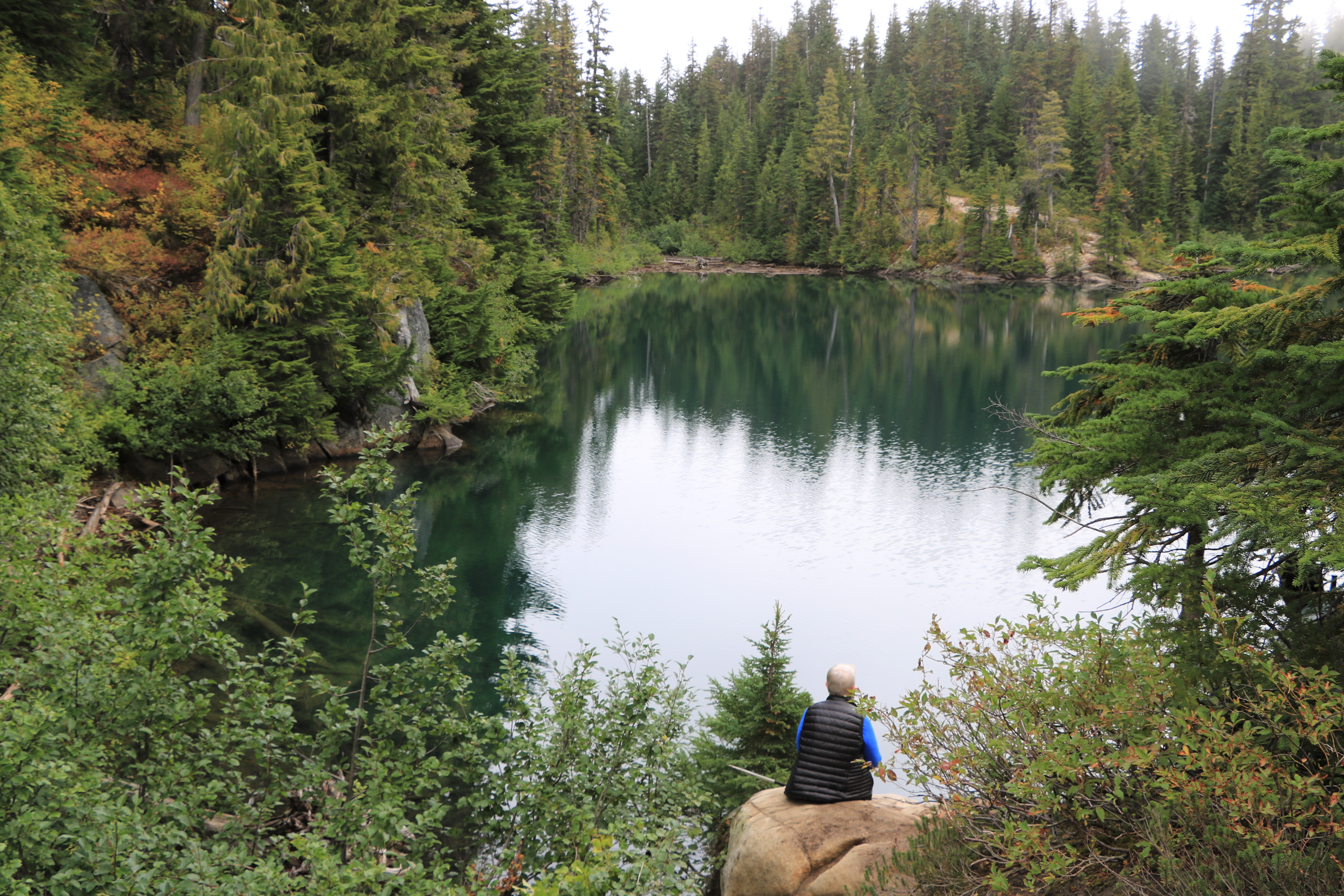 계획을 급히 바꿔 산 반대편에 도착했지만 구름이 짙어 시야가 없네요. 일기예보에 오후에는 맑아져서 오전에 Snow & Bench Lake를 먼저 올랐습니다.