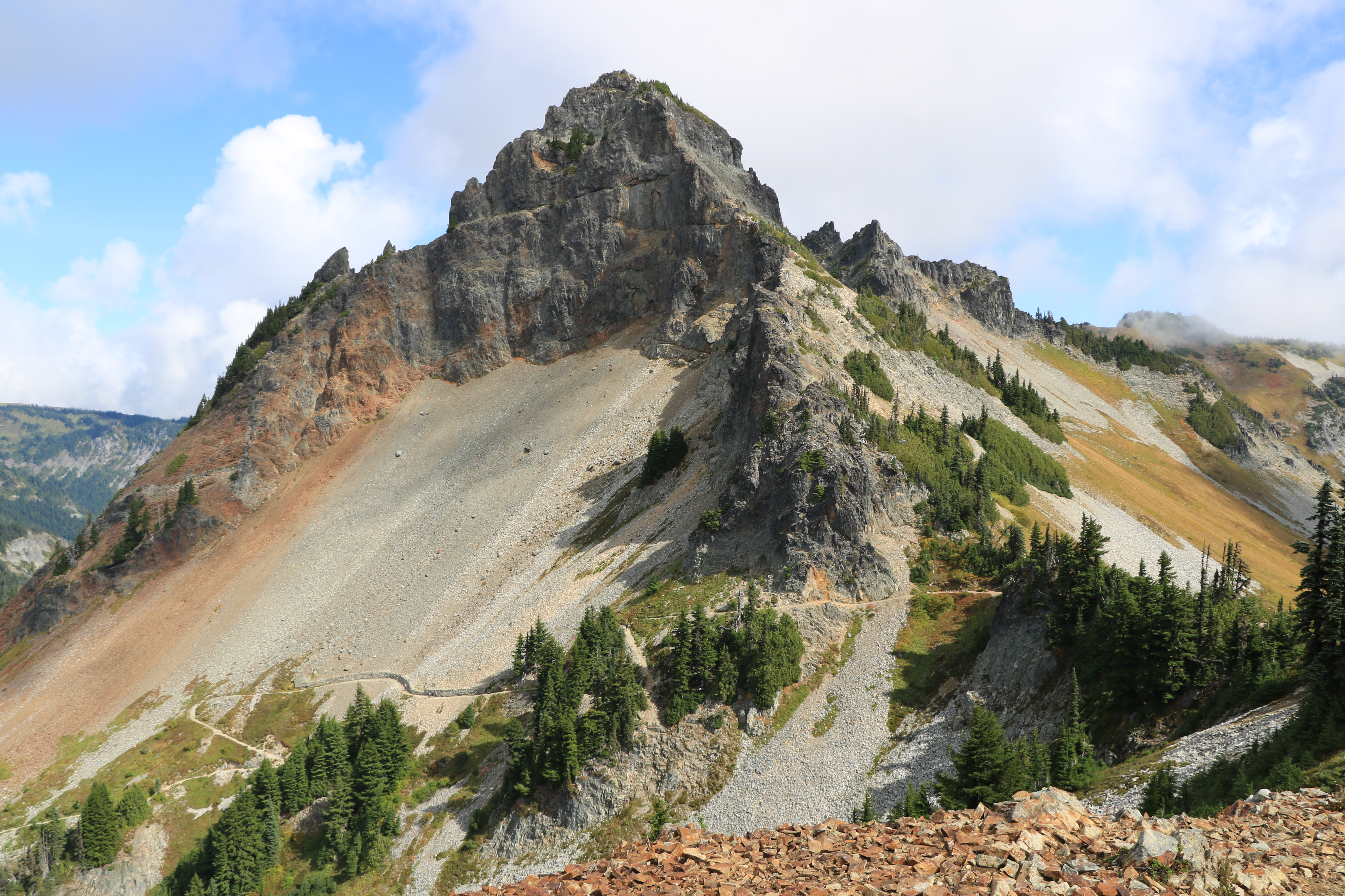 Pinnacle Saddle 까지만 관리되는 등산로입니다. Pinnacle Saddle에서 Plummer Peak 오르는 길은 관리되지 않는 등산로이며 일부 구간이 위험합니다.