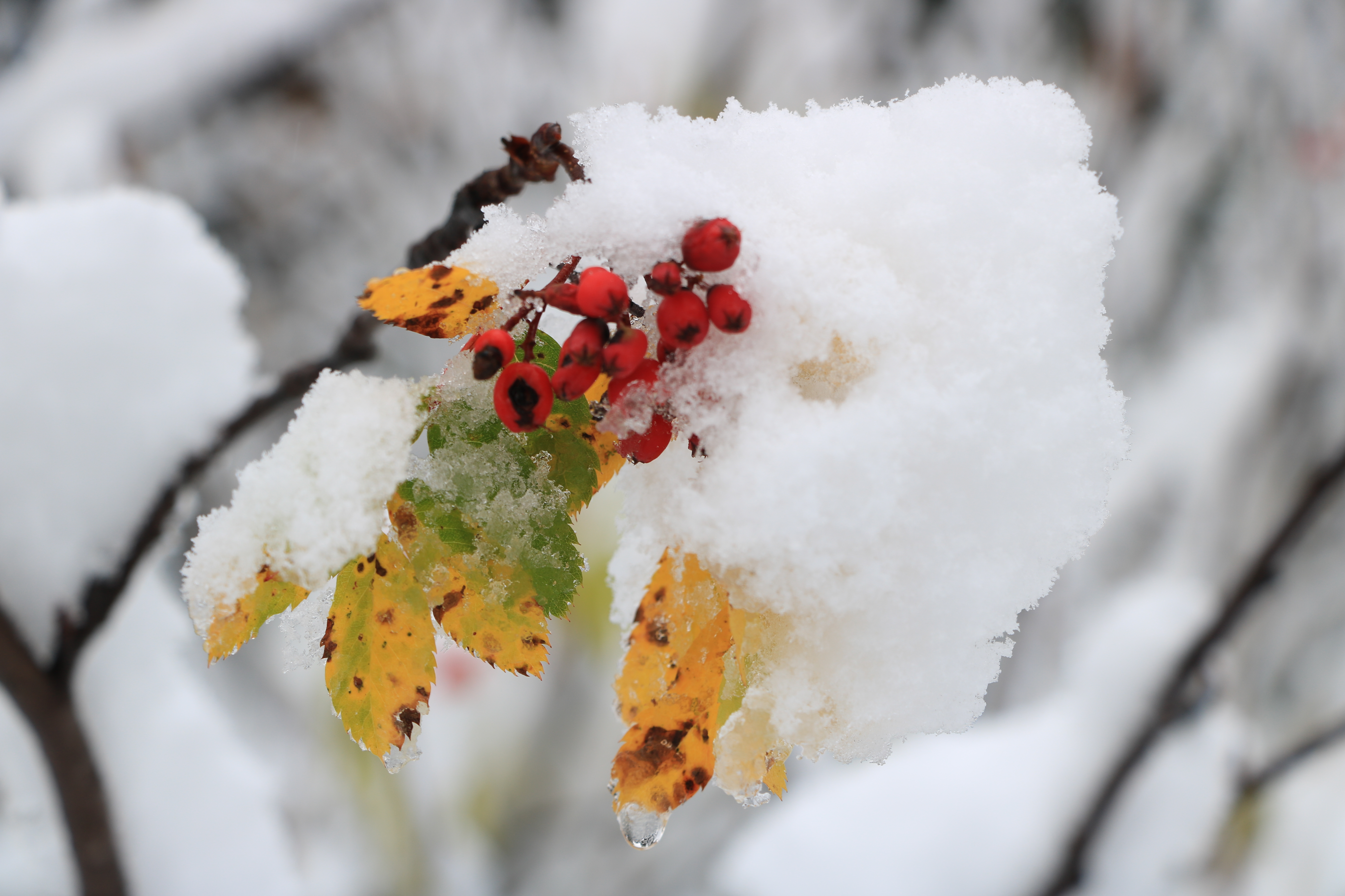 단풍철이 시작되었나 싶었는데 높은 산에는 벌써(10월 11일) 폭설이 단풍을 따라잡았습니다.