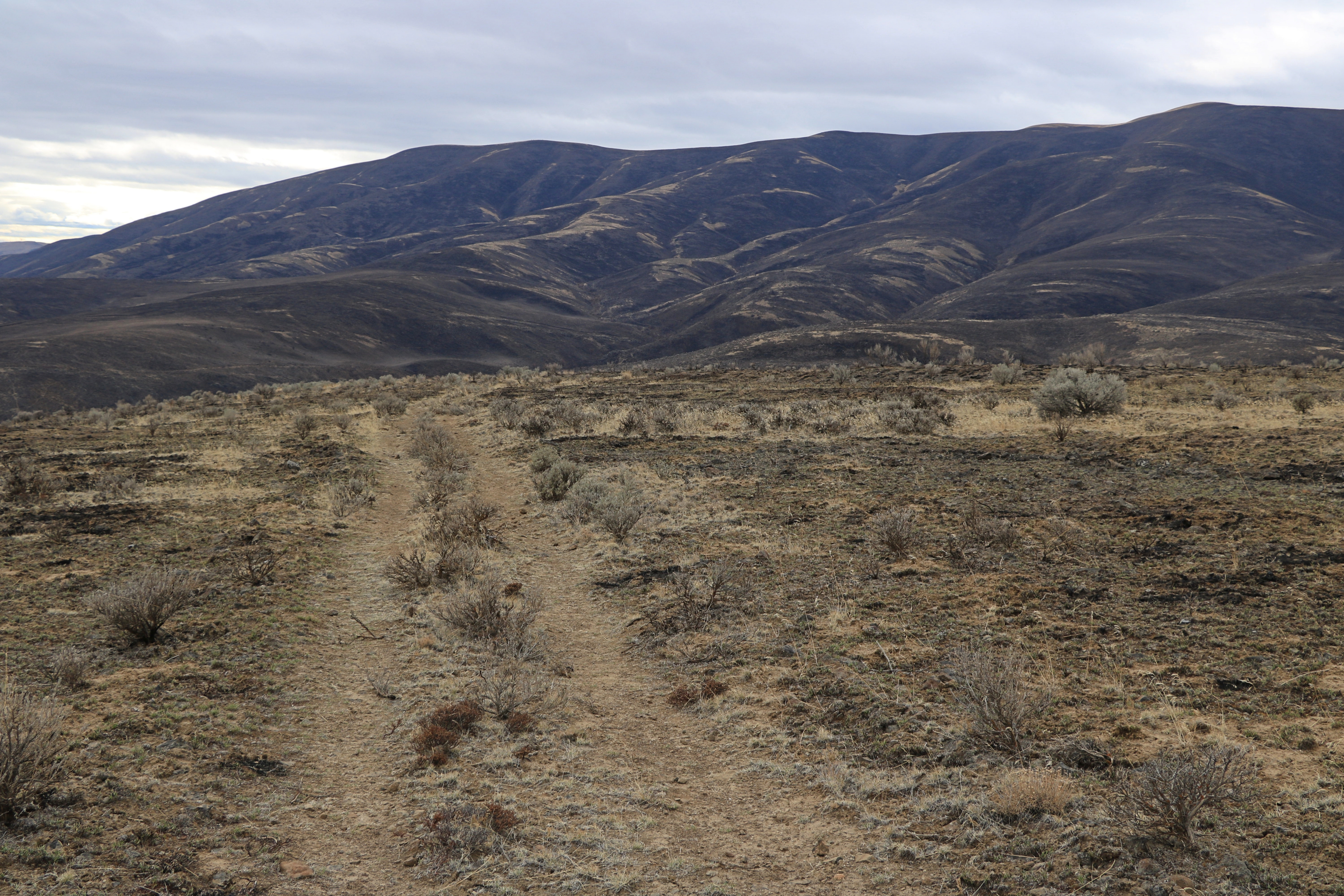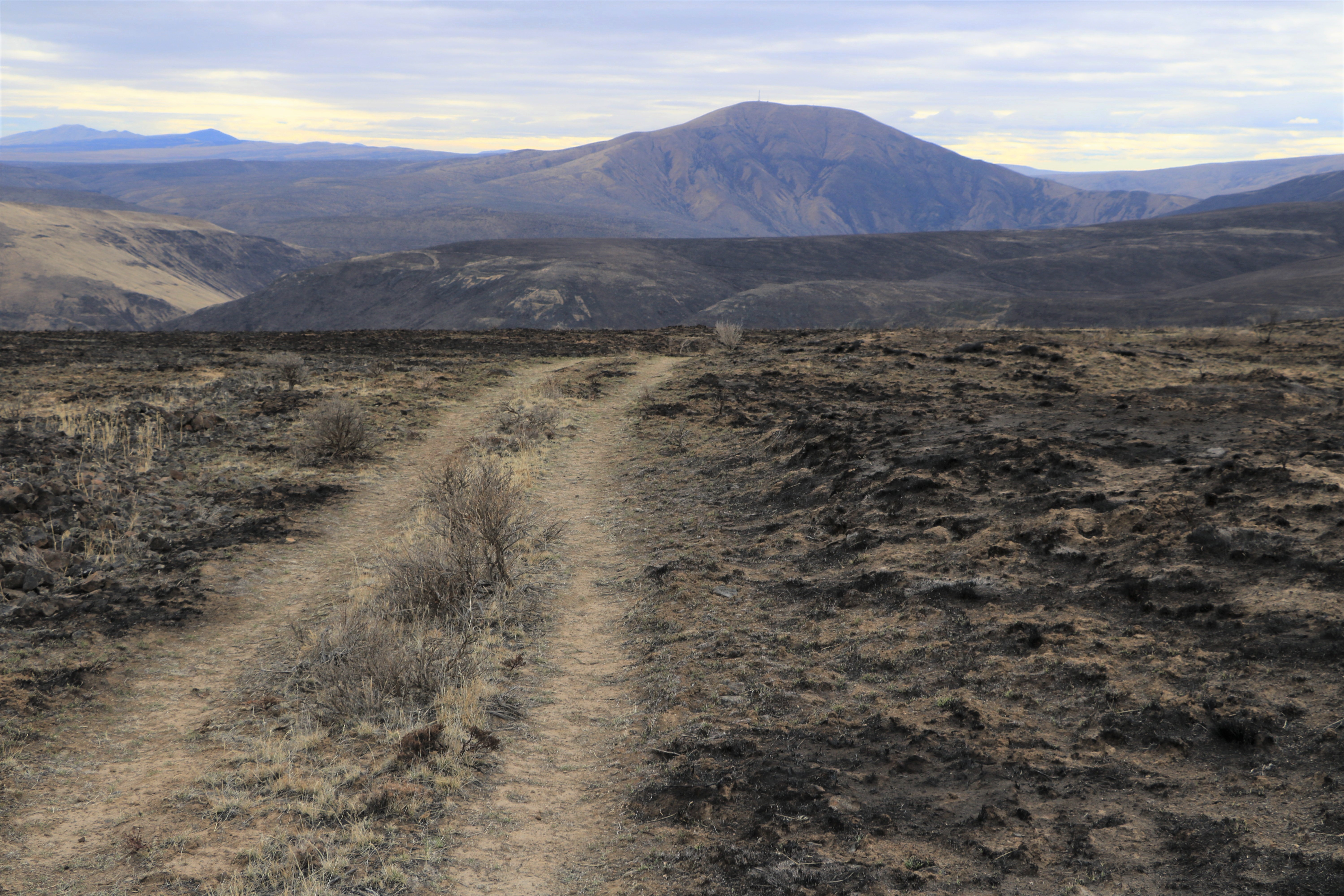 산 봉우리를 오르는 길은 산불에 전부 타서 사진에는 평지 같아 보이지만 실제로는 급경사입니다.