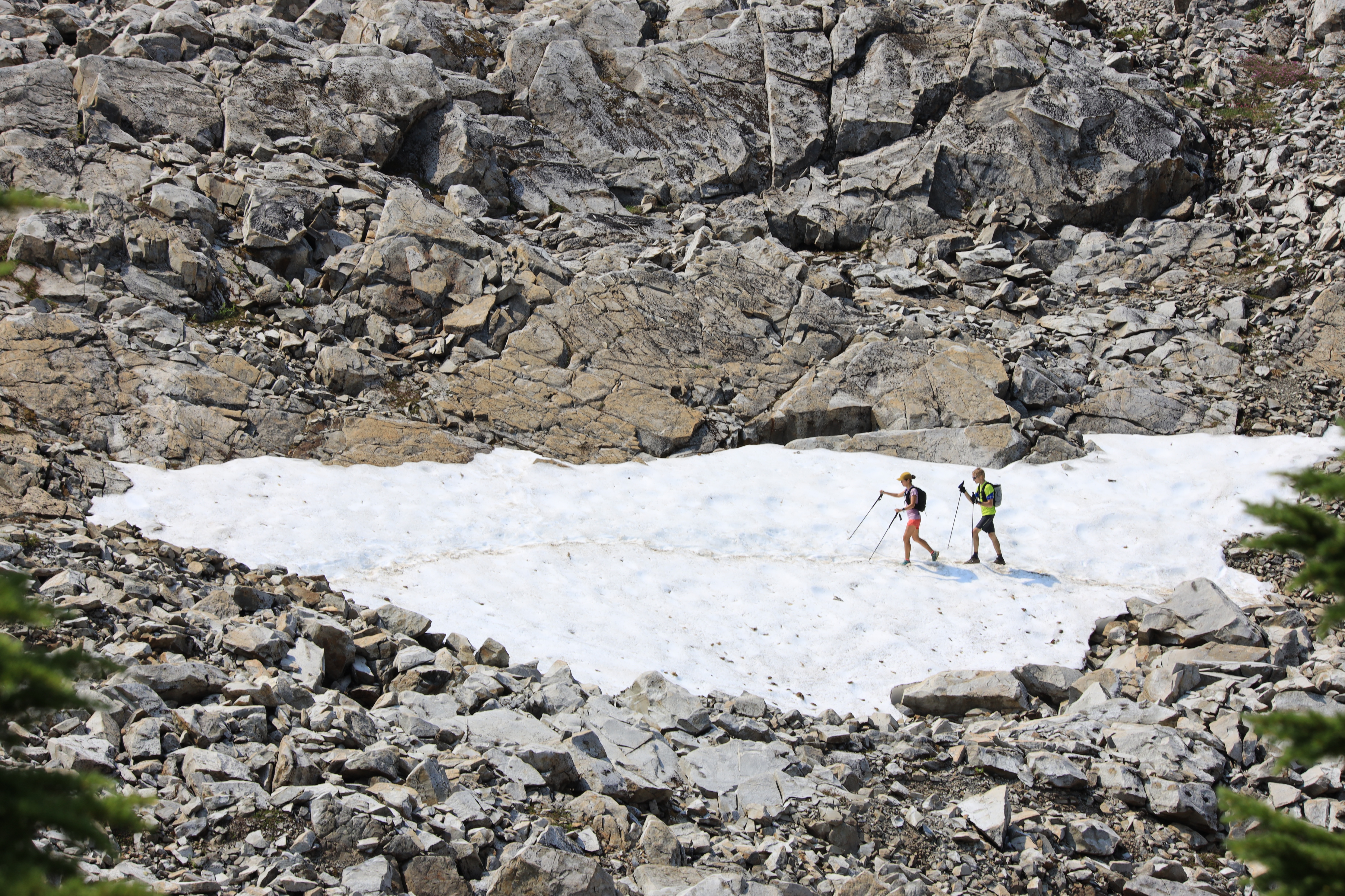 여기는 서북미 트레일 (PNT, Pacific Northwest Trail) Section 9번 구간 일부입니다. High Divide - Seven Lakes Basin Loop는 19 마일 (30.6 Km)인데 차량 이동에 왕복 8시간 걸려서 당일 산행은 무리이고 보통 야영을 합니다. (야영을 하면 음식물과 쓰레기는 Bear Canisters (곰통)에 넣어야 하고 곰통은 레인저 스테이션에서 빌려 줍니다.)