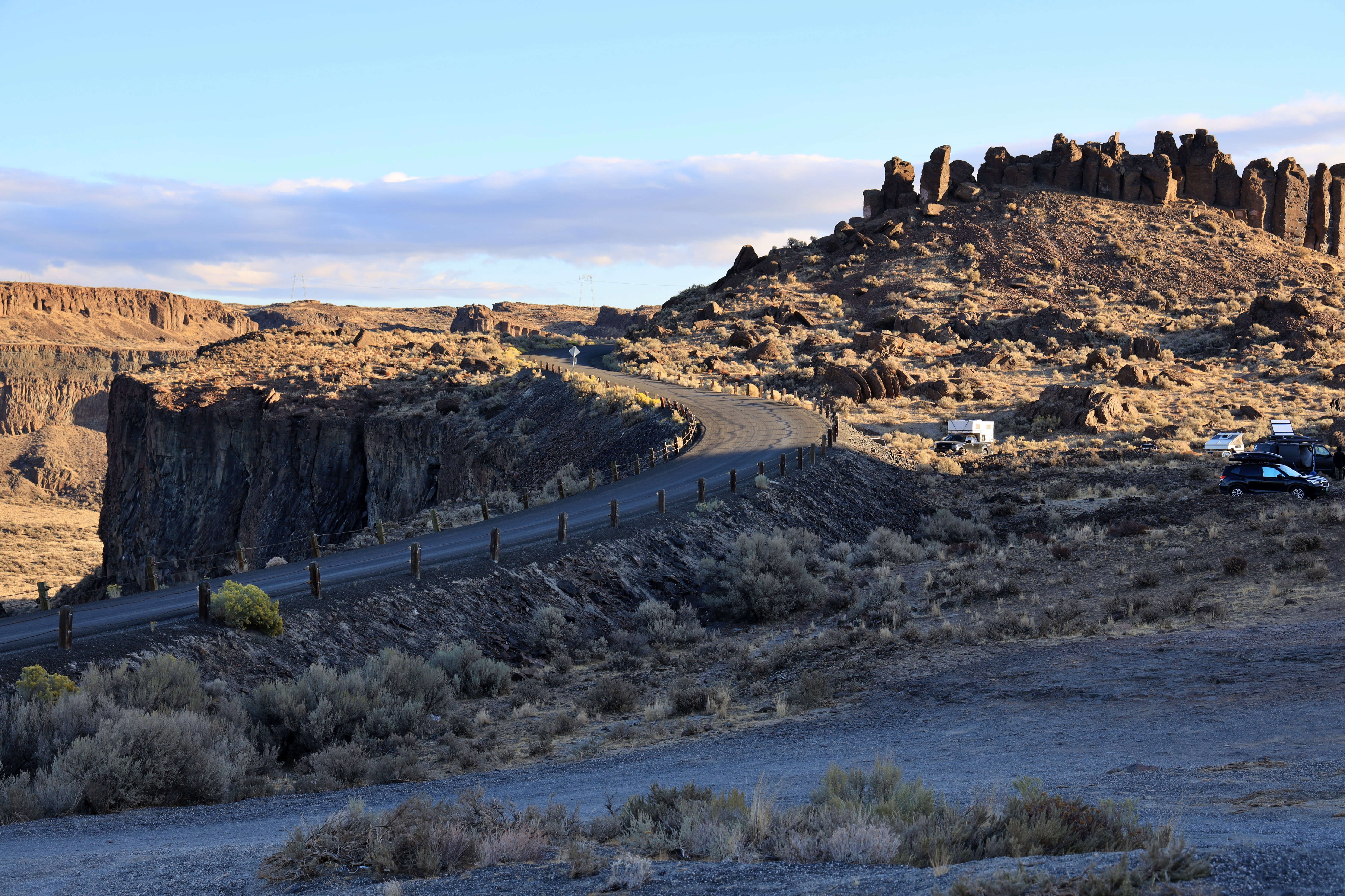프랑스인 협곡에 암벽등반 선수 백여 명이 출동하였습니다. 연습바위부터 어려워 보이는 곳까지 다양한 암벽이 있고, 몇 사람은 출발에 앞서 암벽등반 책을 보고 있습니다. 비를 피해 캐스케이드 산맥을 넘어 사막으로 갔는데 여기는 완전 암벽 놀이터네요.