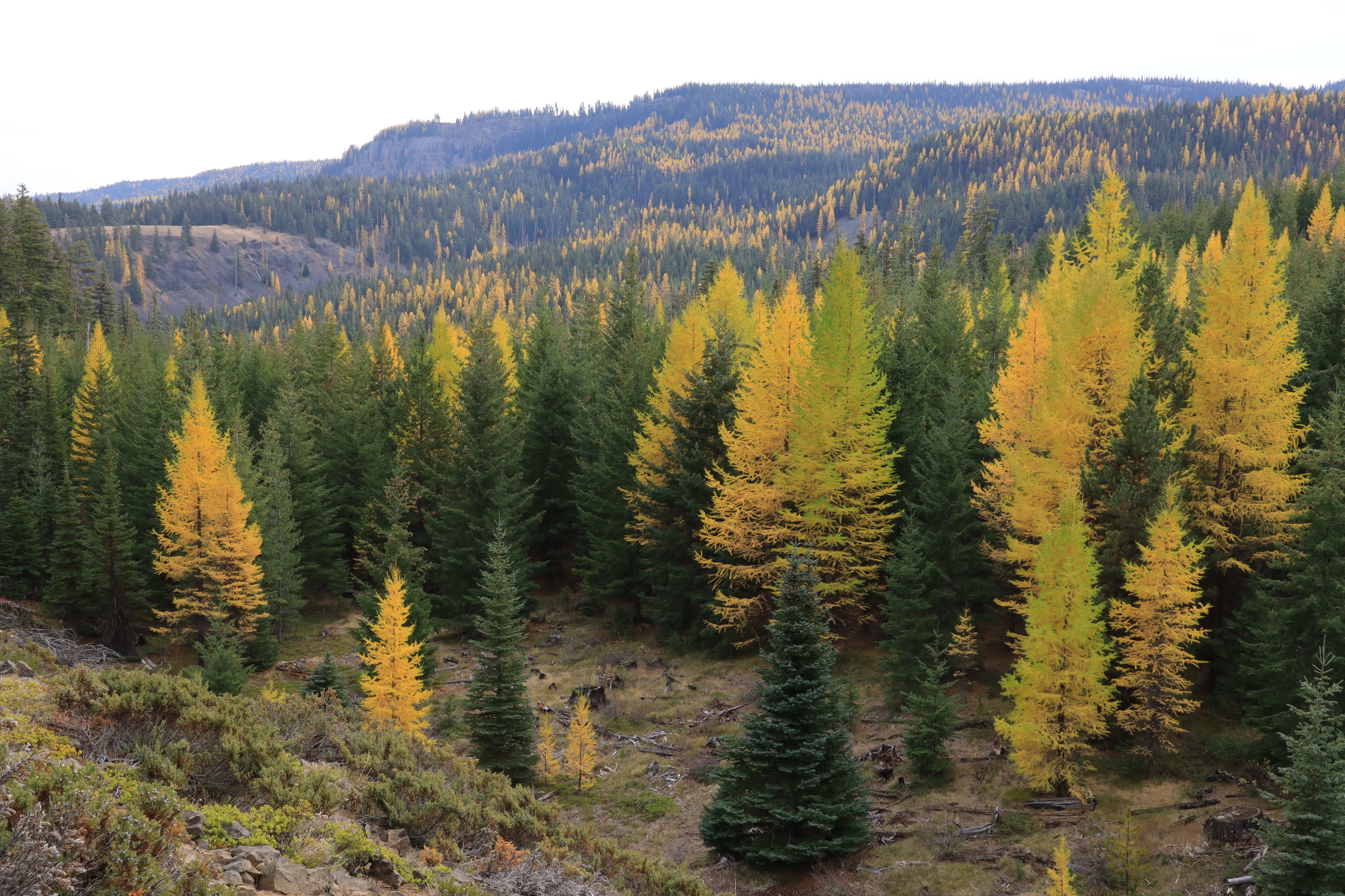 사막 지역의 고속도로 출구 (Thorp, I-90 Exit 101)에서 숲 지역의 등산로 입구까지 23 마일 (37 Km)을 운전하는 것만으로도 가을빛에 흠뻑 빠지게 됩니다.