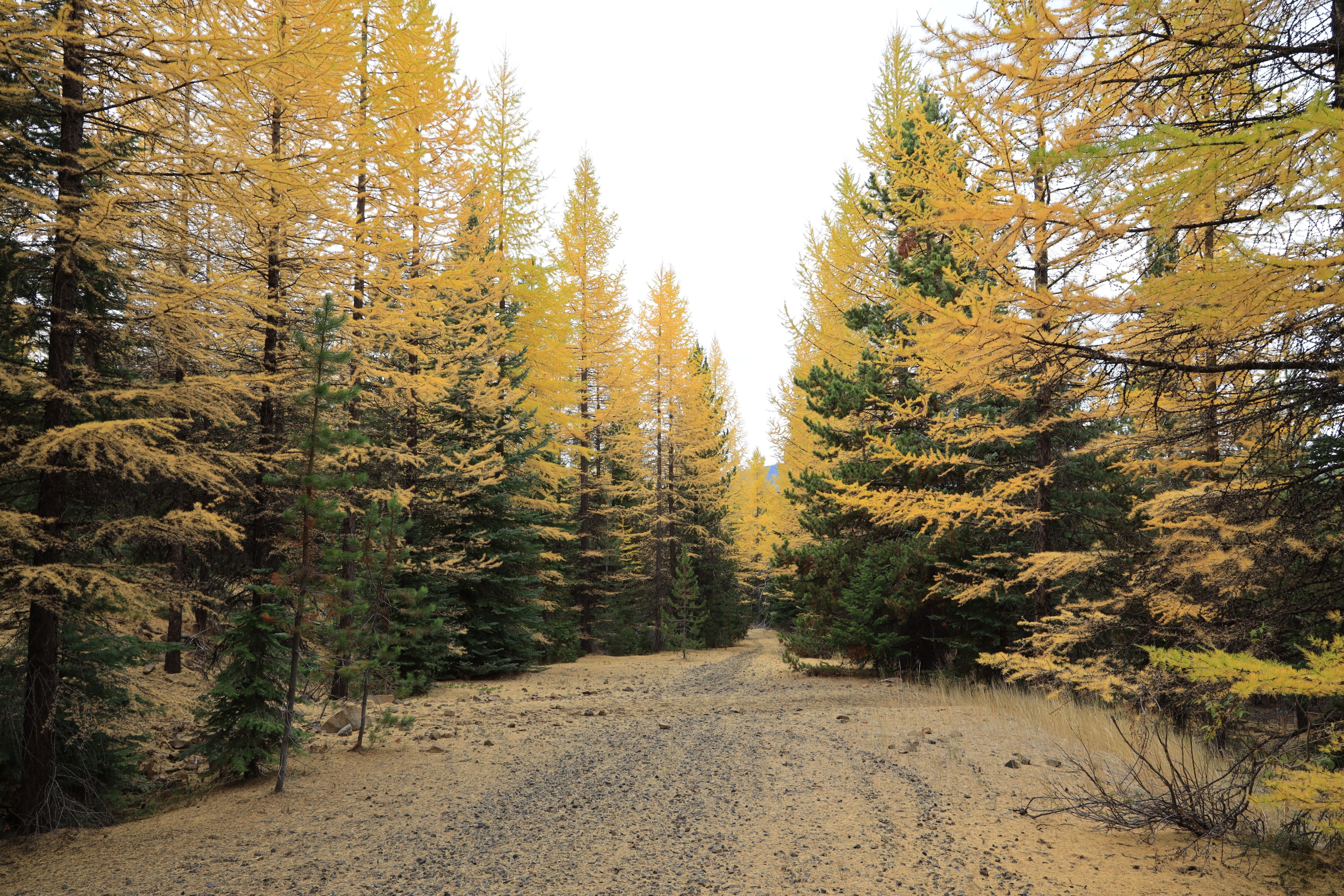 사막을 지나 소나무 단풍 숲으로 가는 길은 사막의 색다른 풍경과 사막에서 숲으로 풍경이 점점 변해가는 모습을 볼 수 있어 흥미롭습니다. 그리고, 특이하게 소나무 단풍 (Yellow Larches)이 숲을 이루고 있습니다. 사막의 단풍은 환경이 혹독해서 그런가 색이 곱네요. 단풍 색이 너무 이뻐서 중간에 몇 번 차를 멈추고 풍경을 감상하였습니다.