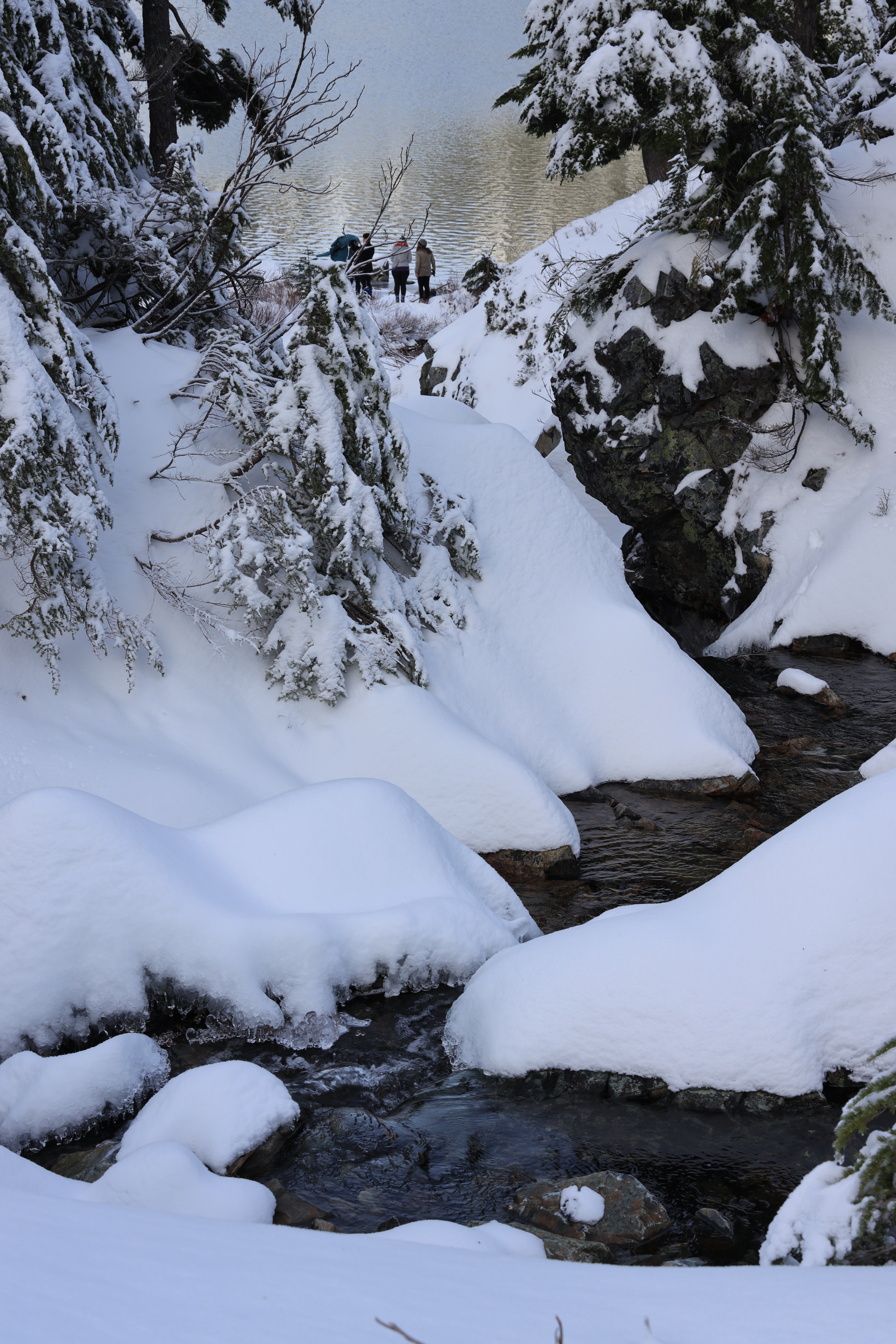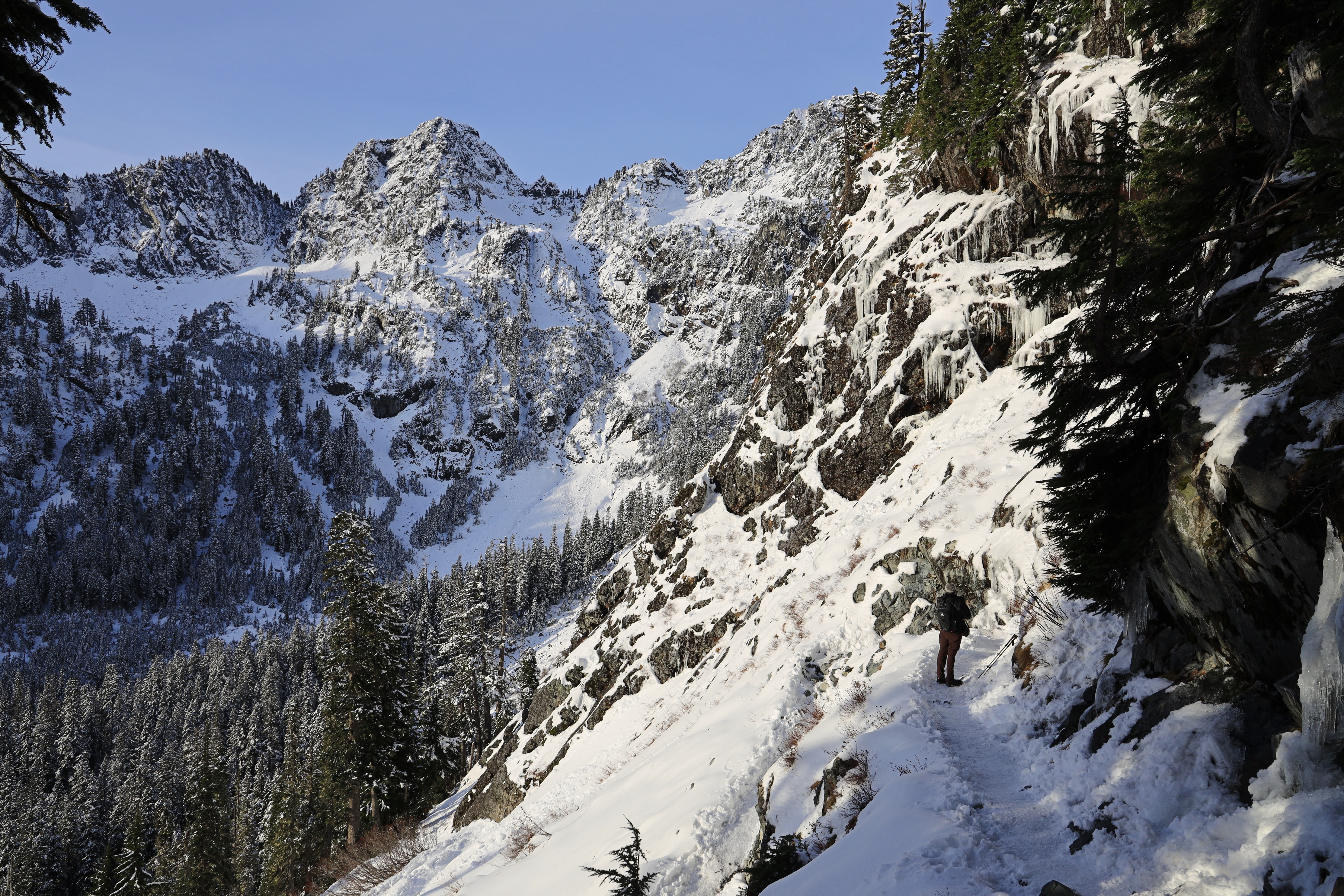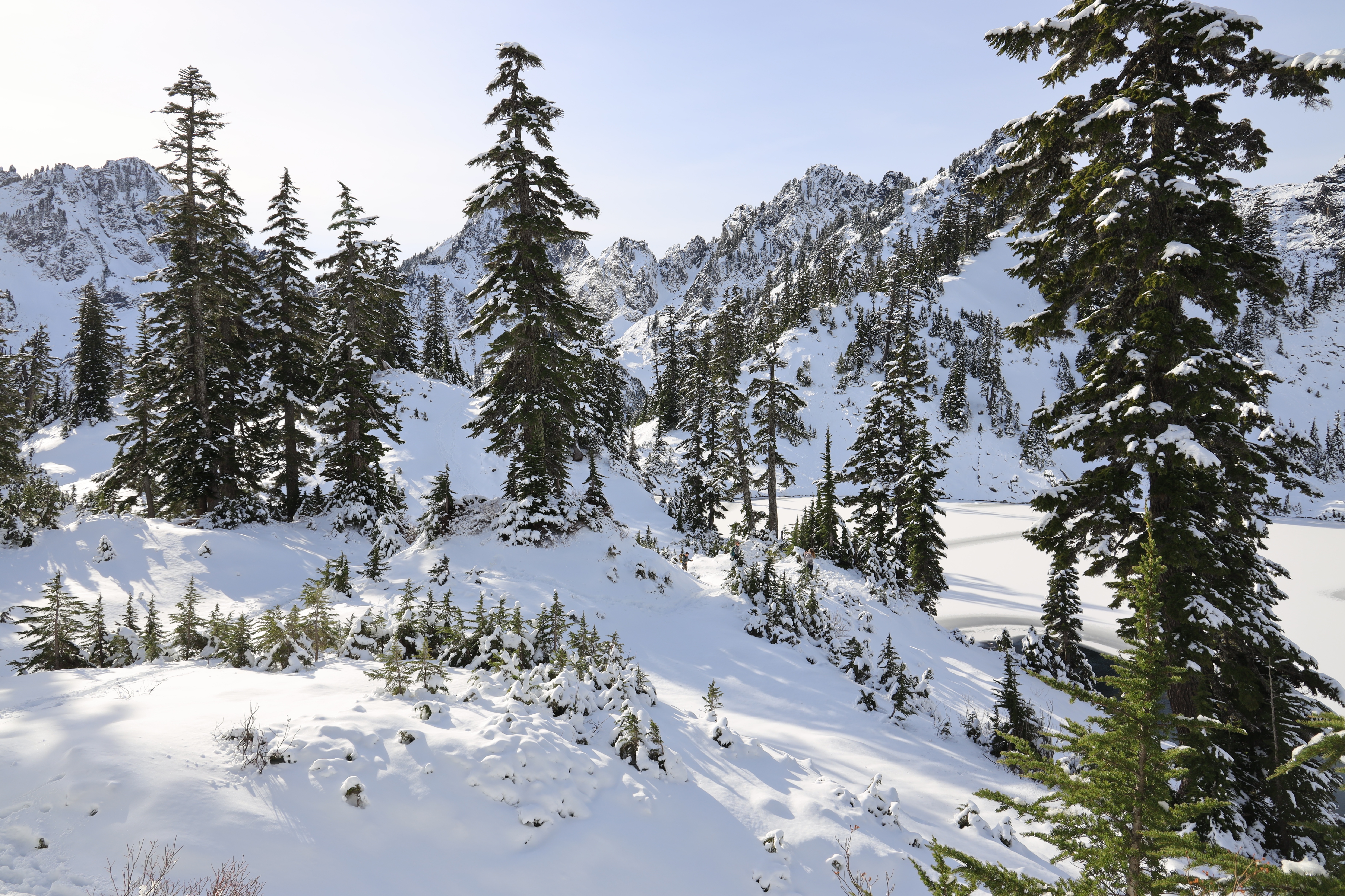 Snow Lake 중간지점 전망 포인트에서 Gem Lake 가는 길입니다. 산비탈 경사가 심해 눈이 많이 쌓이면 건너기 위험하겠네요.