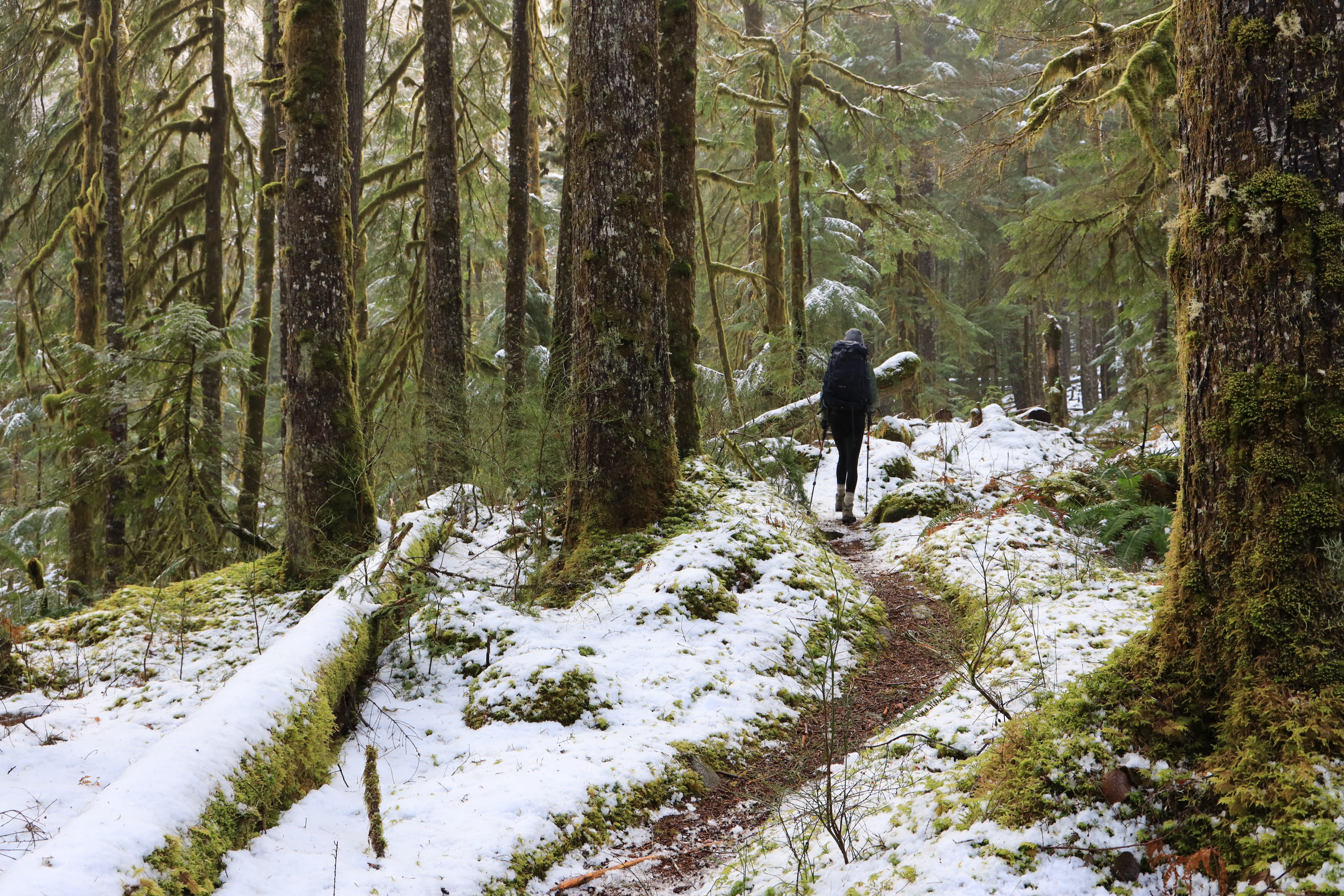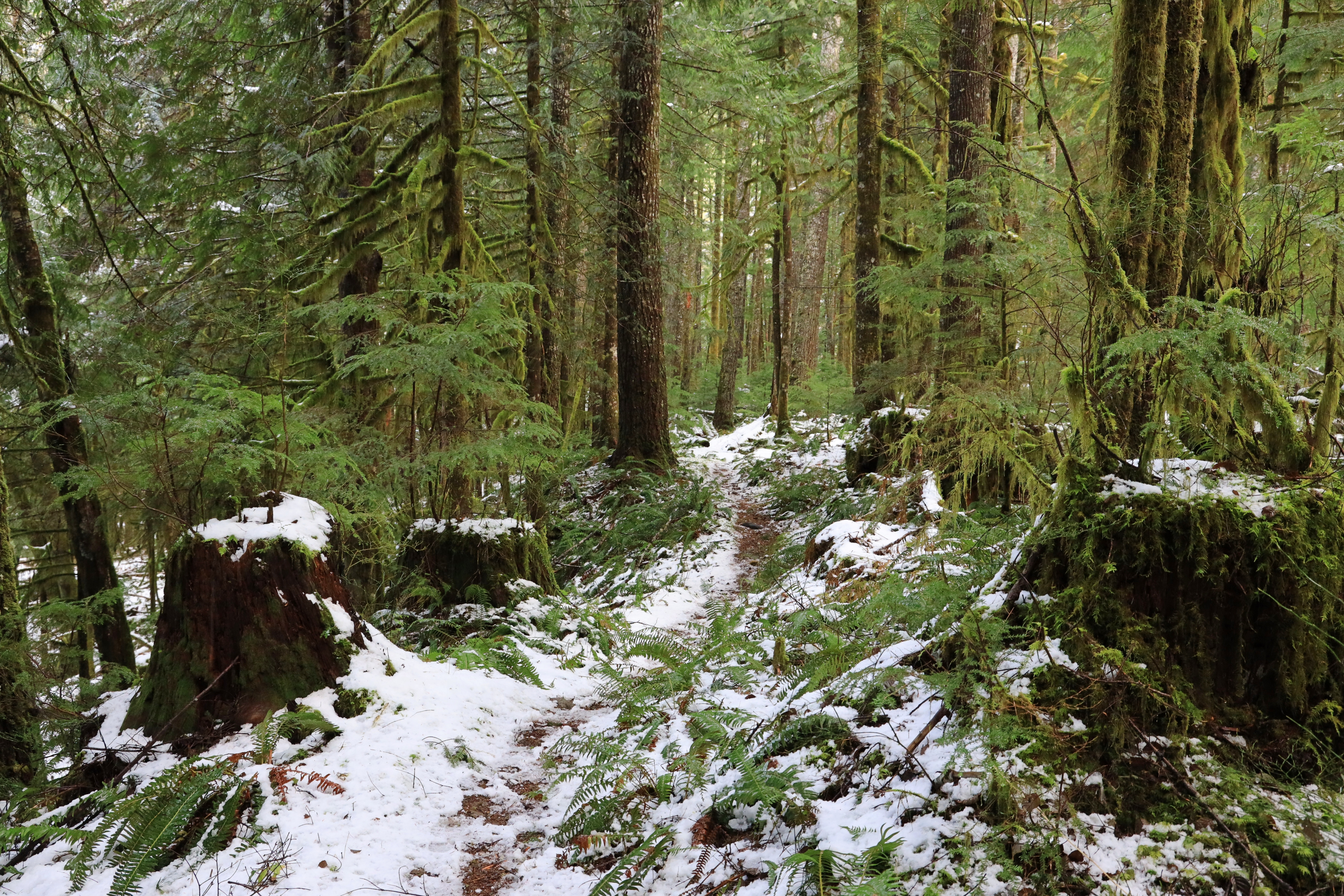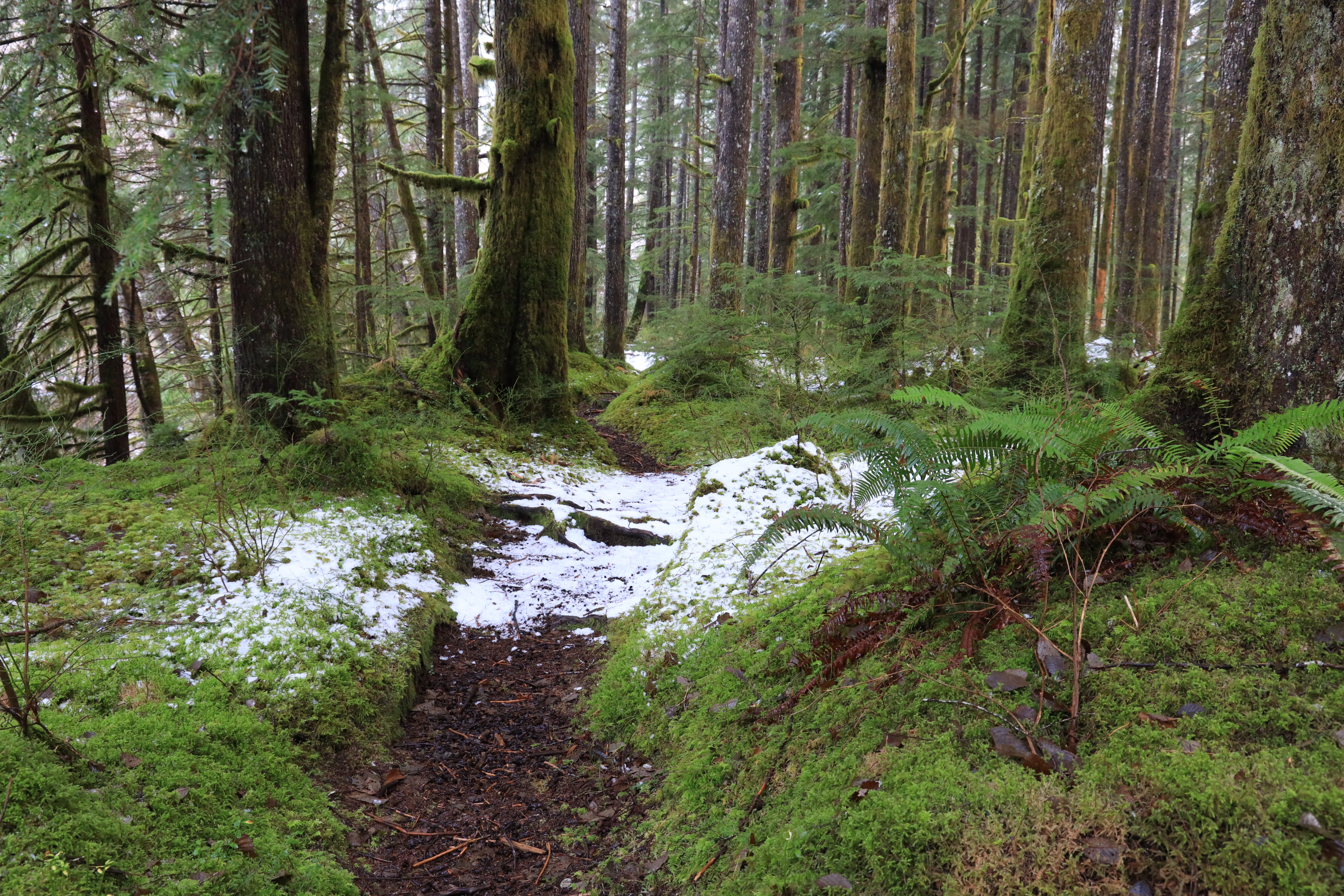 이끼 숲이 계속되는데 신선한 느낌이 좋았고 숲의 향기가 진하게 느껴졌습니다. 눈이 조금 쌓여 있었지만 (산 위쪽 10 - 20 cm) 산행에 불편한 정도는 아녔습니다.