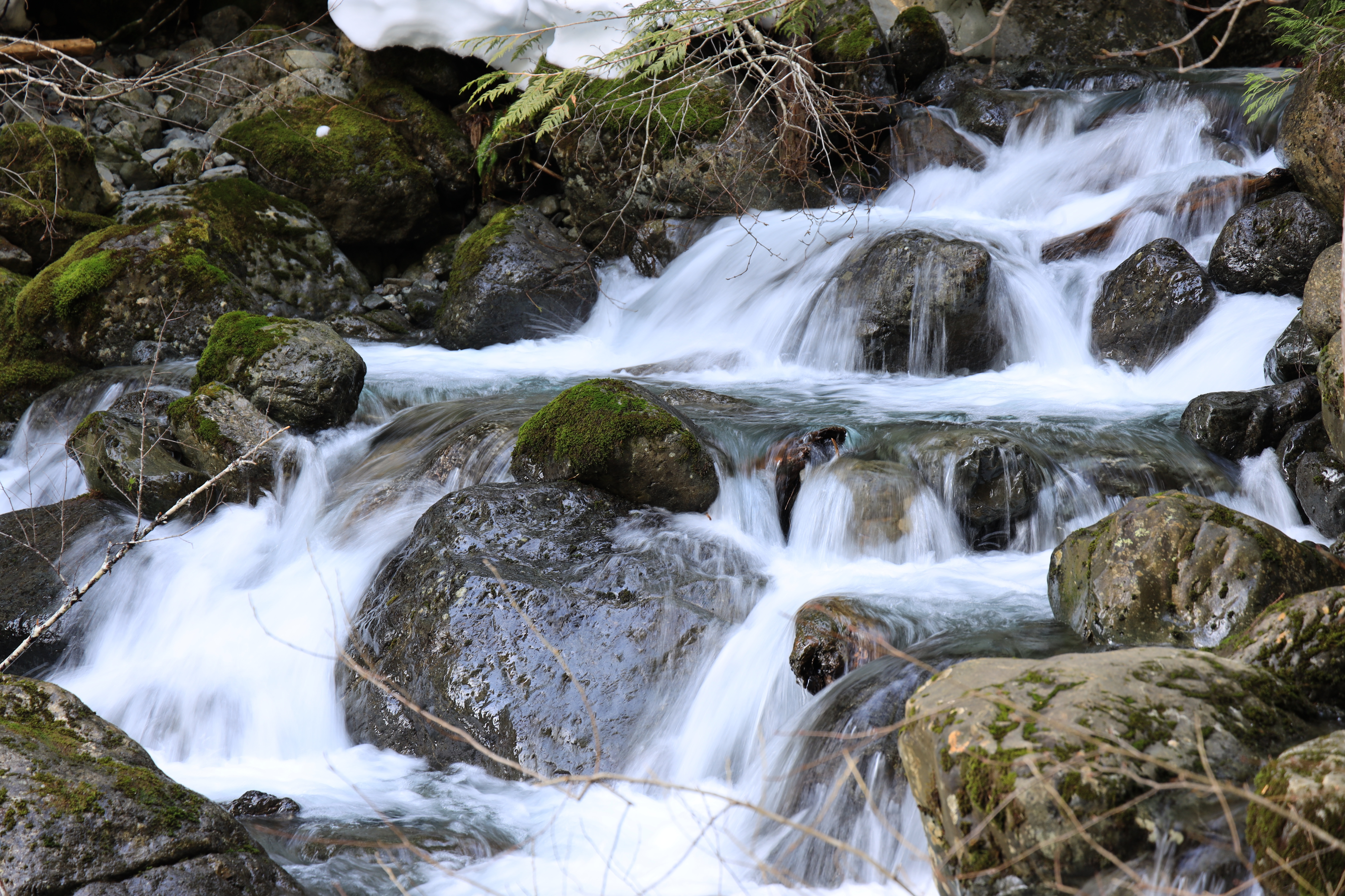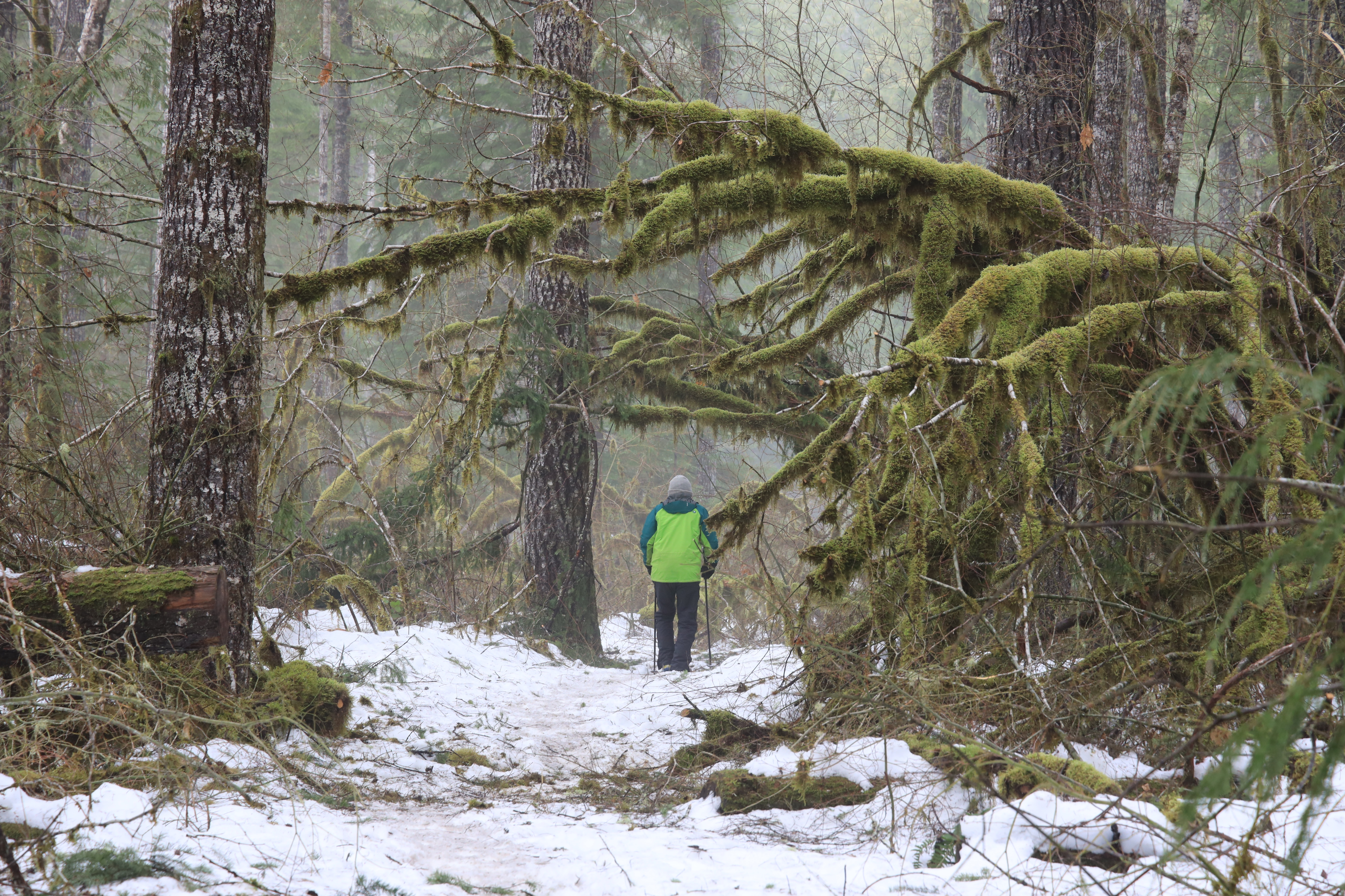 한 번은 나무 위로 넘다가 나뭇가지에 걸려 넘어져 짧은 다리의 아쉬움도 맛보았습니다. 쓰러진 나무 아래로, 위로, 틈 사이로, 그리고 재주껏 통과해야 되는 곳도 있고 뿌리째 뽑혀 길을 막고 있는 것을 우회하여 급경사를 조심스럽게 내려갑니다. 계곡 다리 위에도 눈이 쌓여 살금살금 건너고 눈이 다져지지 않은 곳을 밟으면 무릎까지 푹 빠집니다.