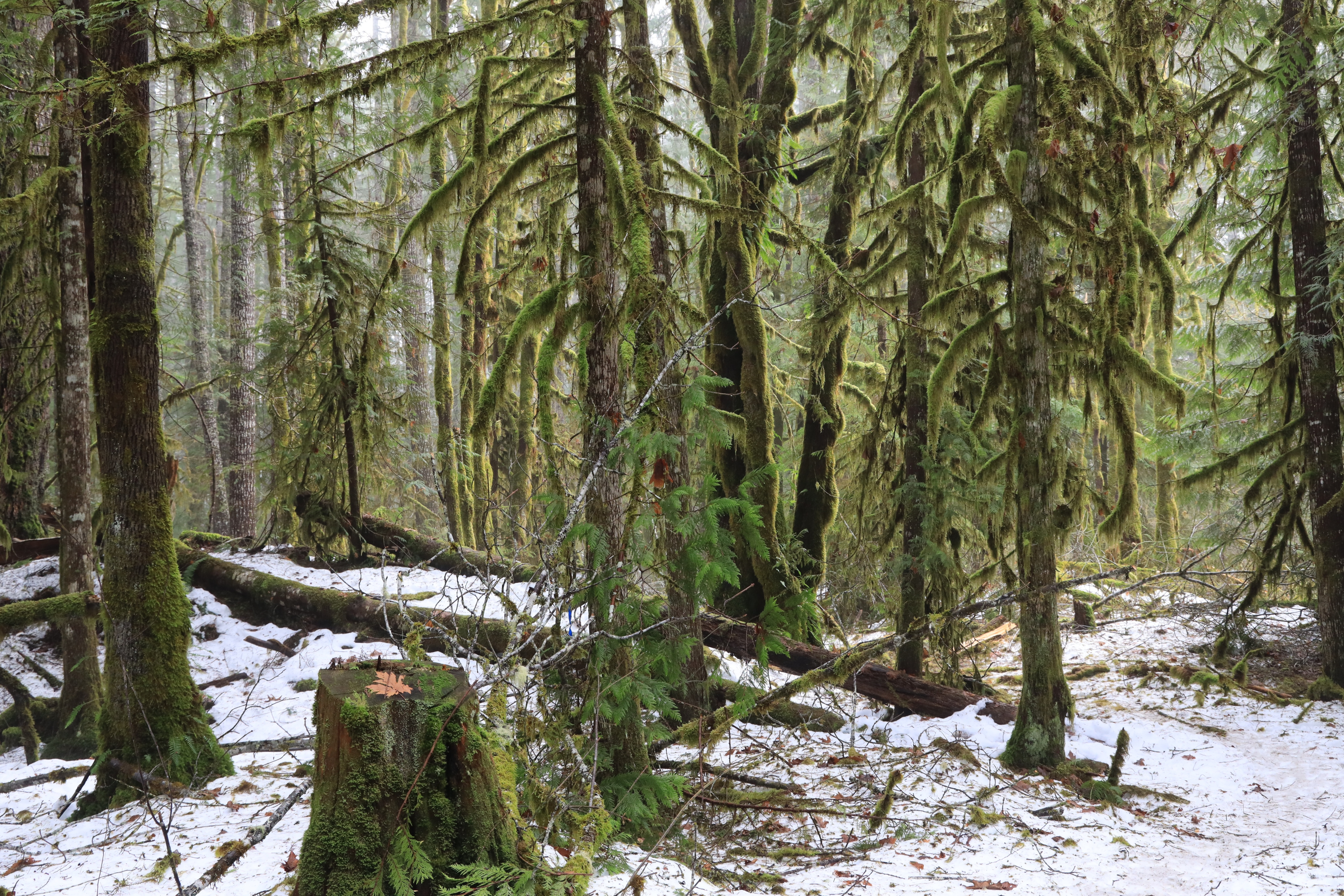 Big Creek 야영장 주변 등산로이며 이끼 숲이 장관입니다.