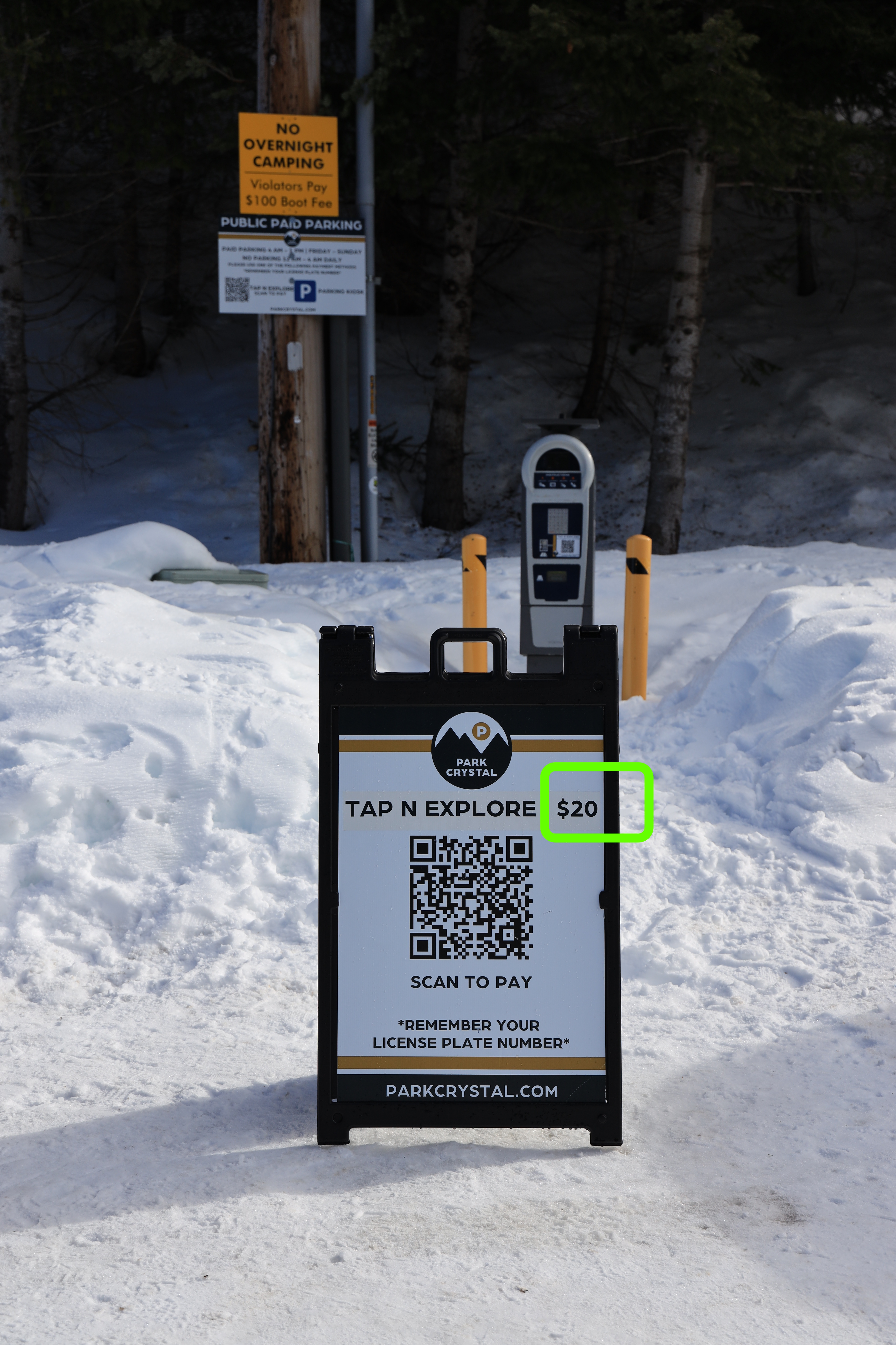 주차장에 주차비가 20불이라는 안내문이 있습니다. 그런데, 전화기에서 주차비를 내려고 하니 30불입니다. 미국에서는 금액에 세금이 빠져있어 실제로는 20불보다 조금 더 내야 돼지만 보통 30불까지는 아닙니다. 여기는 깊은 산속에 있는 스키장이라서 주로 이용객들이 방문하는 곳인데, 주차비를 받는 것도 이상하지만 산속 주차비가 시애틀 시내보다도 비싼 것 같습니다.