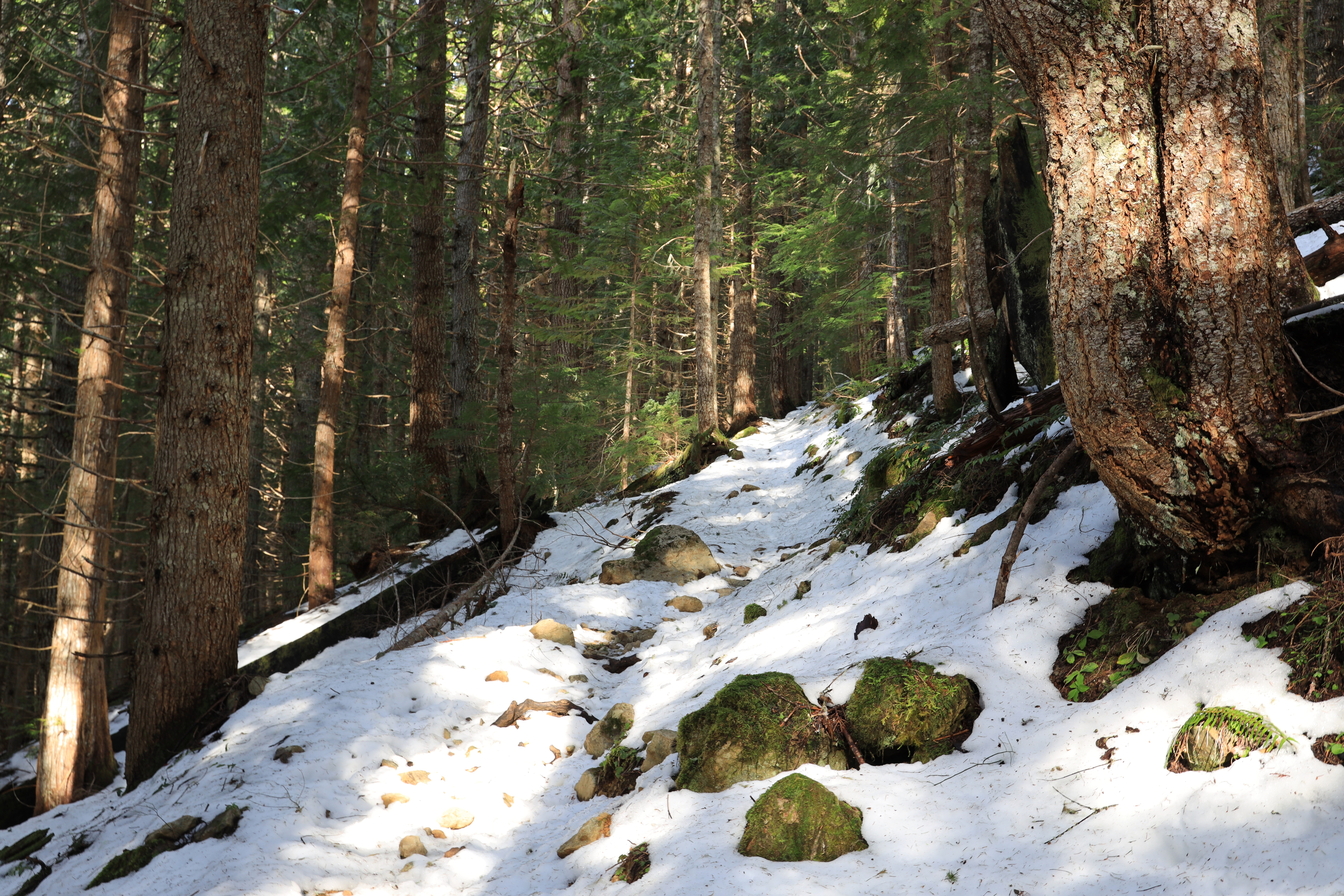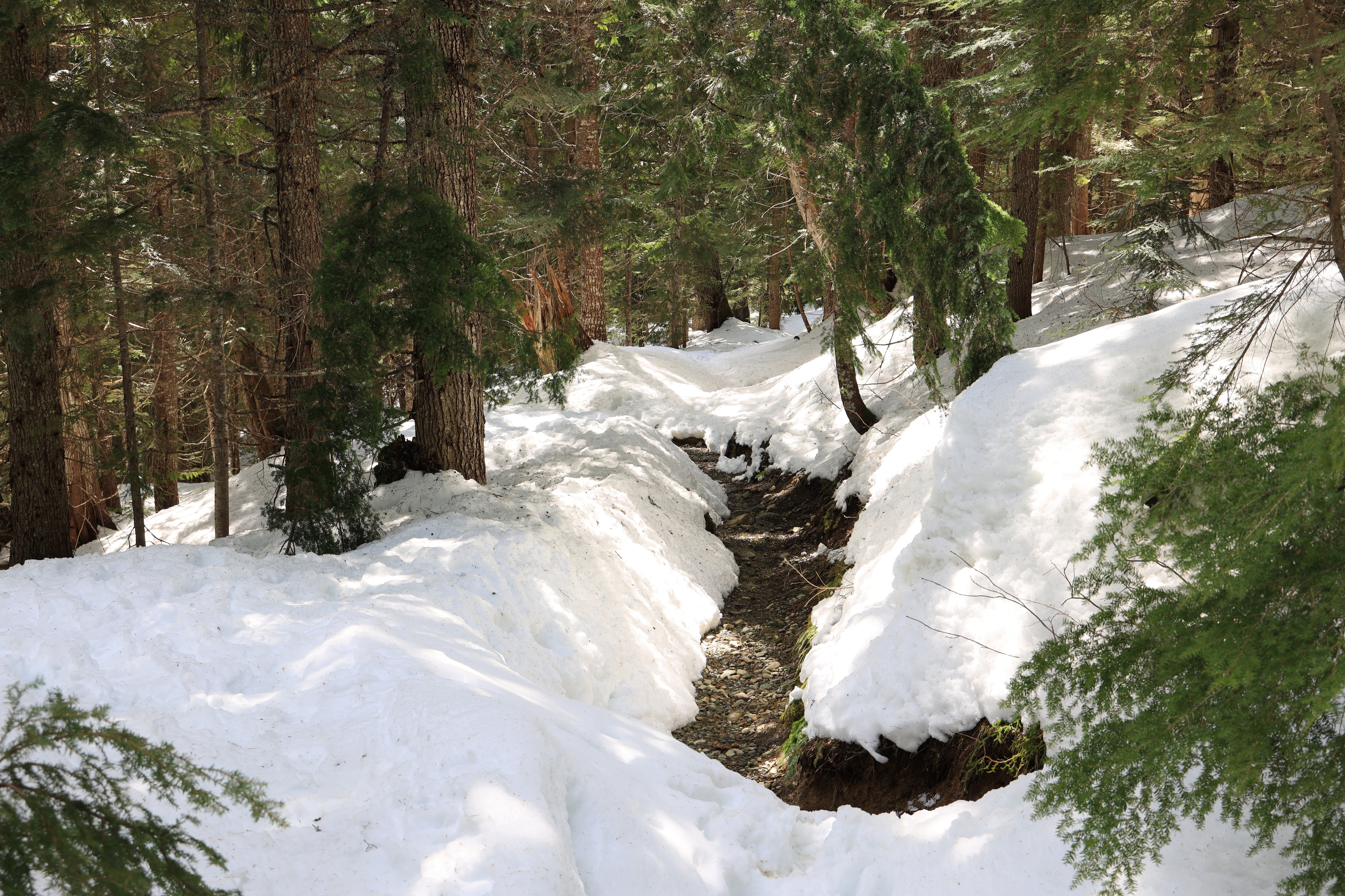 4월 말에 눈길 산행을 하였으며 등산로 입구에서 약 1 마일 지점부터 눈길이 시작되었고 산 위에는 온통 눈에 덮여 보이지 않지만 눈이 2 - 3 미터쯤 쌓여 있는 것 같습니다.