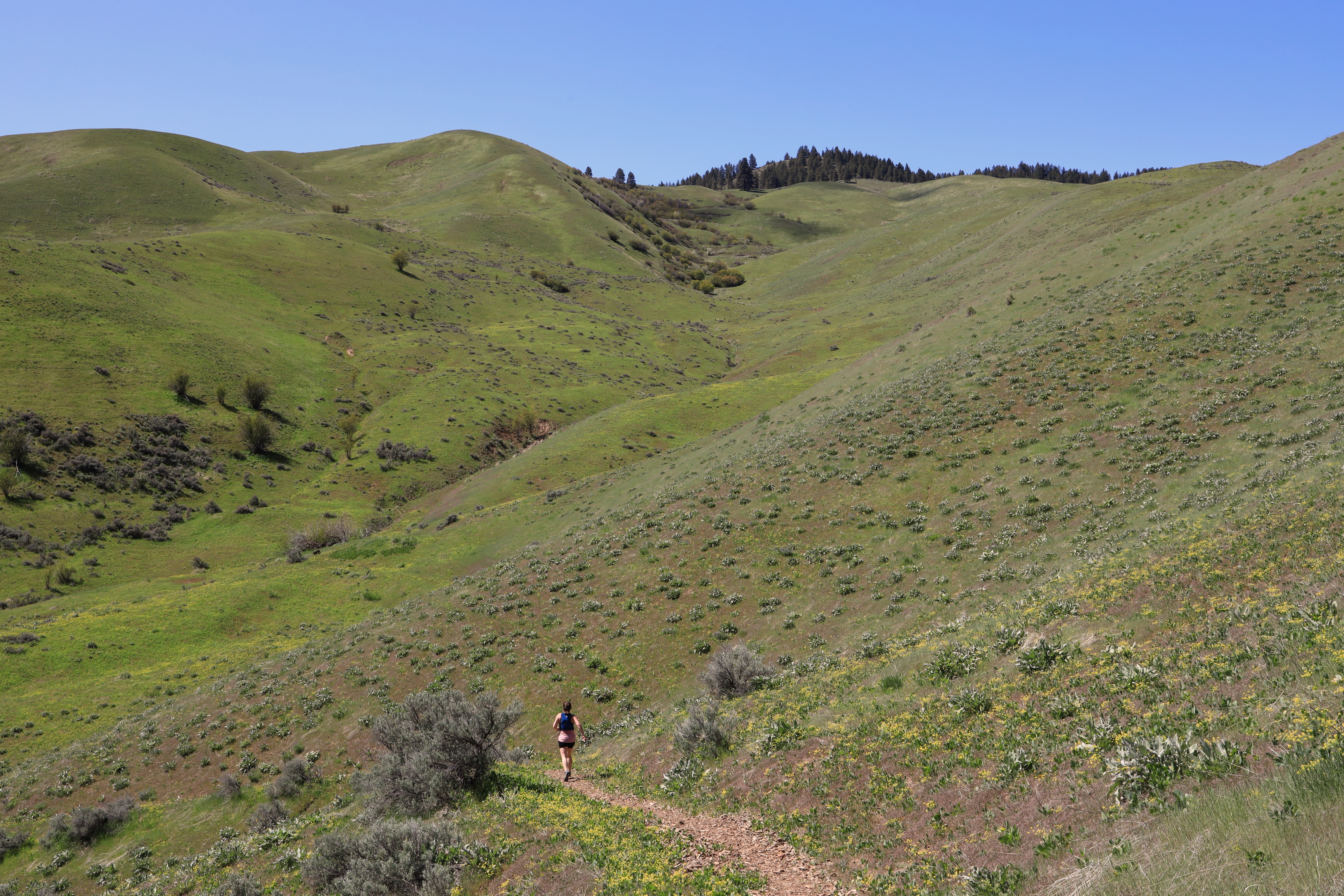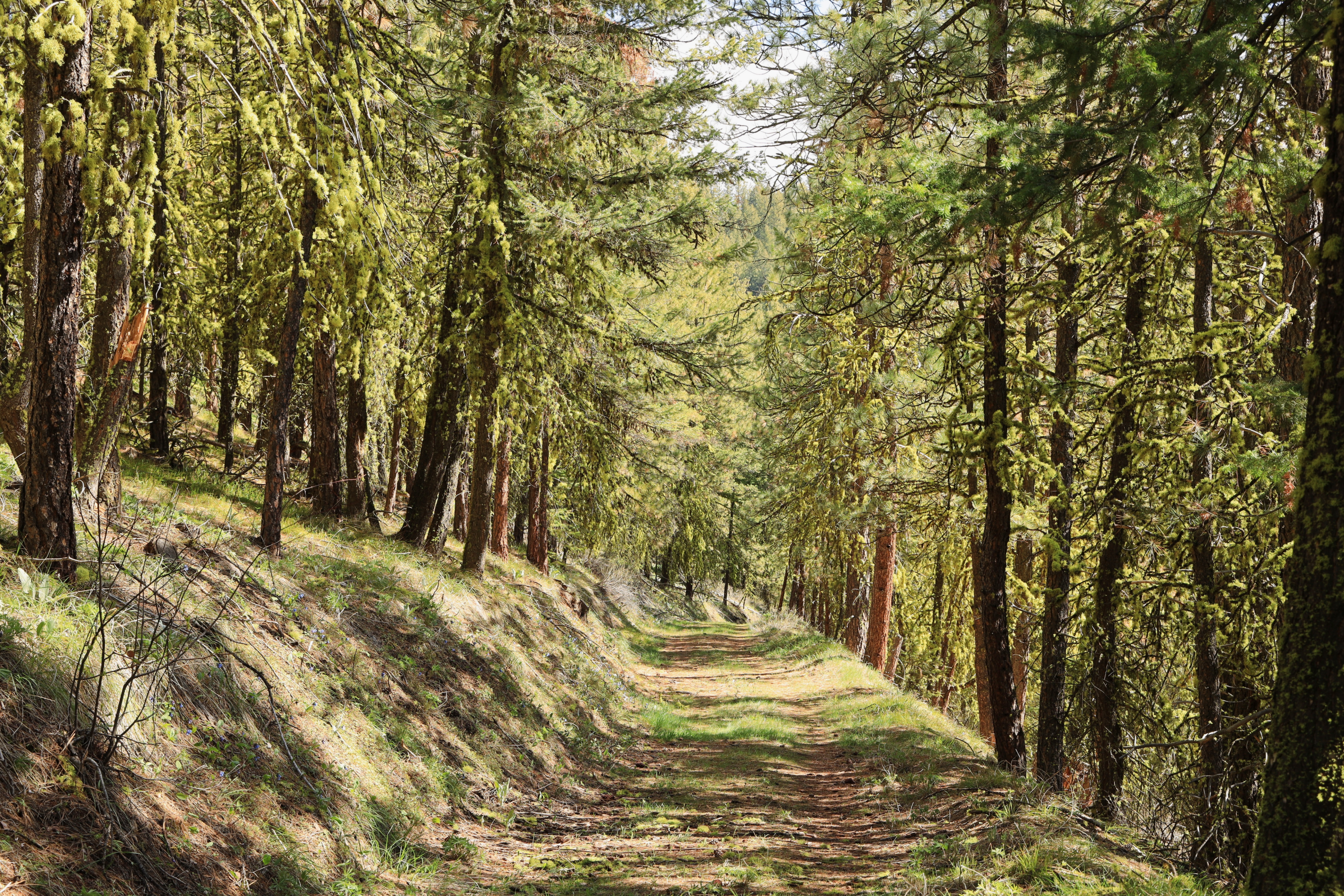 Spring Canyon Loop를 반시계 방향으로 돌면, 등산로는 Little Bear 전망대에서 산악도로를 따라 숲길로 내려옵니다.