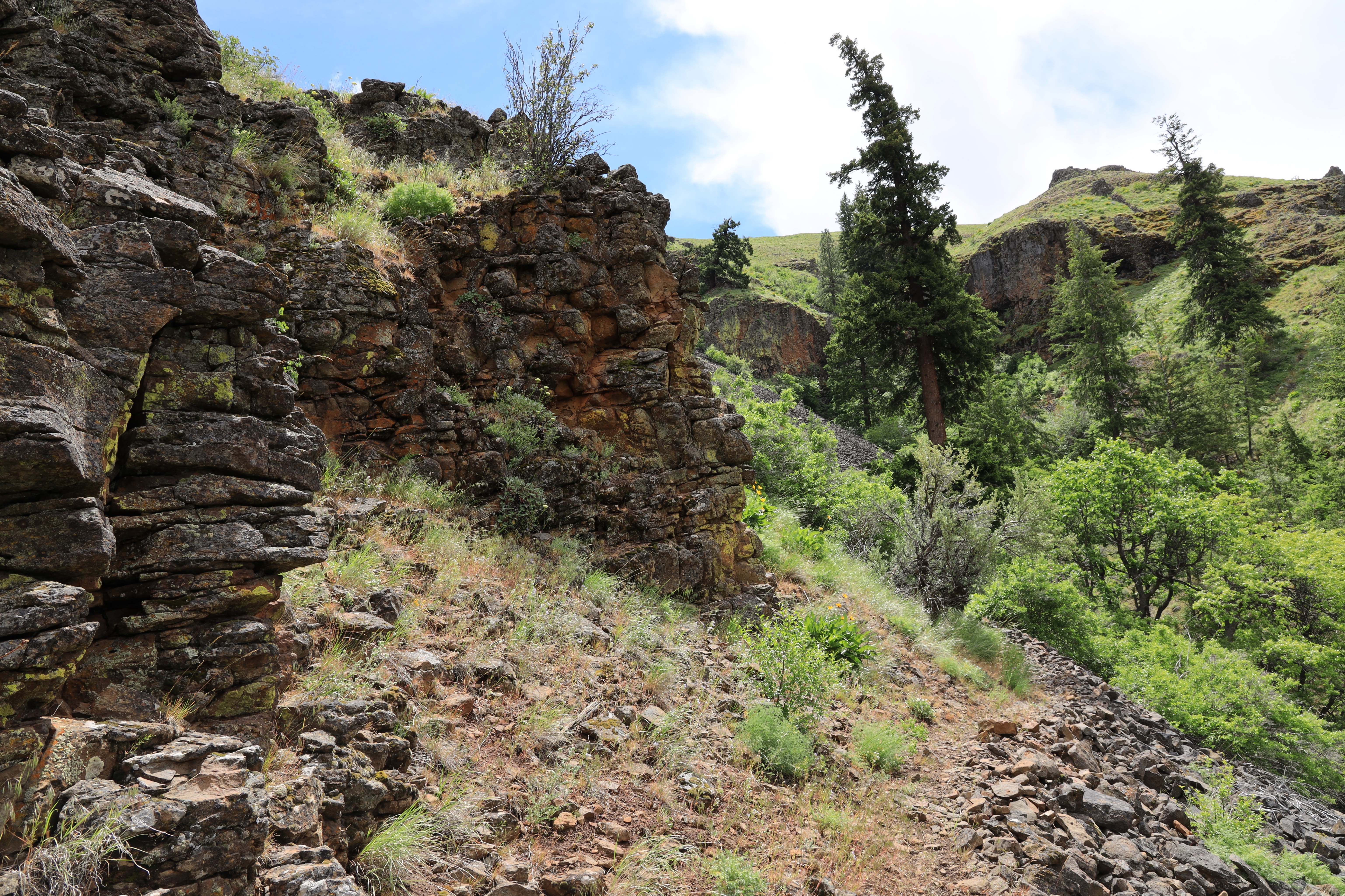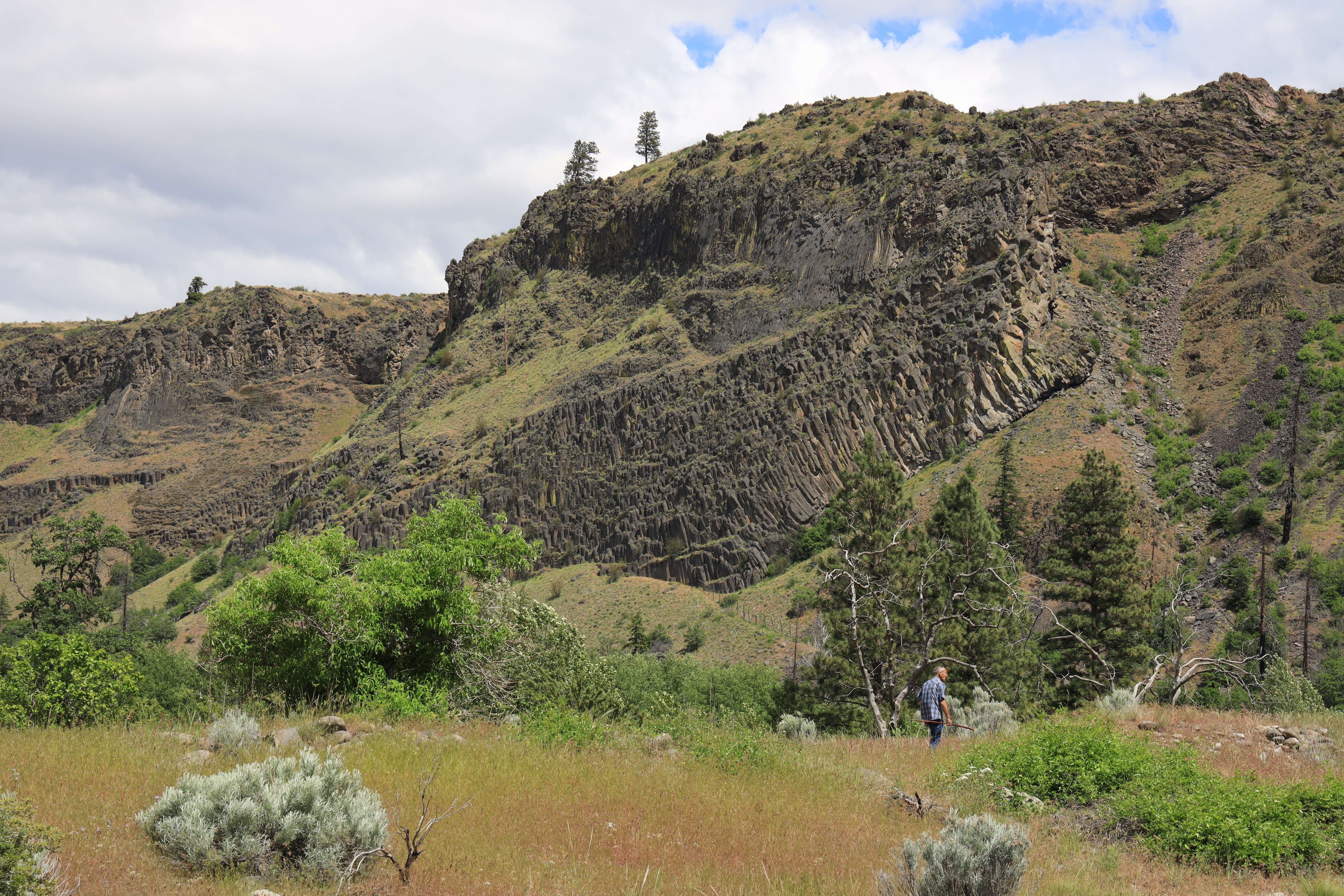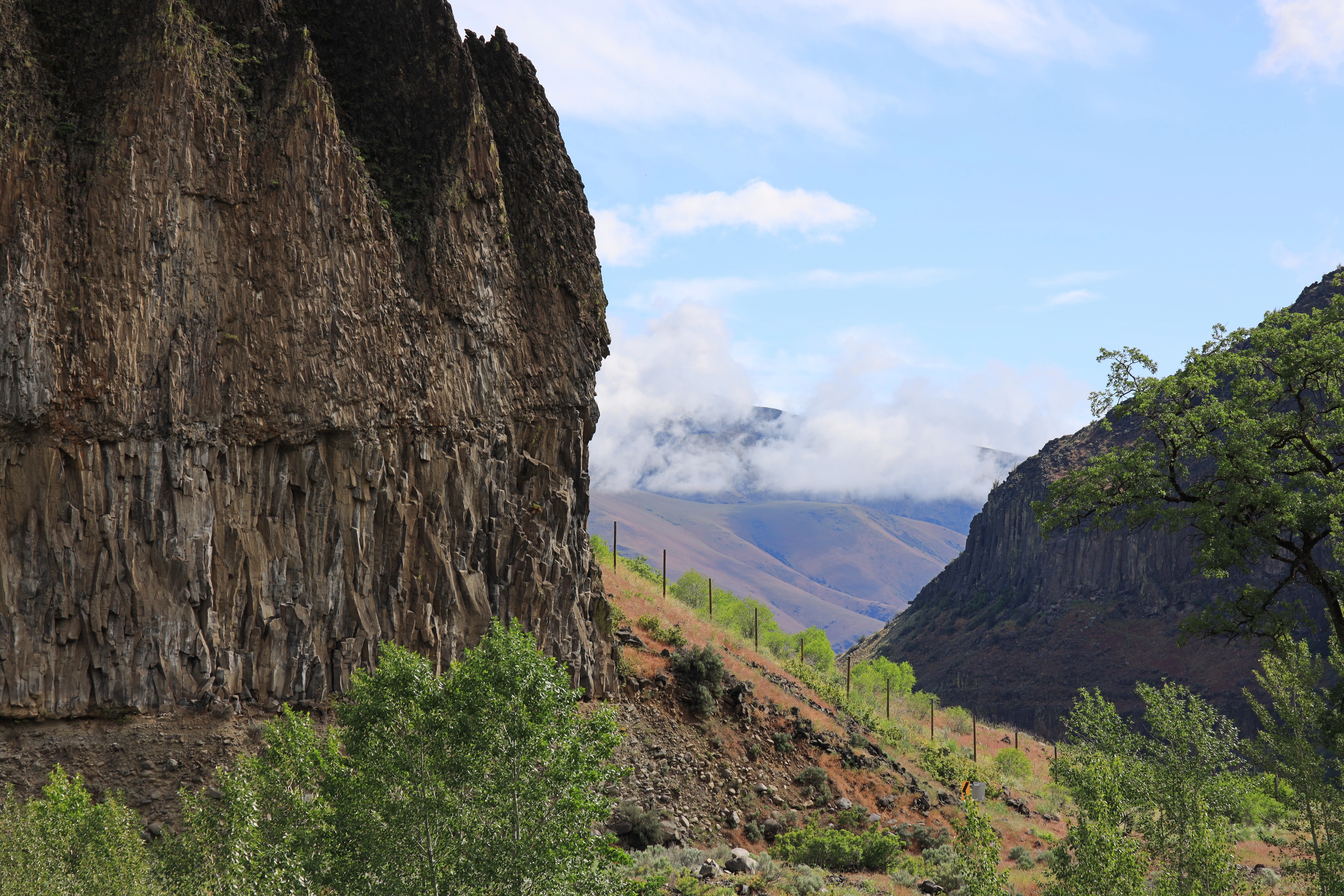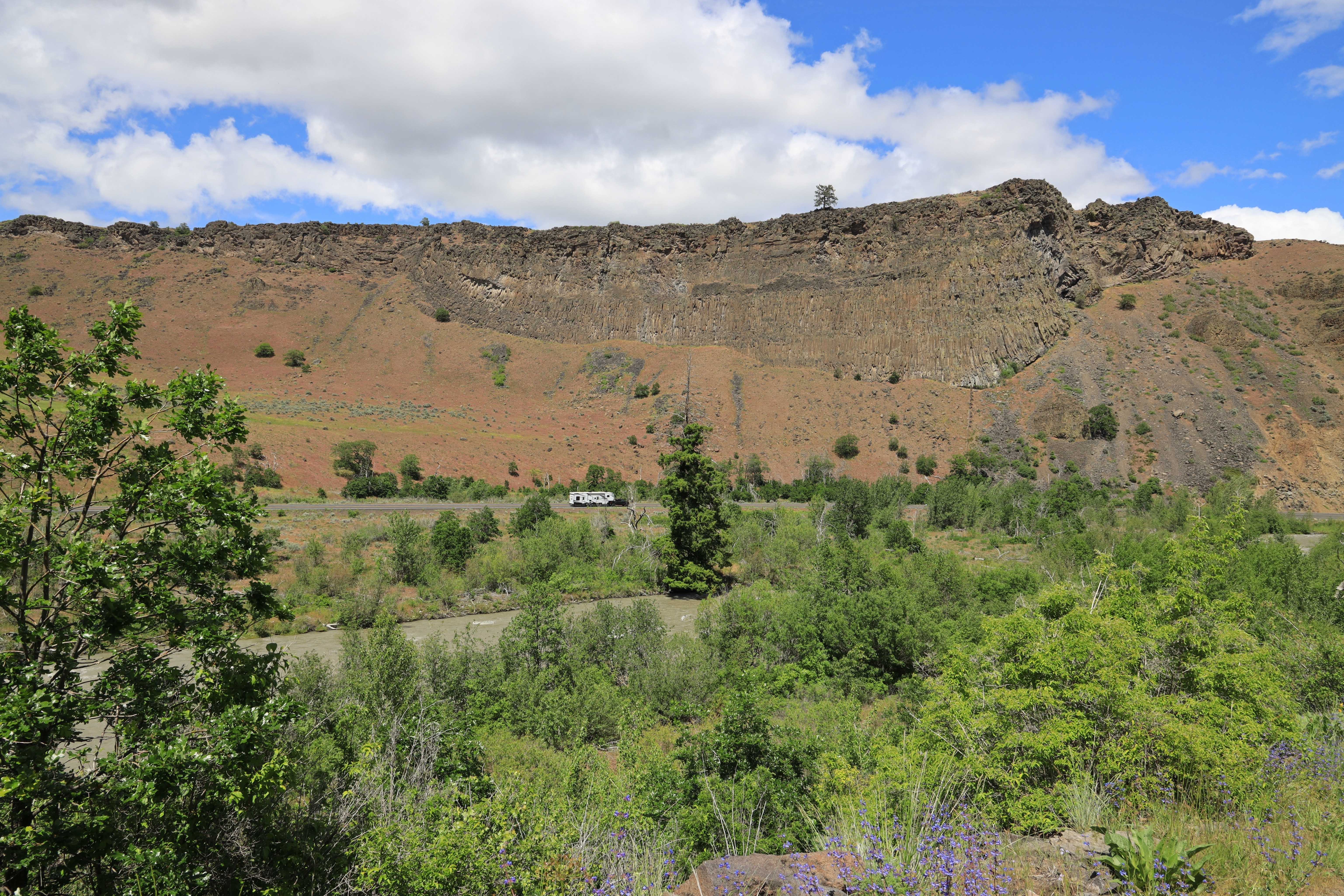산 위쪽 하얀색 선은 수로입니다. 서쪽 Rimrock Lake에서 물을 끌어 오는 것 같습니다.