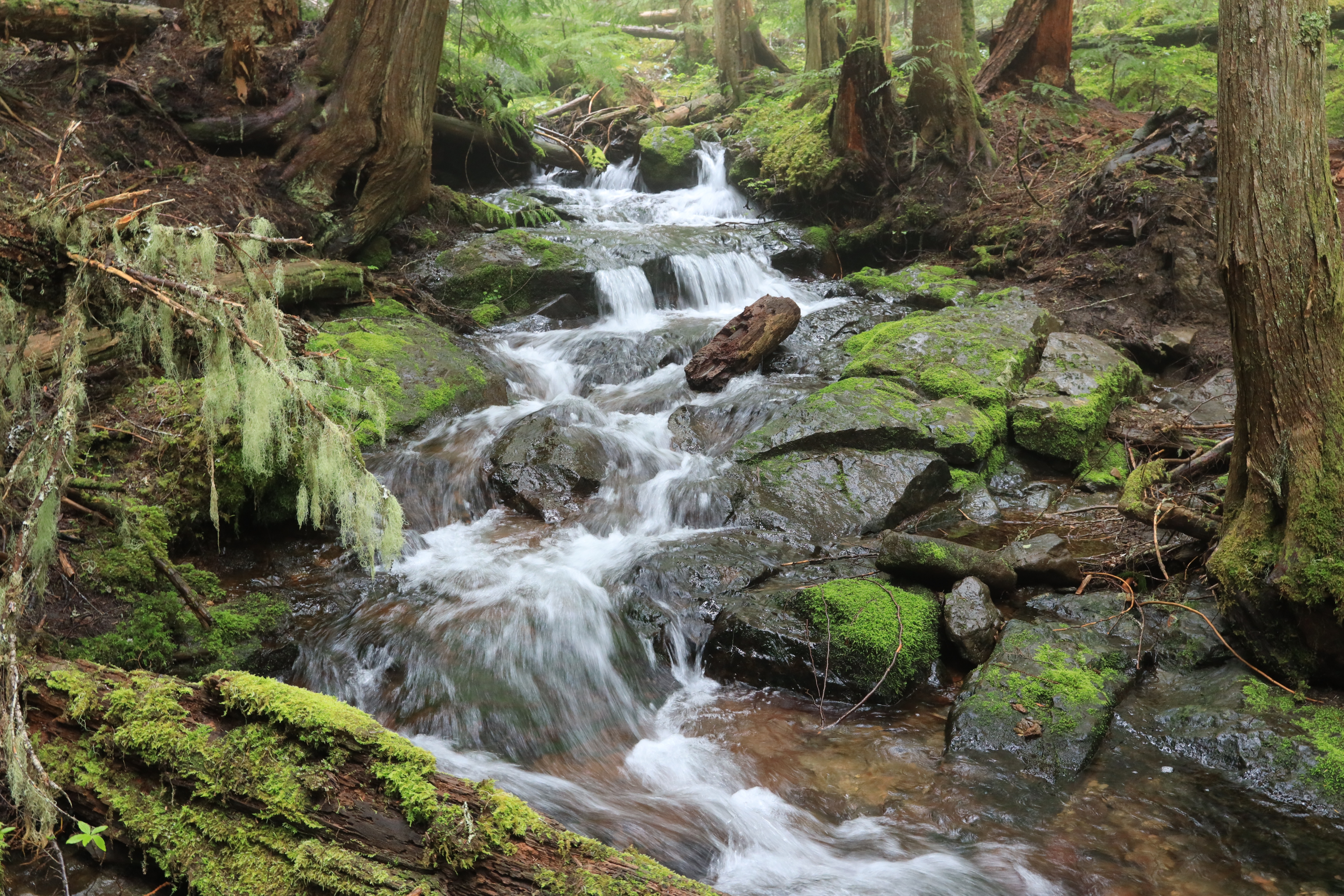 급류가 흐르는 계곡에 널빤지 다리가 걸려 있습니다. 비가 많이 오고 나면 이 다리는 다시 볼 수 없을지도 모르겠습니다.