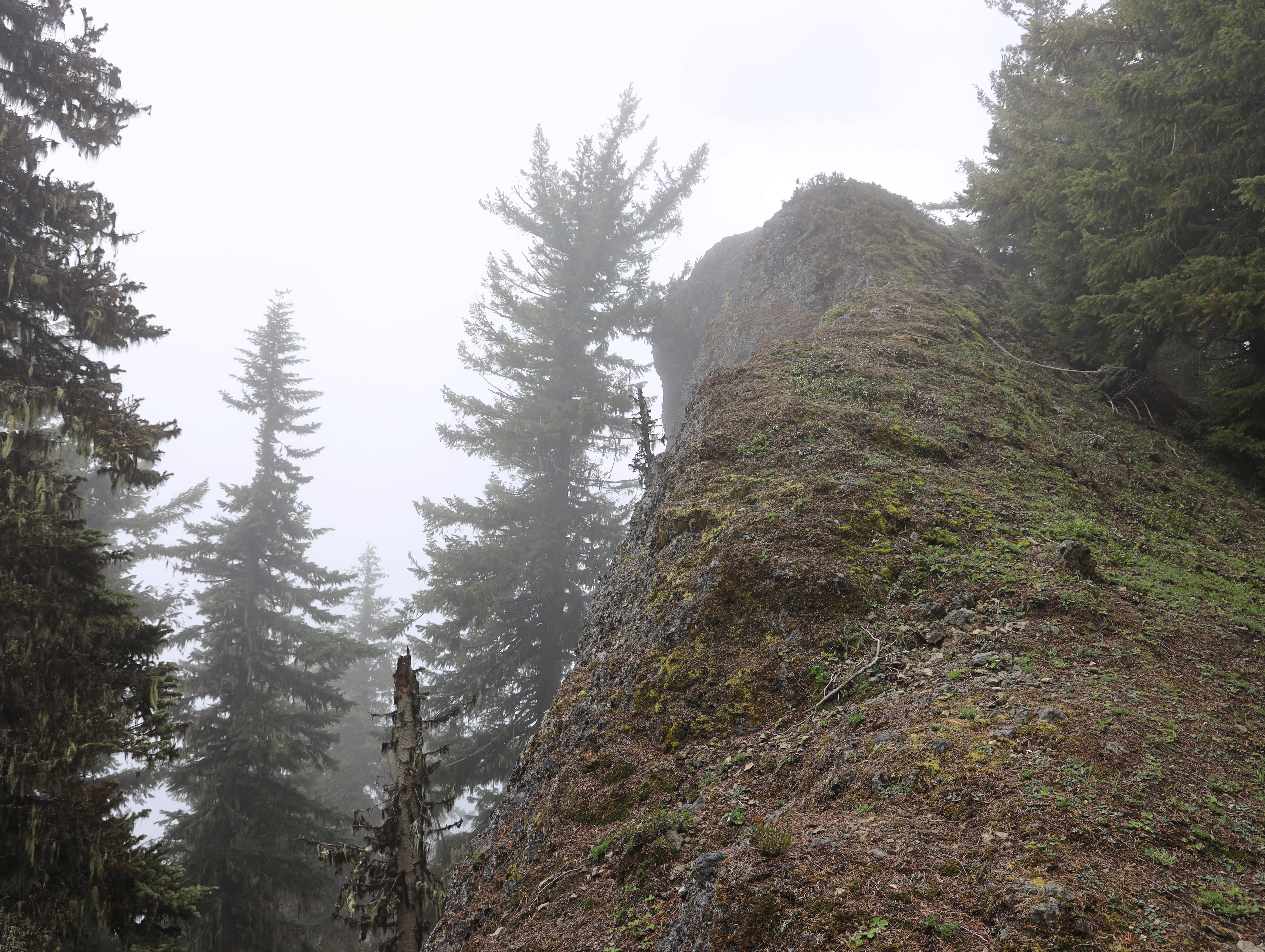 GPS에서 일러주는 등산로는 Little Ranger Peak을 가는 중간에서 끝납니다. 혹시나 싶어 Little Ranger Peak (파란색 점)까지 올랐지만 나무와 운무에 가려져 전망은 별로이고 (위 사진 참조), 정상을 오르는 등산로도 없어 숲을 헤치며 산을 올랐습니다. 산을 내려오다가 지도의 초록색 지점에서 점심을 먹었는데, 여기가 명당자리이고 산행은 이 지점까지만 가도 좋을 것 같습니다.