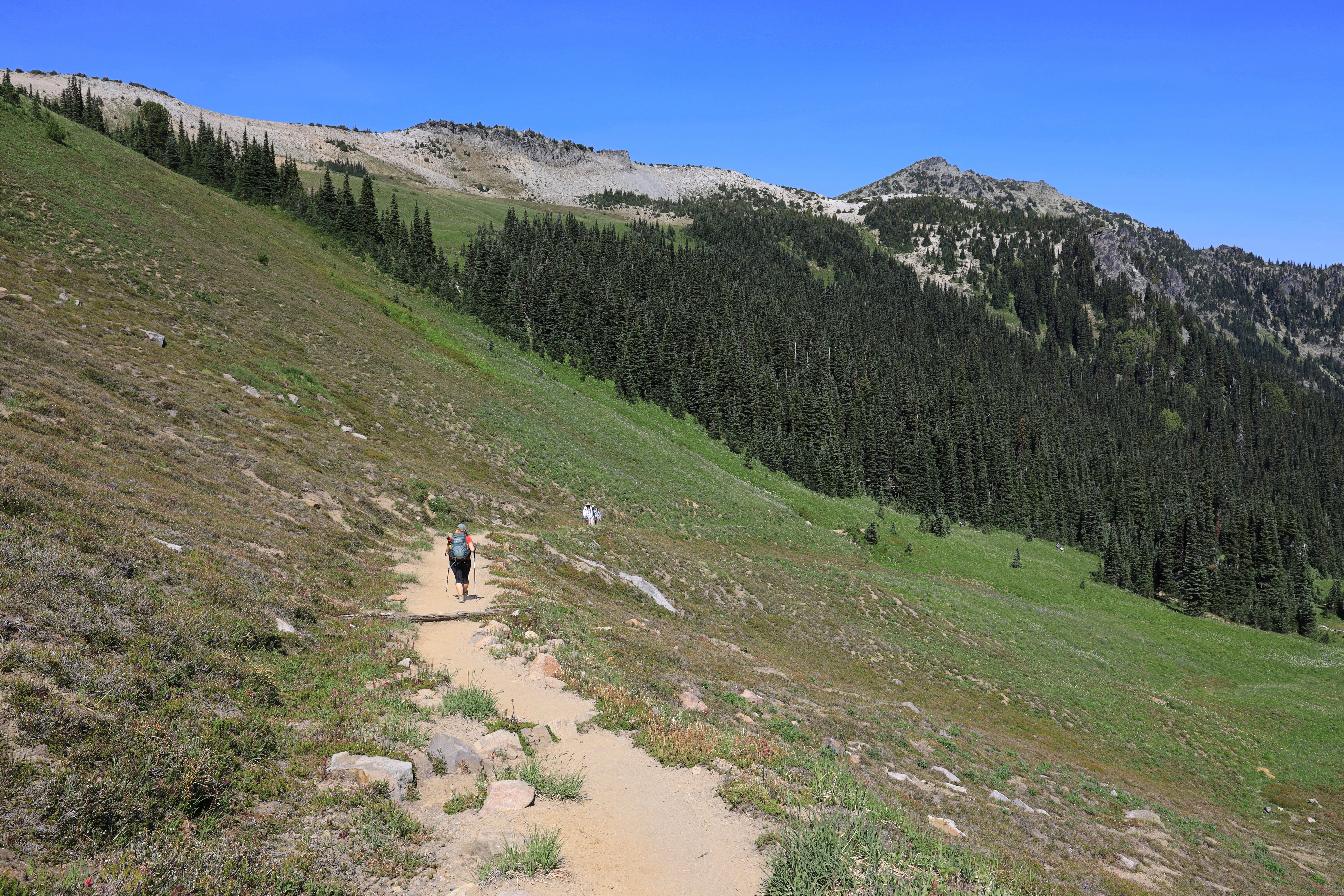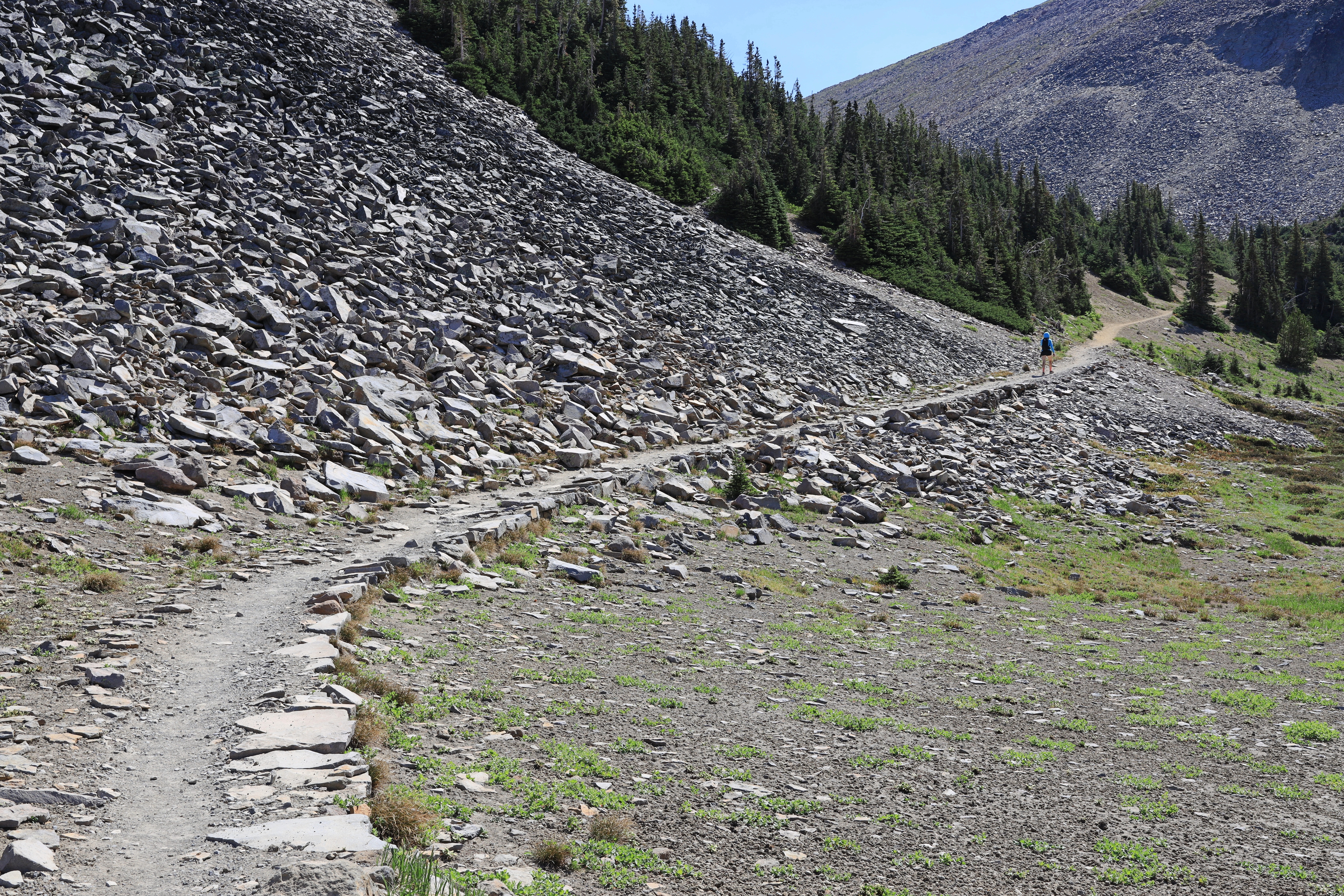 눈산 (Mount Rainier)이 만든 벌판을 지나갑니다. 땡볕이기는 하지만 고도가 높아 별로 덥지 않고 전망이 시원시원합니다.
