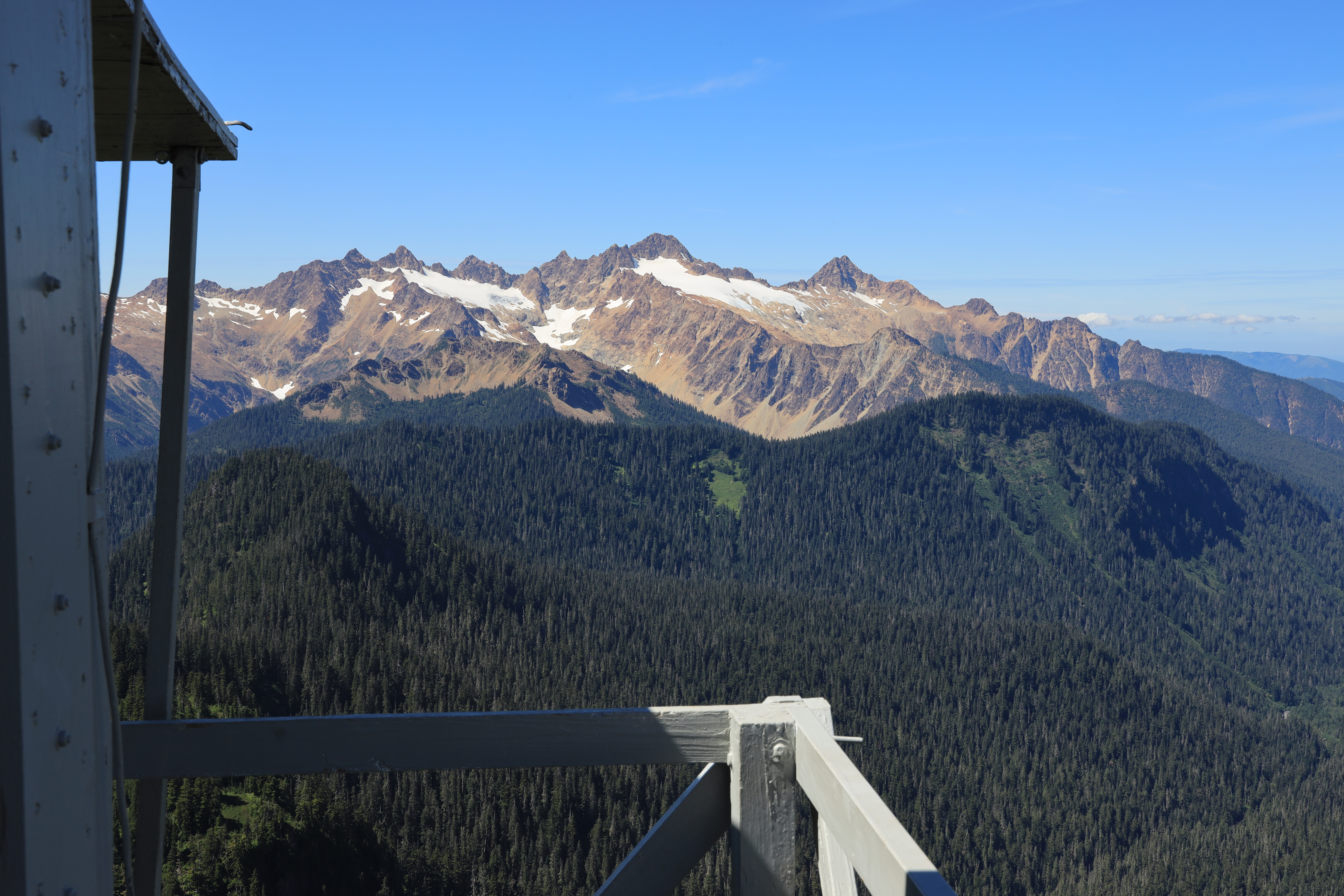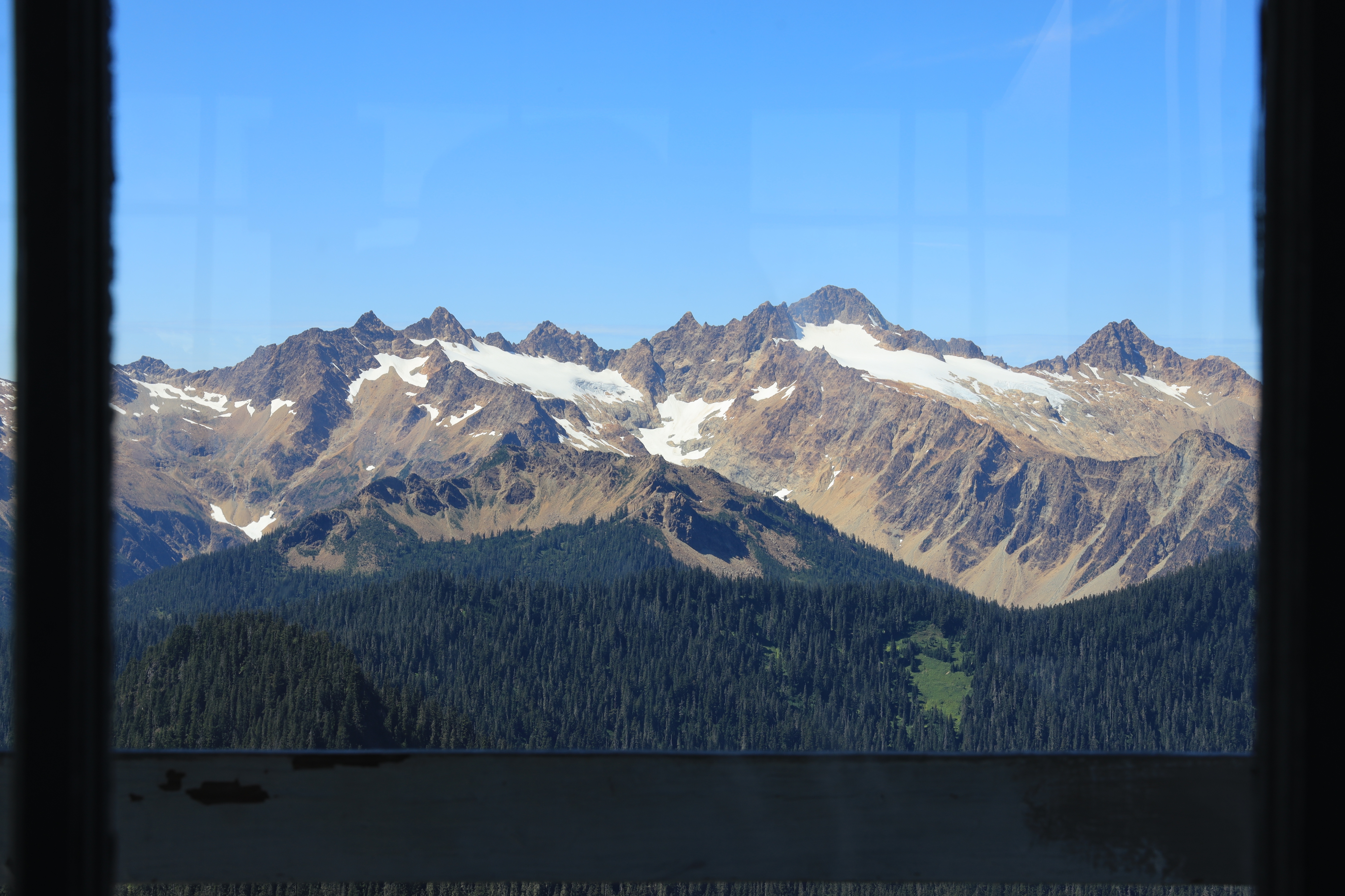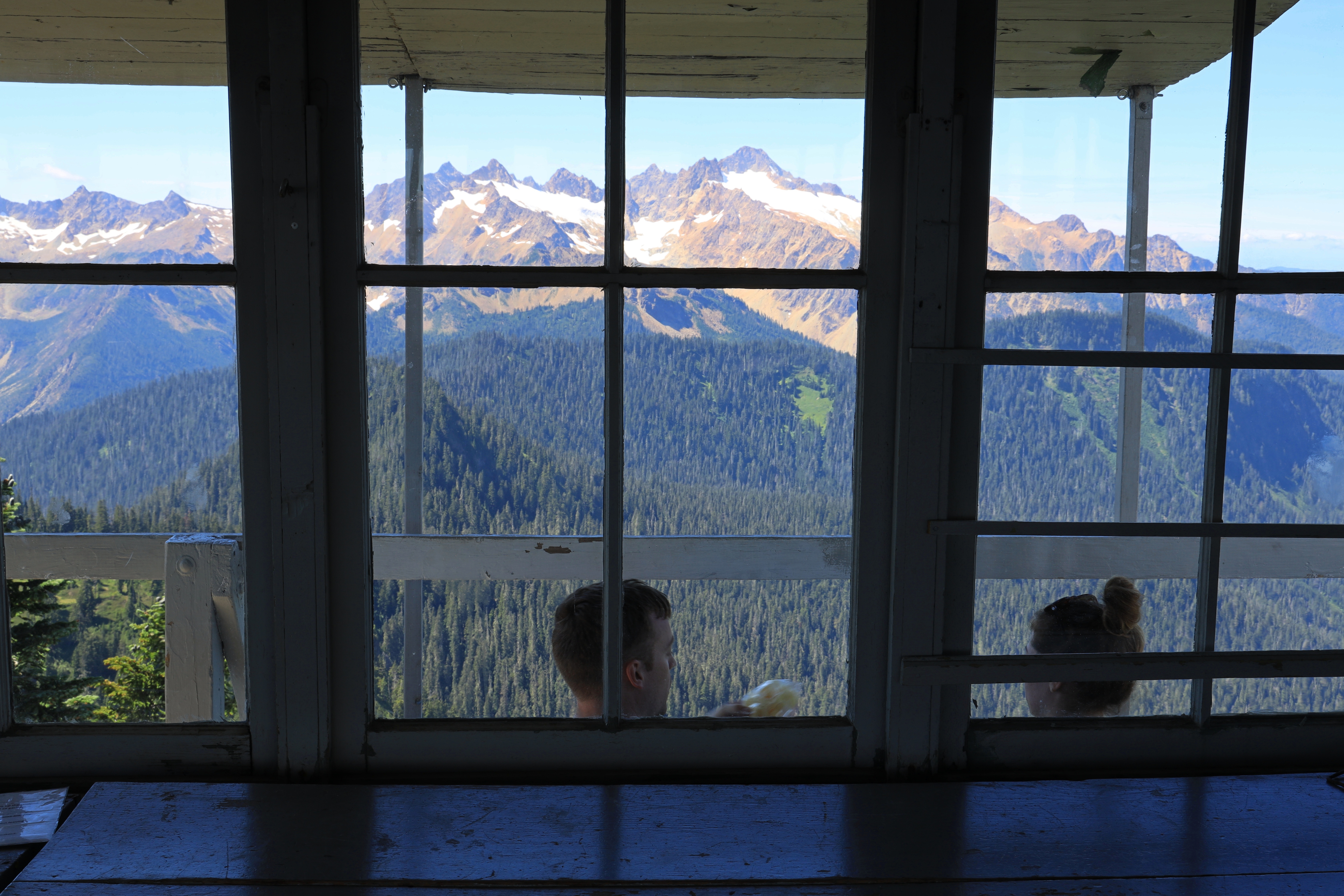 전망대에는 침대, 책상과 튼튼한 카메라 삼각대 두 개가 있네요. Mount Baker 산비탈에 걸리는 일출과 Bellingham 방향으로 일몰을 볼 수 있을 것 같습니다. 자원봉사자들이 산불을 감시하는 전망대인데 지금은 근무자가 없었습니다.