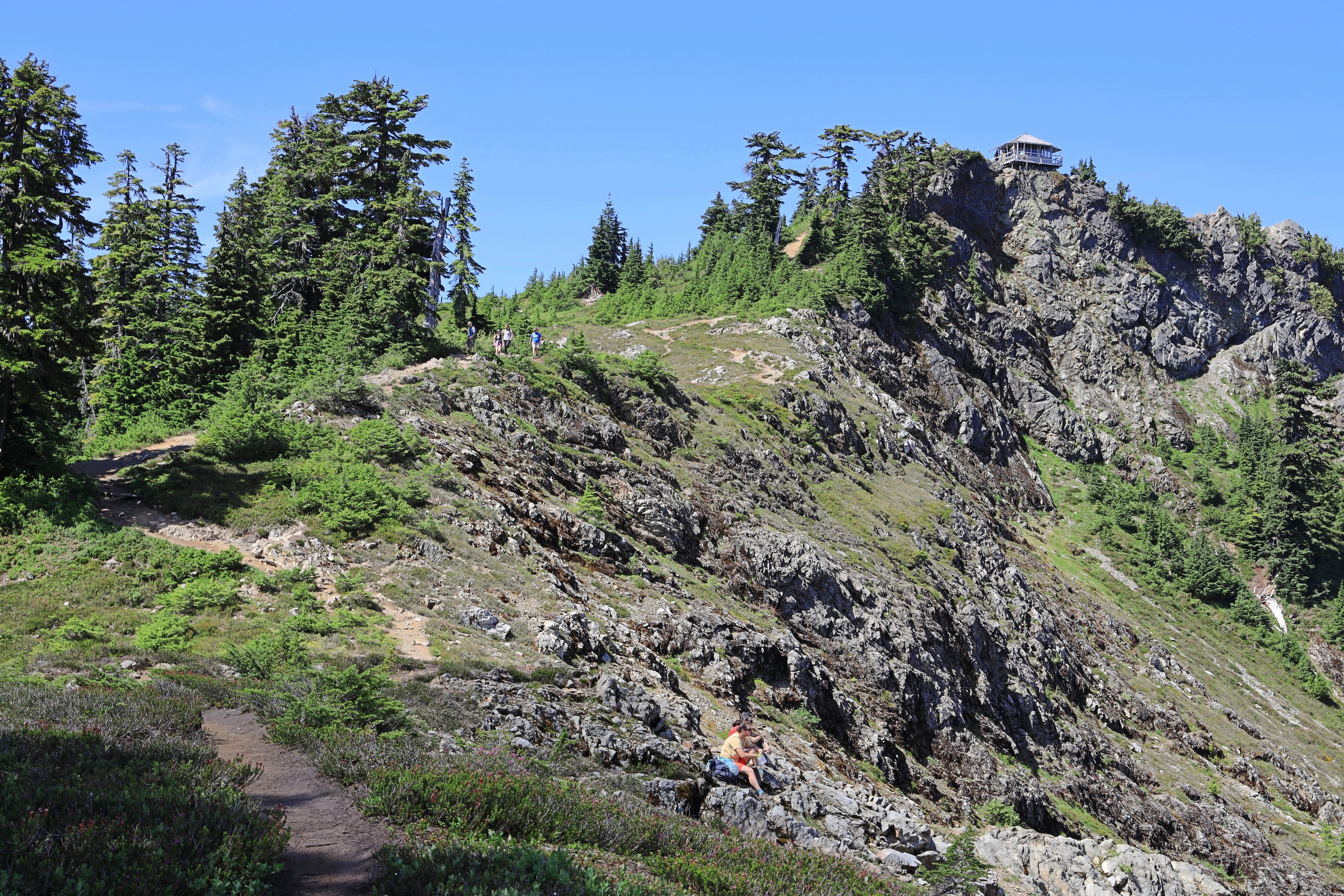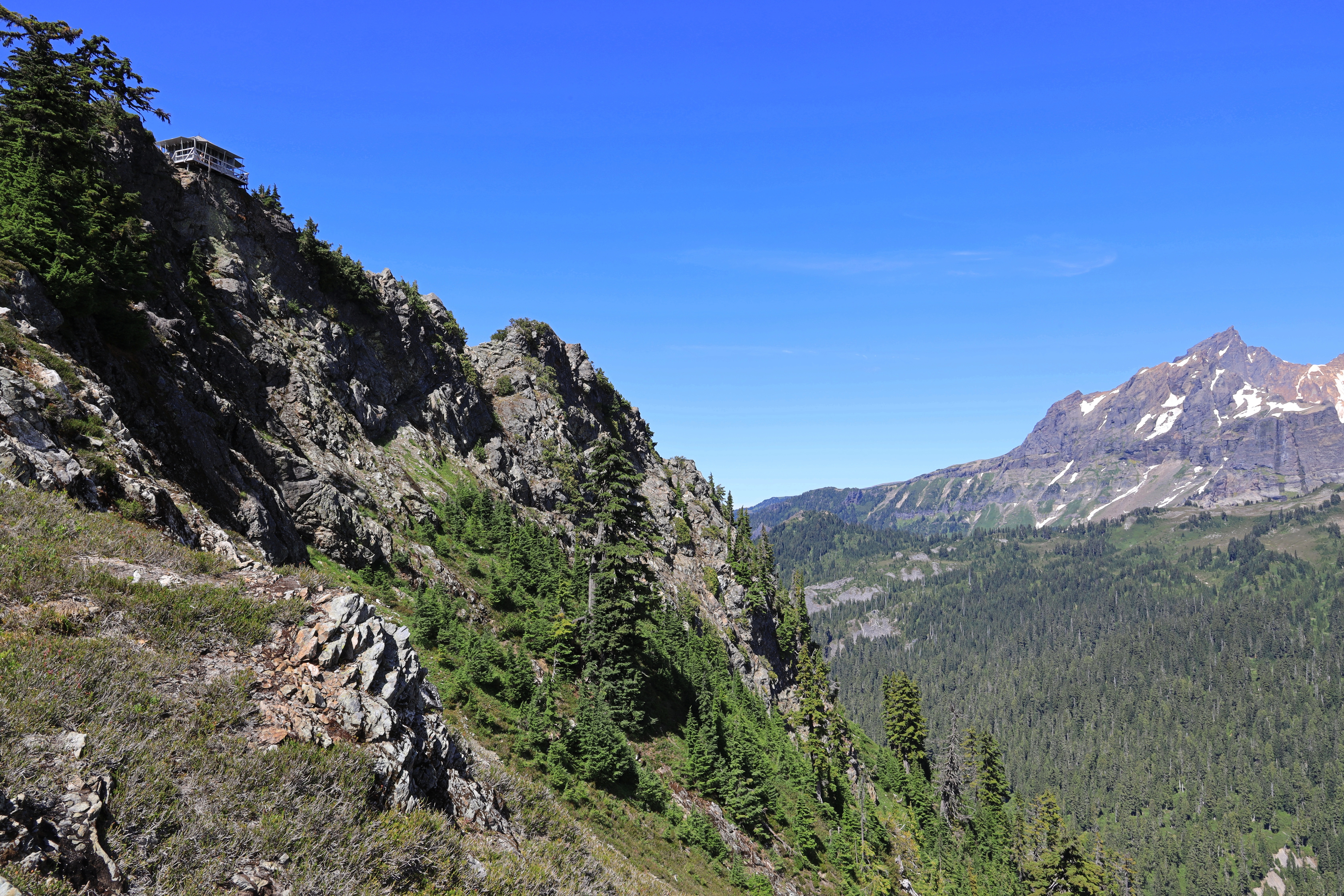 지그자그로 된 숲길을 오르면서 땀이 날 때가 되면 갈림길 (Railroad Grade와 Park Butte)이 나오고, 갈림길 근처부터 전망이 시원하게 열립니다. 대부분 젊은 산객들은 야영 배낭을 메고 Railroad Grade 방향으로 올라서 갈림길을 지나면 등산로가 한산해집니다.