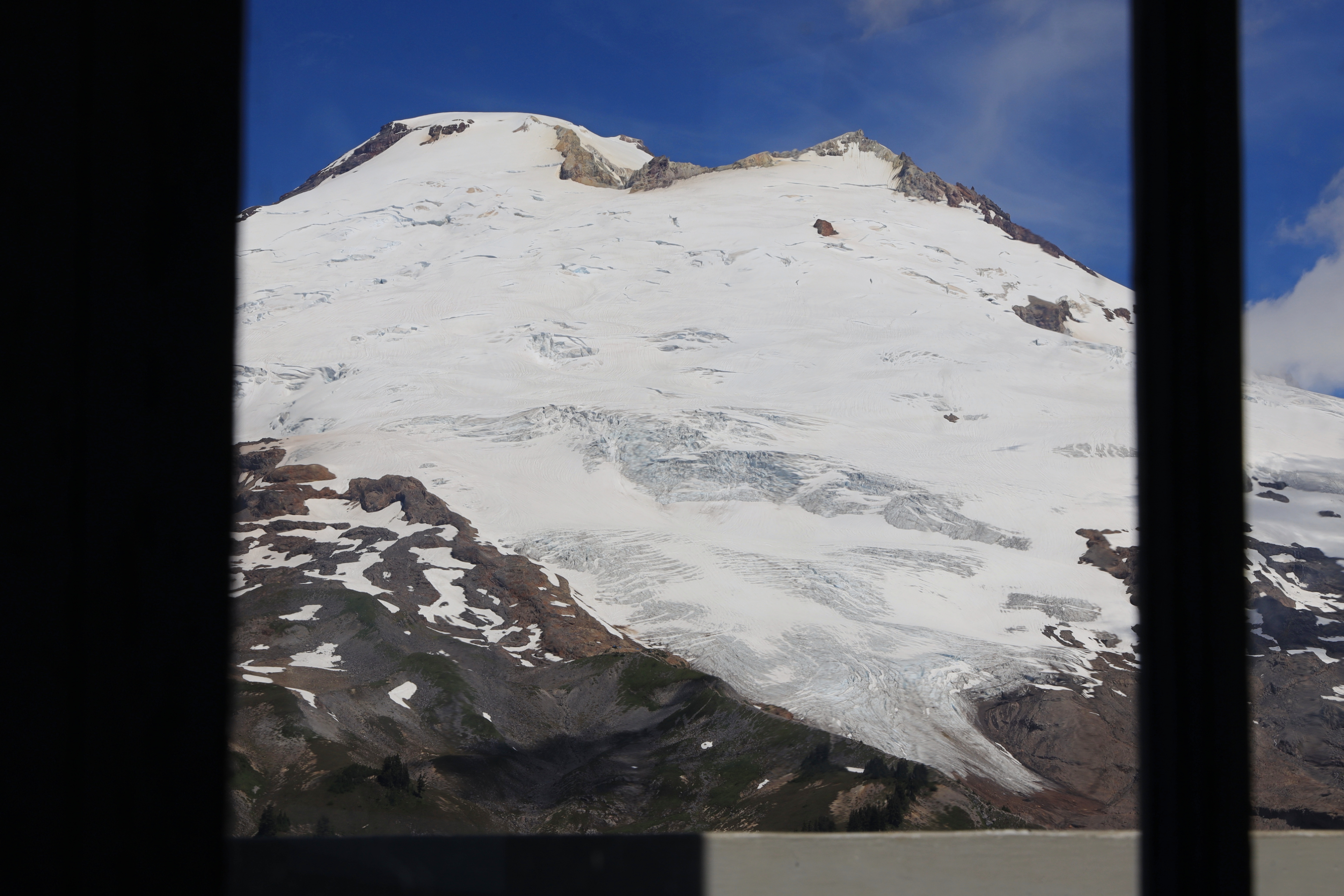 야영 배낭에 빙하 등반장비를 매달고 하산하는 산객들을 보고 그 이유를 알 수 있었습니다. Railroad Grade Trail로 Mount Baker에 올랐던 등반객 차가 주차되어 있었습니다.