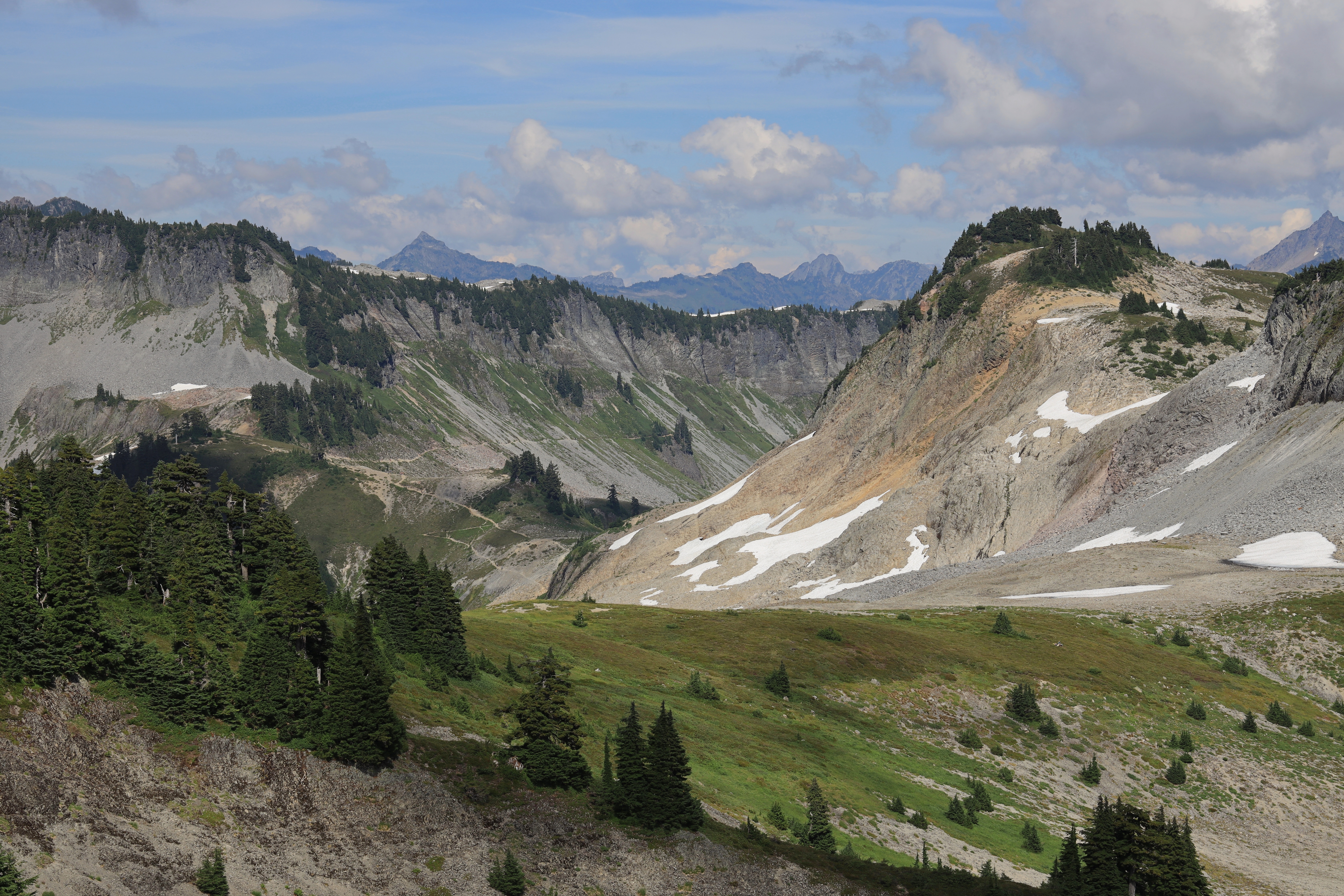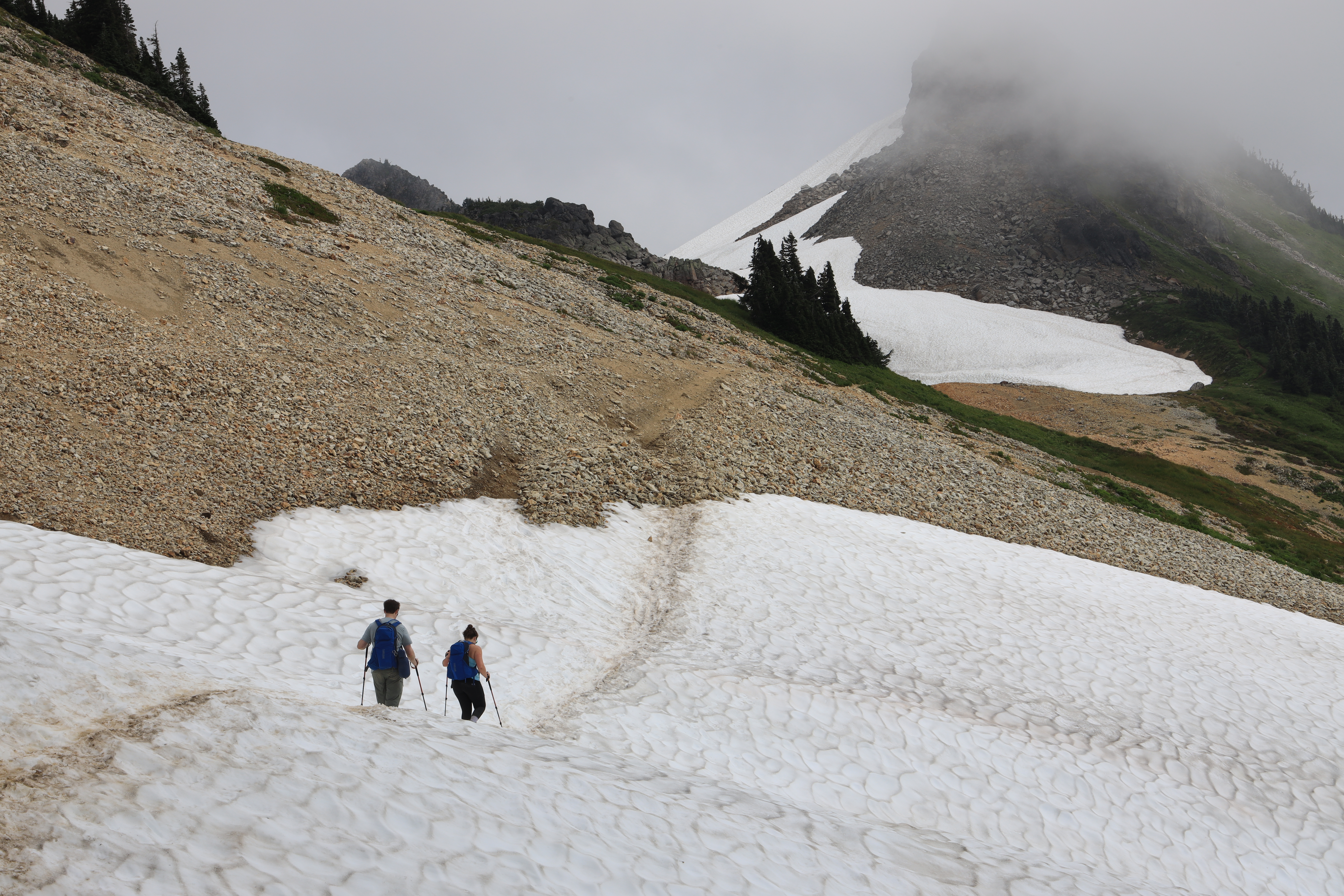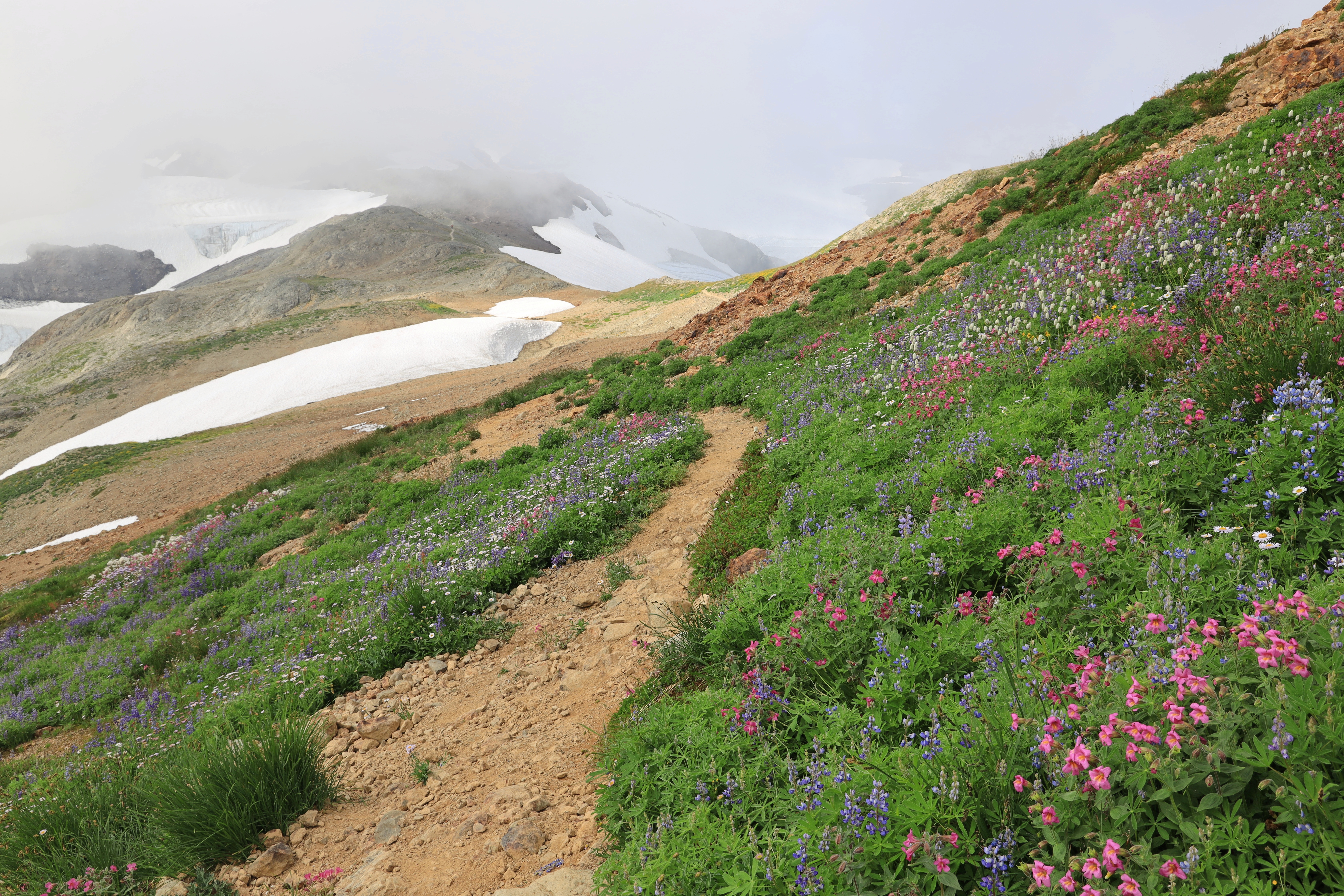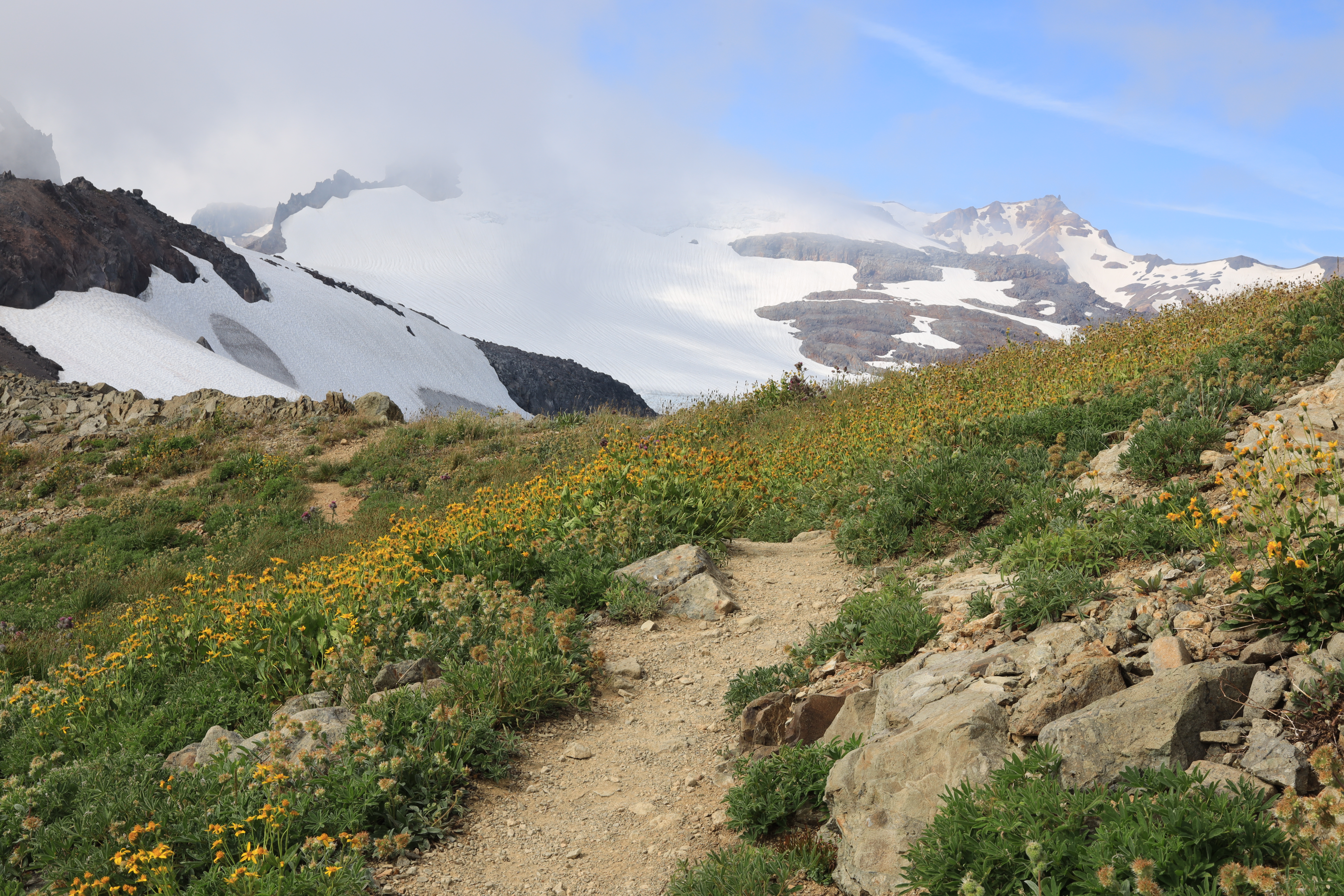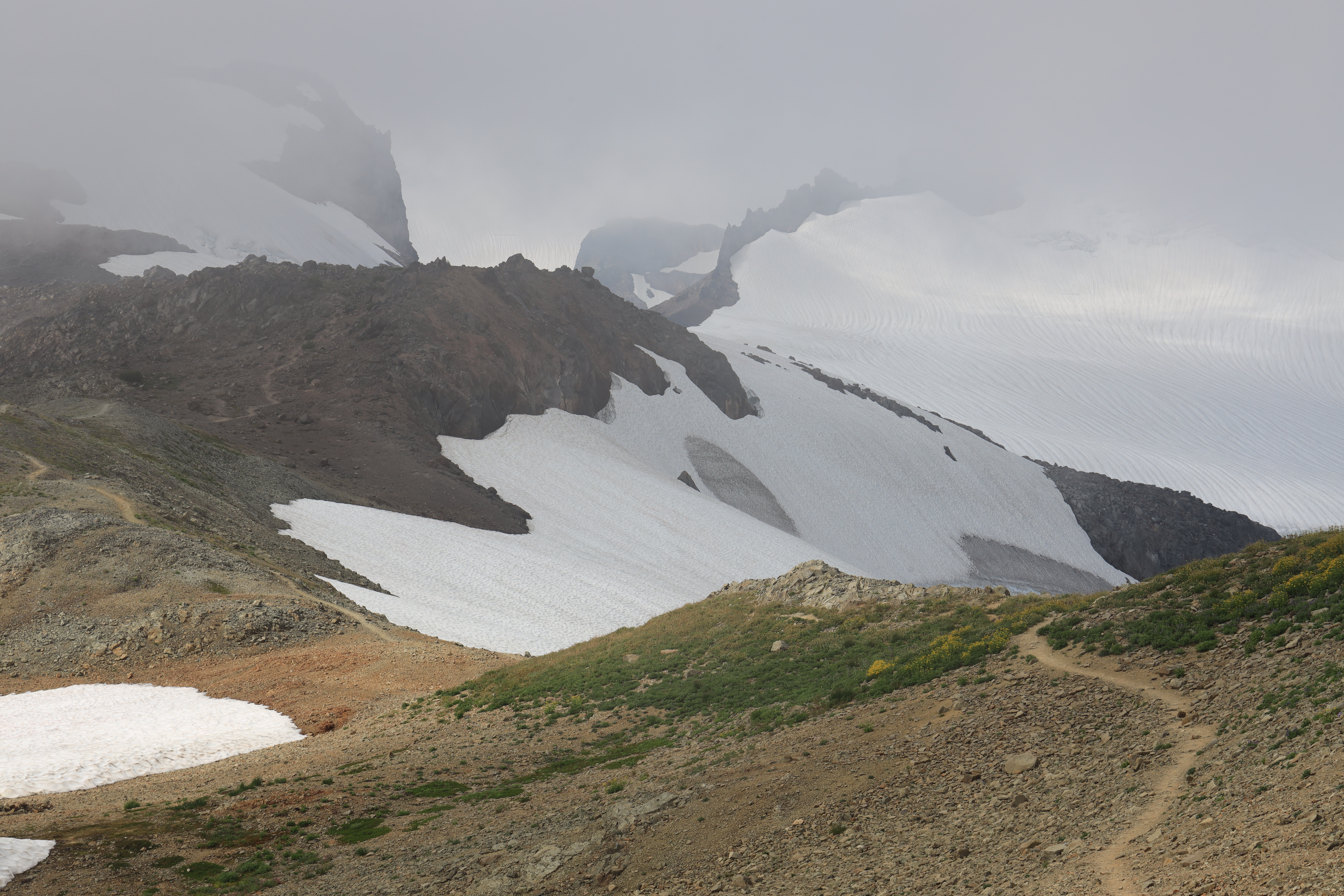 Chain Lakes Loop 갈림길을 지나 산을 오르는 길입니다. 오전에는 운무가 짙었고 오후가 되면서 시야가 열렸습니다.