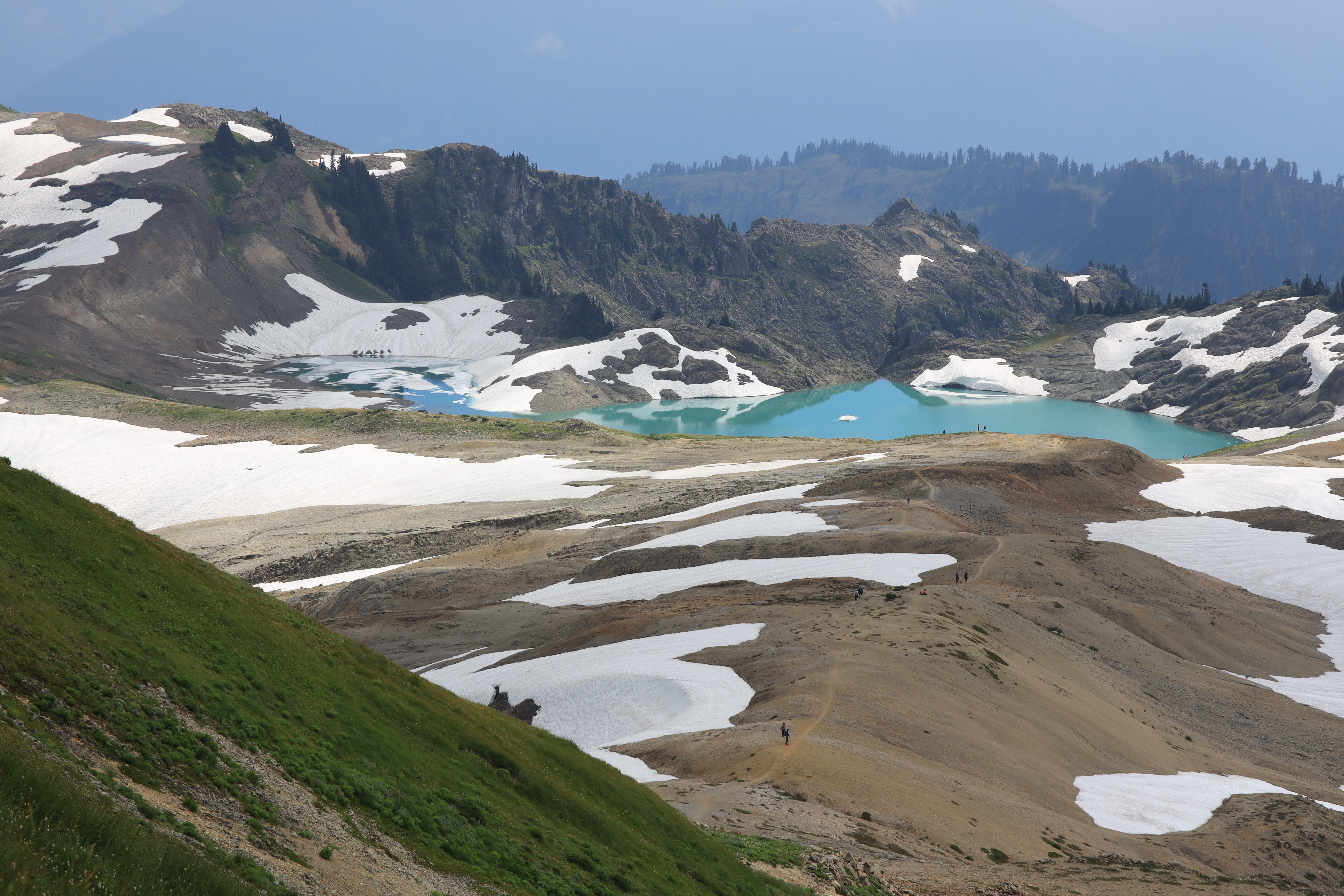 지도에는 이름 없는 호수인데 워싱턴 등산협회 (wta.org) 자료를 보니 Goat Lake라고 합니다. 호수 물빛이 신비롭습니다. 시간이 충분치 않거나 어린이와 동행하였다면 이 근처까지만 산행을 하는 것도 좋겠습니다.