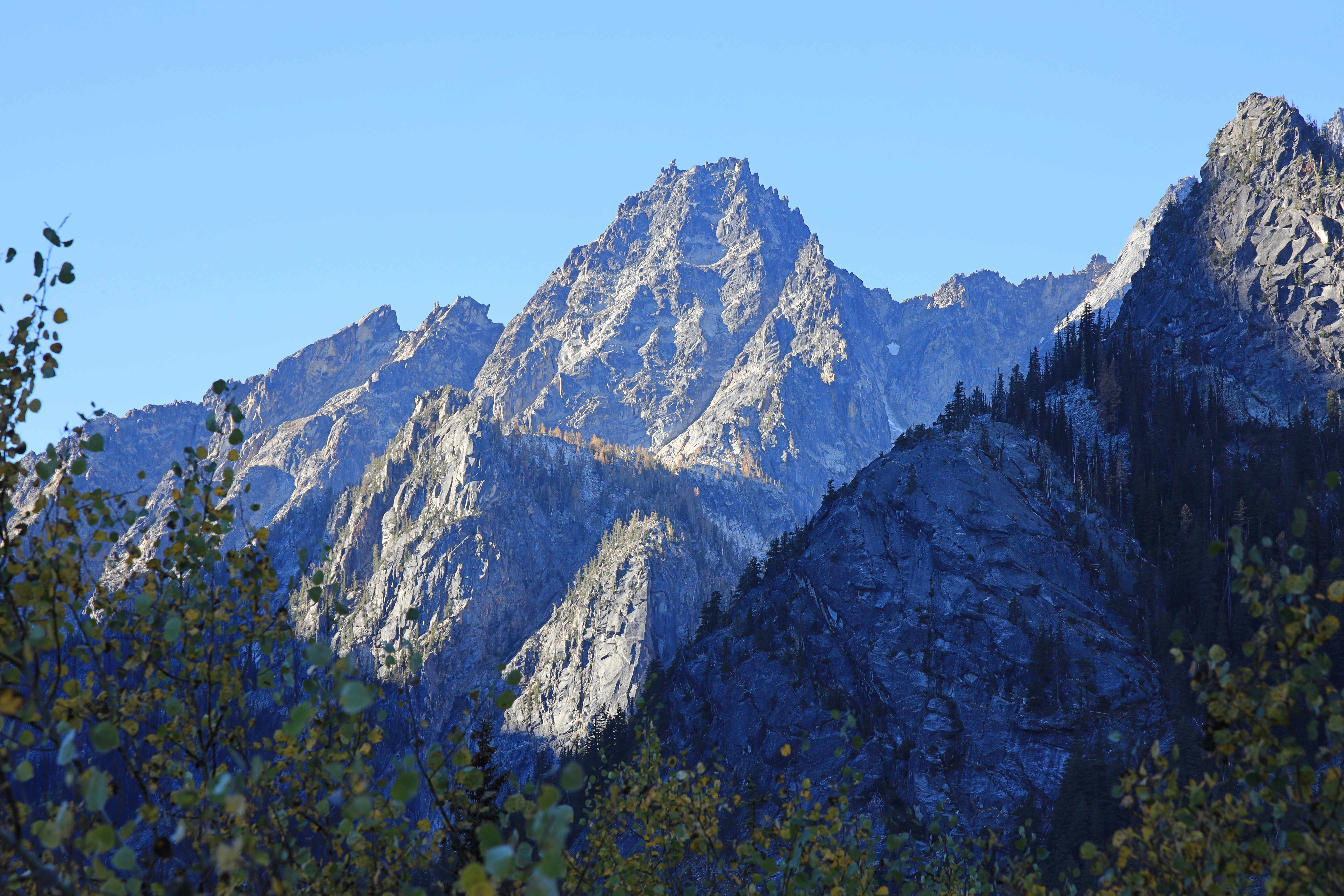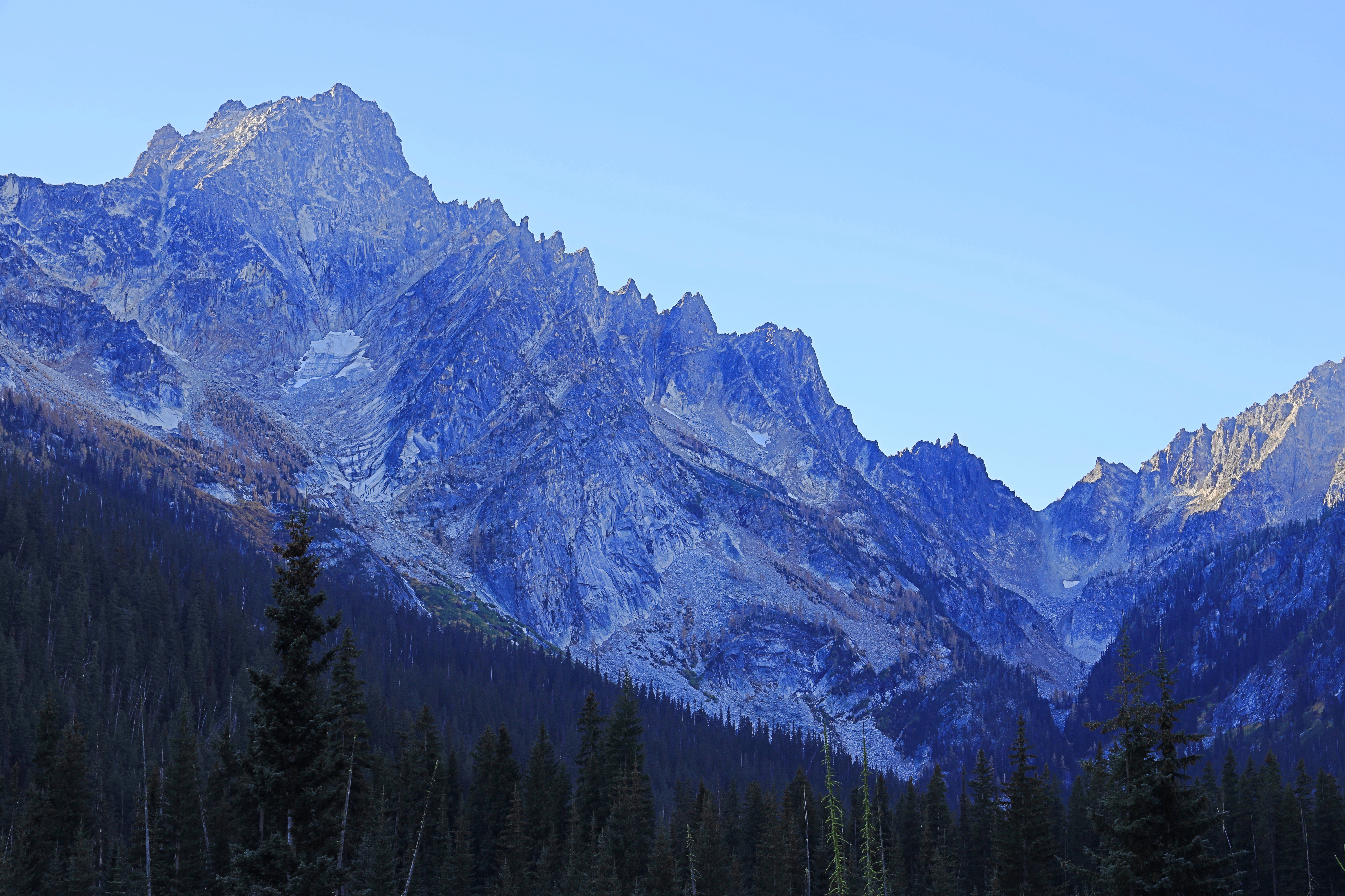 Colchuck Lake와 갈림길을 지나 조금 더 오르면 '맛보기 전망'이 열립니다. Mount Stuart (2,870m), Sherpa Peak, Dragontail Peak 등 이 근처 산들이 어마 무지한 것은 유명하고, 가끔 여름에도 눈이 오는 추운 곳입니다.
