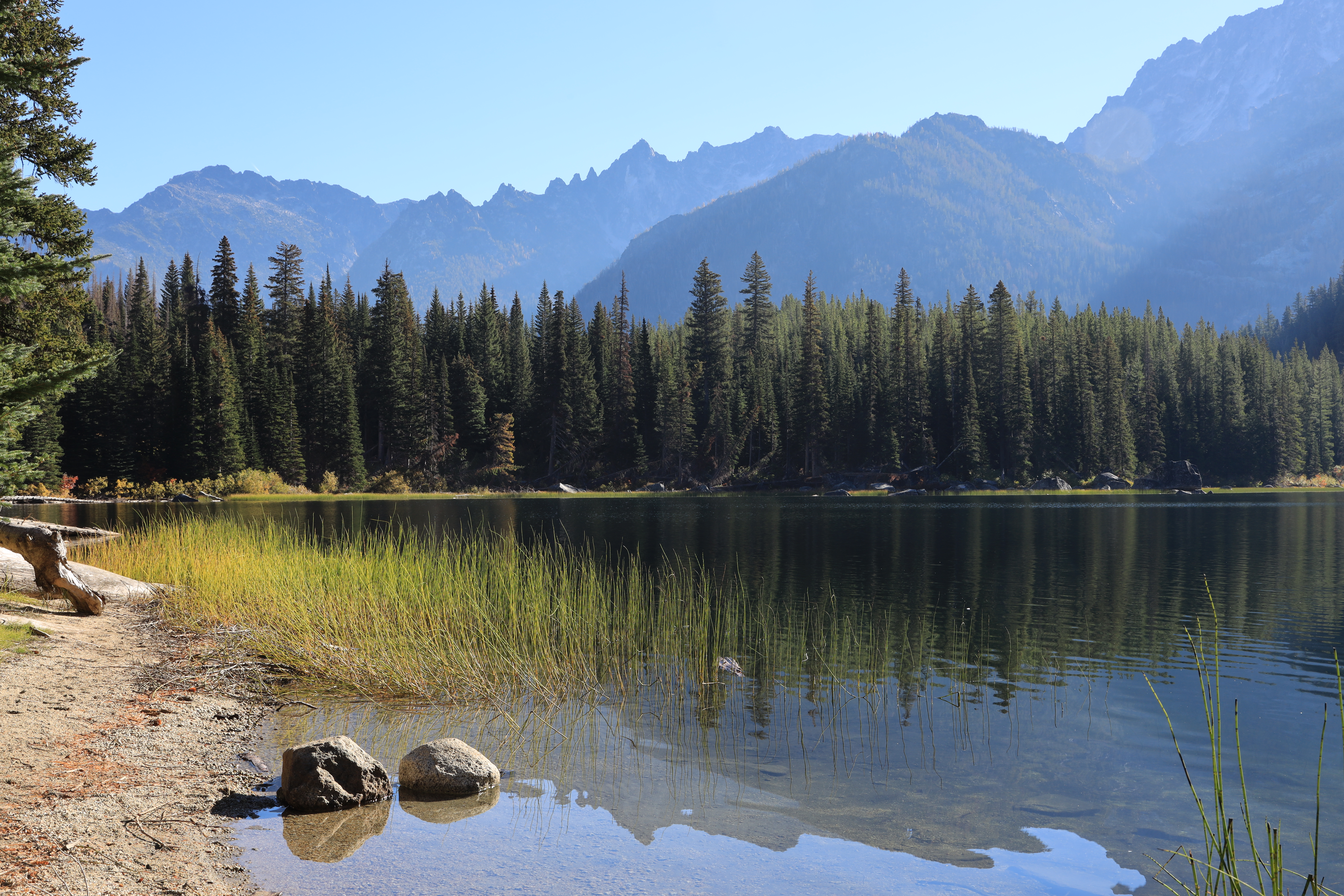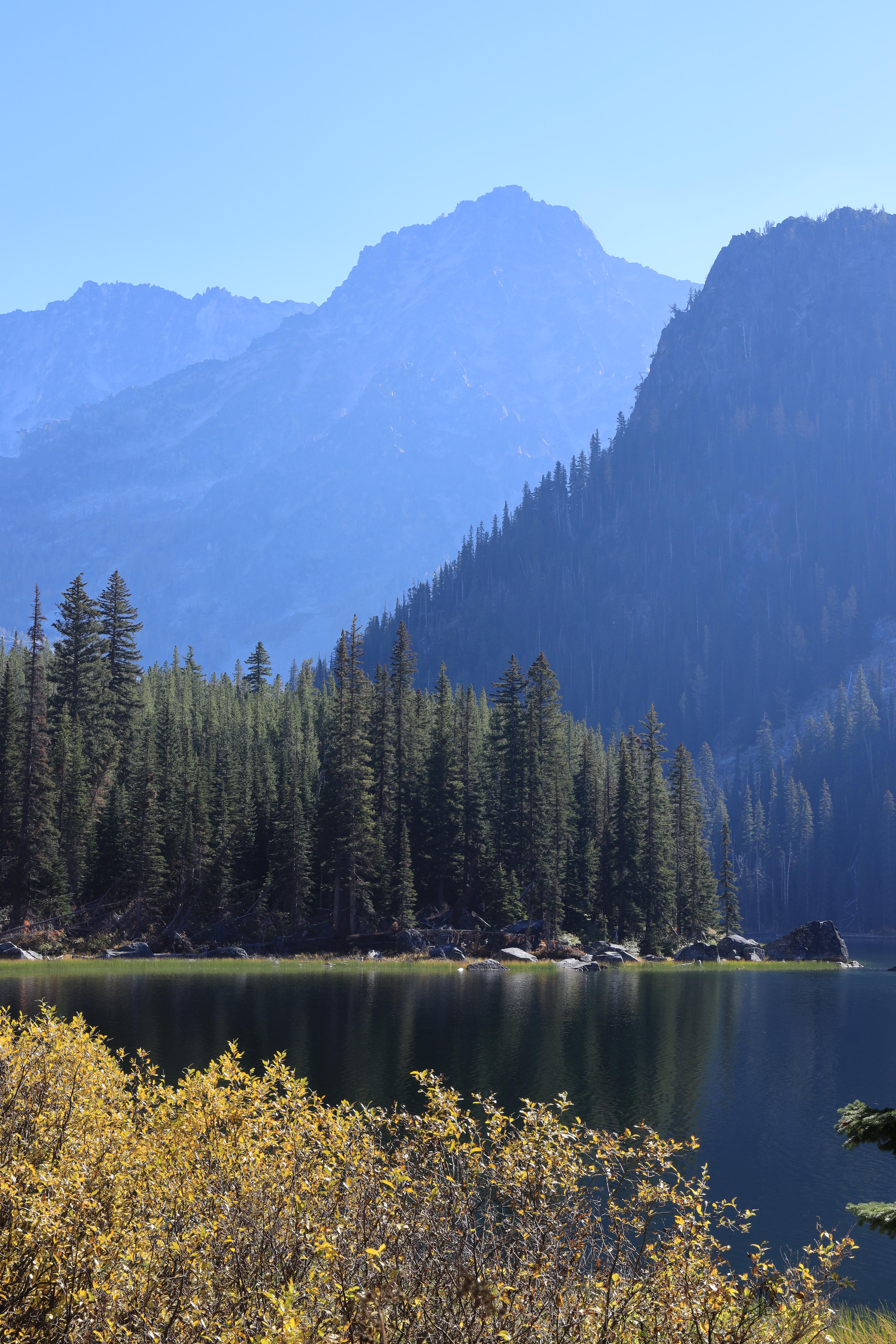 아침 7시쯤 등산로 입구에 도착하니 50여 대가 주차되어 있습니다. 아직 해도 뜨지 않았는데 (서머타임으로 실제 시간 6시) 별일입니다. 아마 The Enchantments에 야영객들이 몰렸나 봅니다. 소나무 단풍이 노랗게 물들어 지금이 The Enchantments 산행하기 딱 좋을 때 같습니다. (그래도 그렇지, 여기가 이렇게 붐비는 곳이 아니었는데 SNS에 소문이 났나 보네요.)