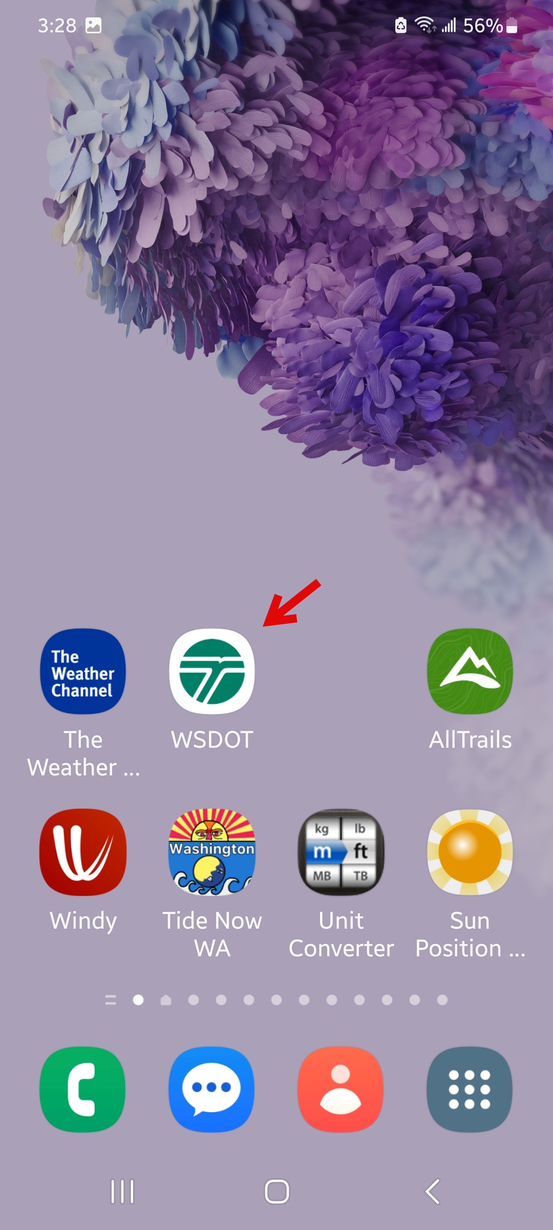 전화기에 WSDOT 앱을 설치하고 실행시킵니다.