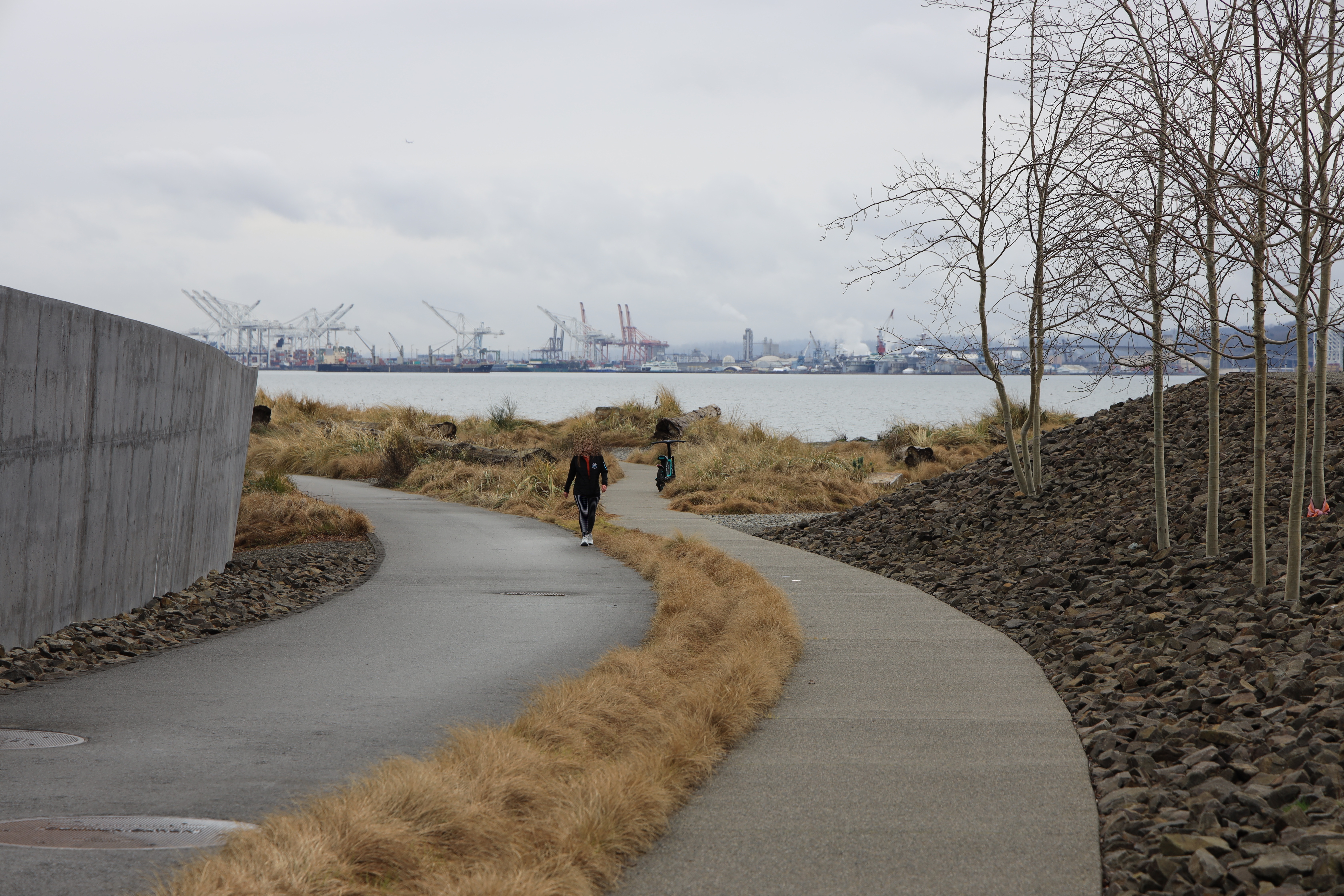 91번 부두 (Pier 91) 주변을 돌아가는 길입니다. 오리가 부지런히 저를 따라오네요.