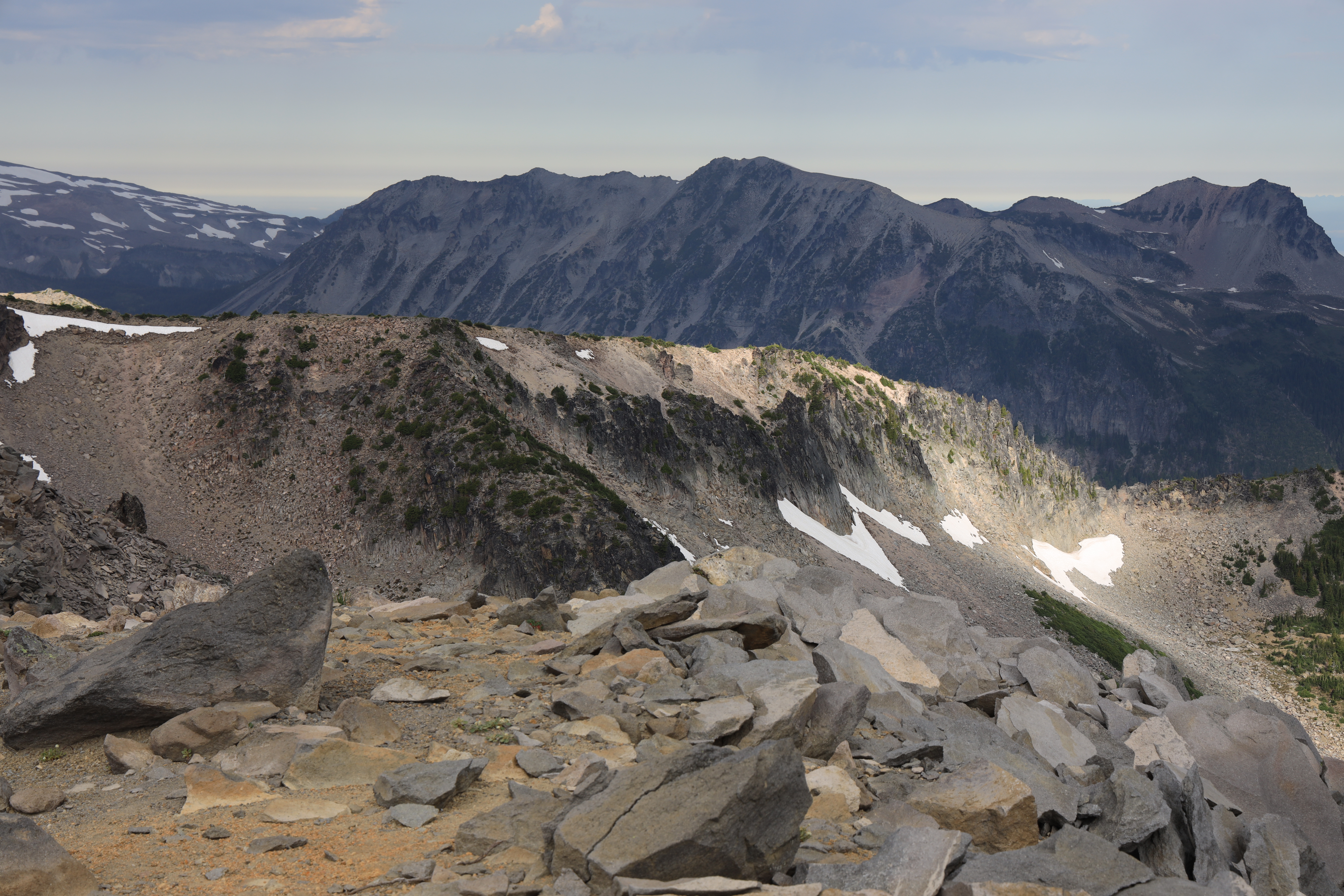 첫 번째 봉우리에서 보는 전망입니다. 오른쪽 봉우리가 Fremont Lookout이고, 왼쪽은 Skyscraper Mountain입니다.