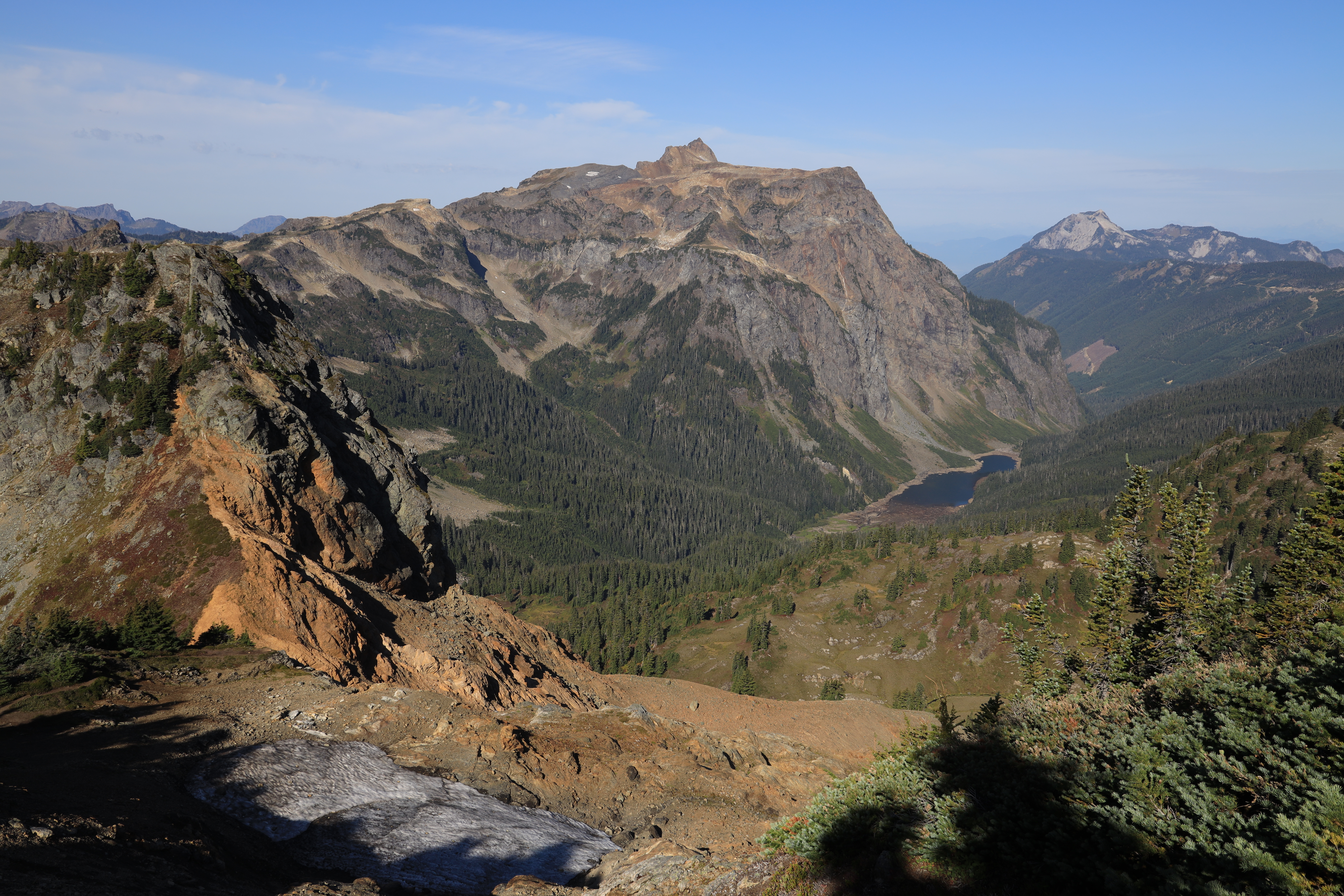 중간 전망지점에서 보는 Tomyhoi Peak입니다. 이 방향으로 조금 더 가면 캐나다입니다.