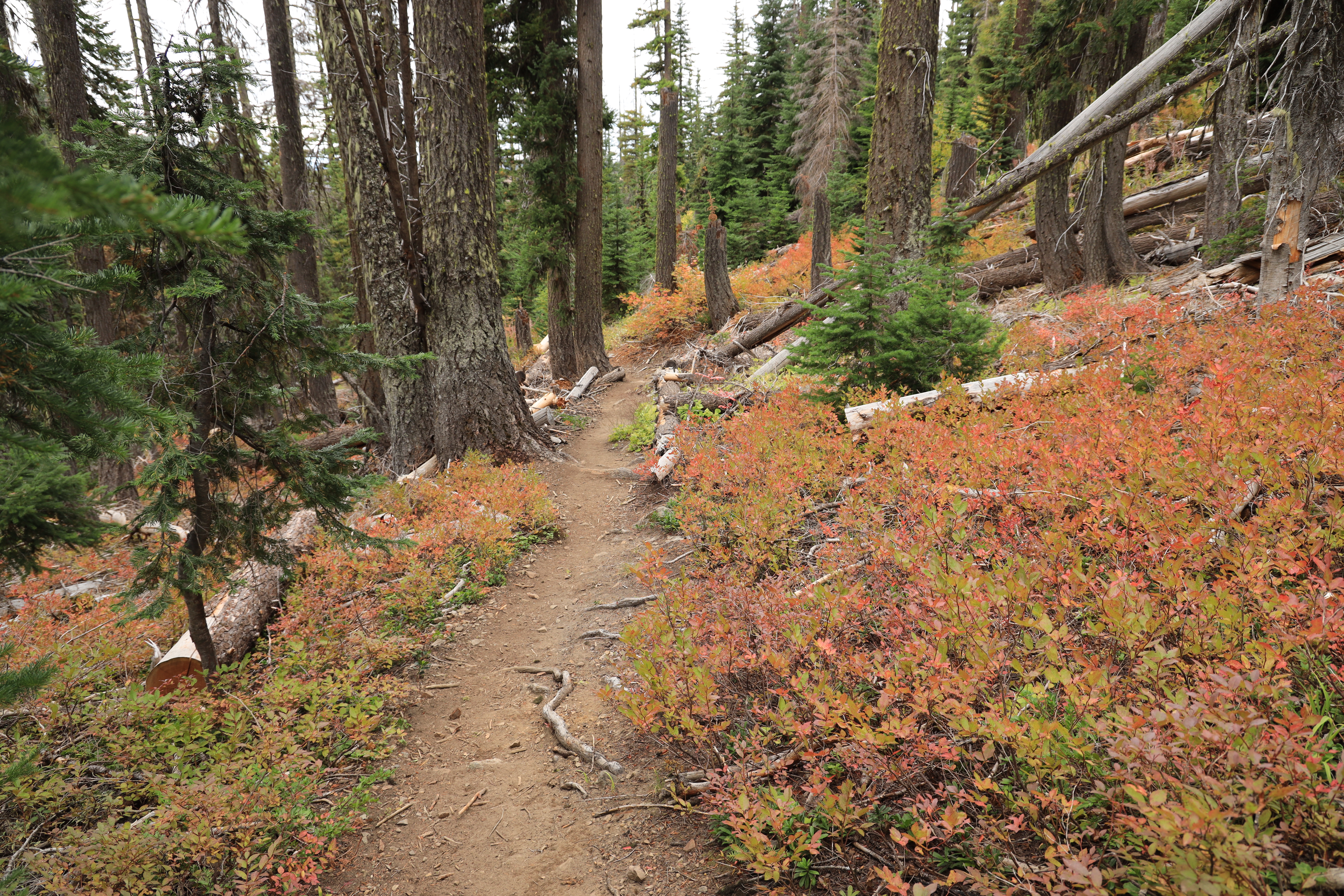 능선 위에 이정표 없는 갈림길에서 왼쪽 급경사로 Earl Peak을 오르는데, 전망이 시원하게 열리고 '관리되지 않는 등산로'치고는 상태가 많이 나쁘지 않습니다. 그러나, 급경사에 날카로운 깨진 돌이 깔려있고, 미끄러워서 지팡이를 사용하는 것이 좋겠습니다.