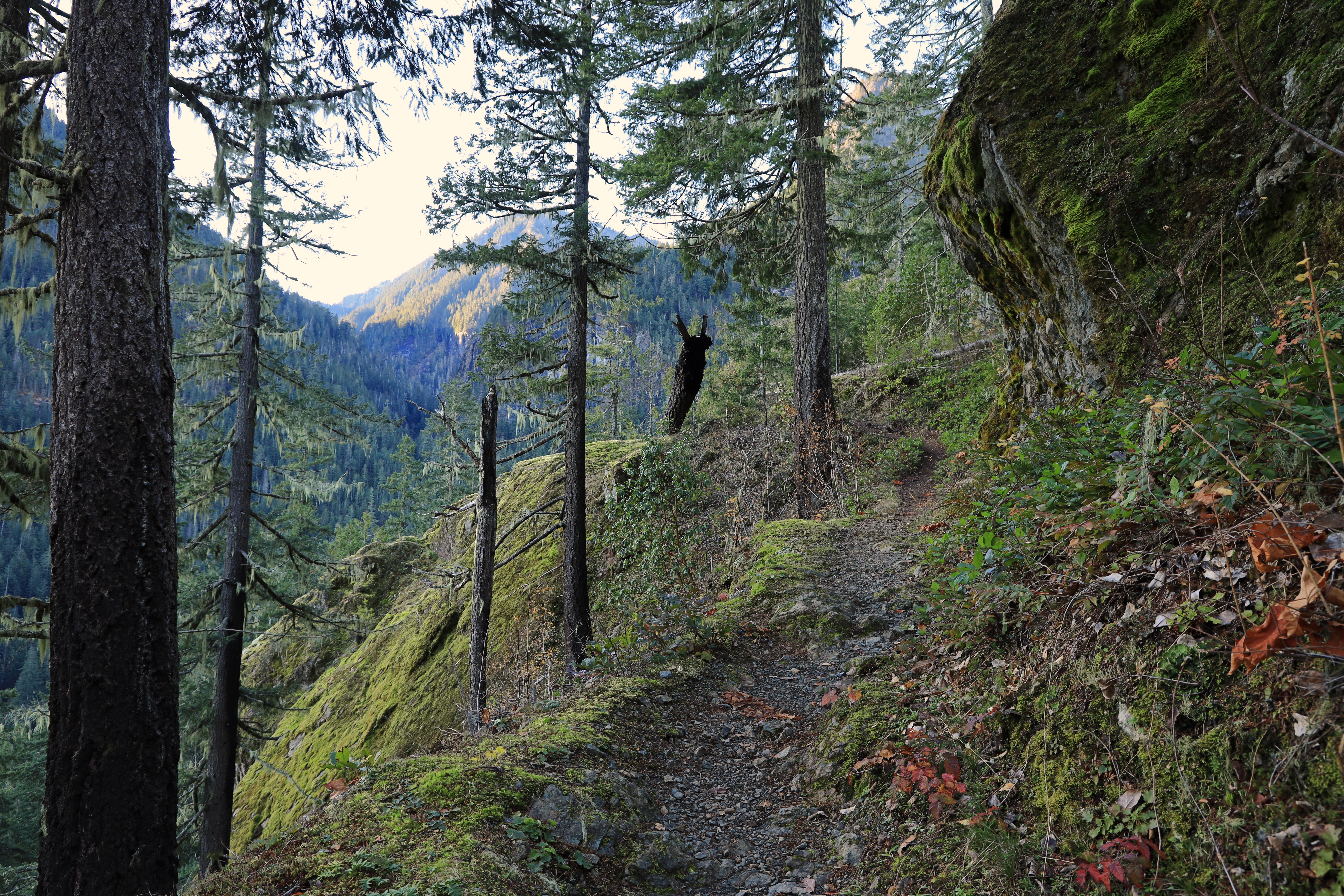 산행은 2 마일 캠프를 지나고, Big Hump를 넘어 5 마일 캠프까지 (왕복 9.5 마일, 15.3 Km) 갔습니다. 등산로는 그 뒤로 Lacrosse Pass까지 (왕복 40.5 마일) 계속됩니다. 여름철에는 에드먼드에서 페리를 타고 가면 되는데, 요즘 (11월 말)은 해가 짧고 첫 배 출발 시간이 늦어, 올림피아로 돌아서 육로로 갔습니다.