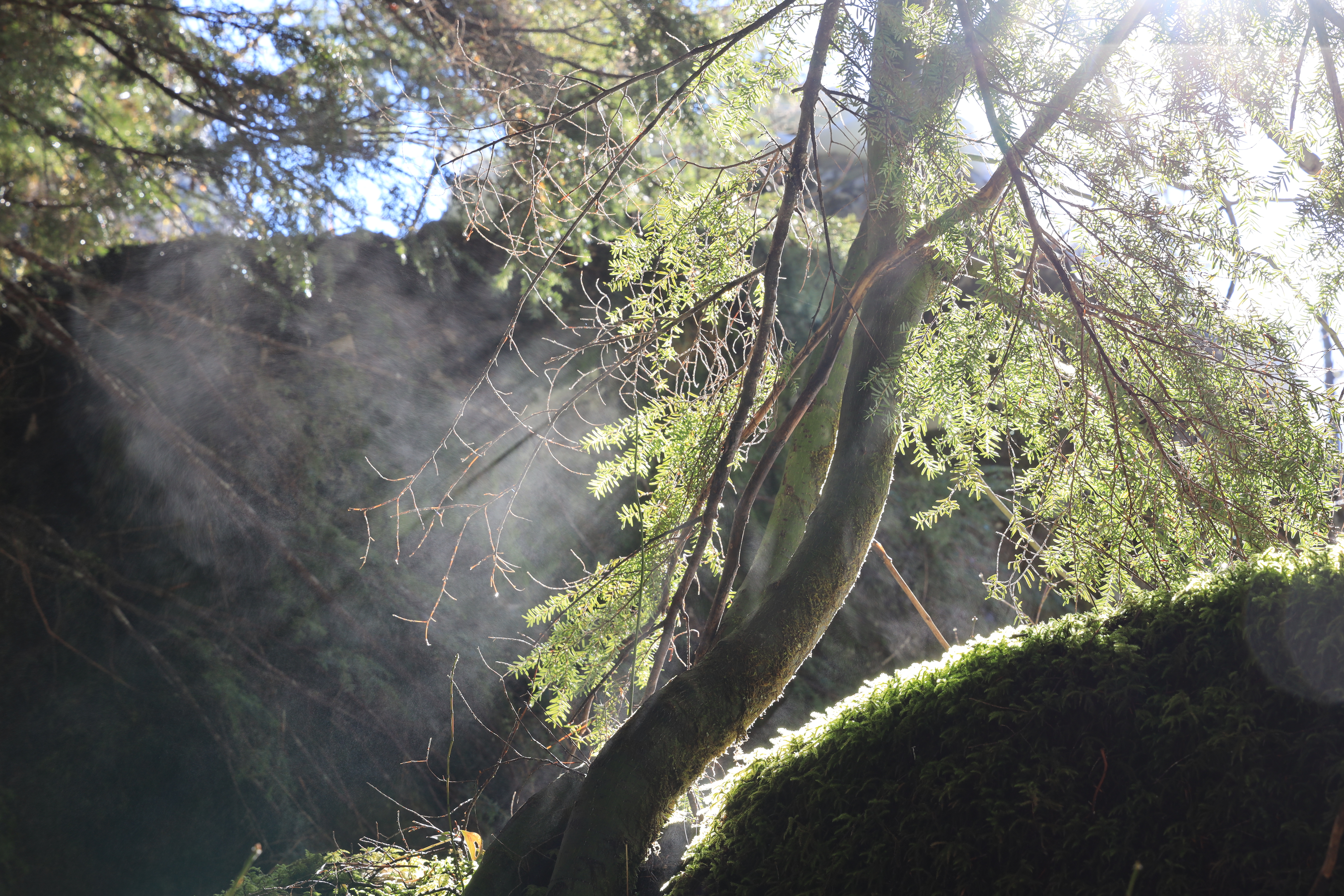 해가 높이 오르면서 숲에서 안개가 피어오릅니다.