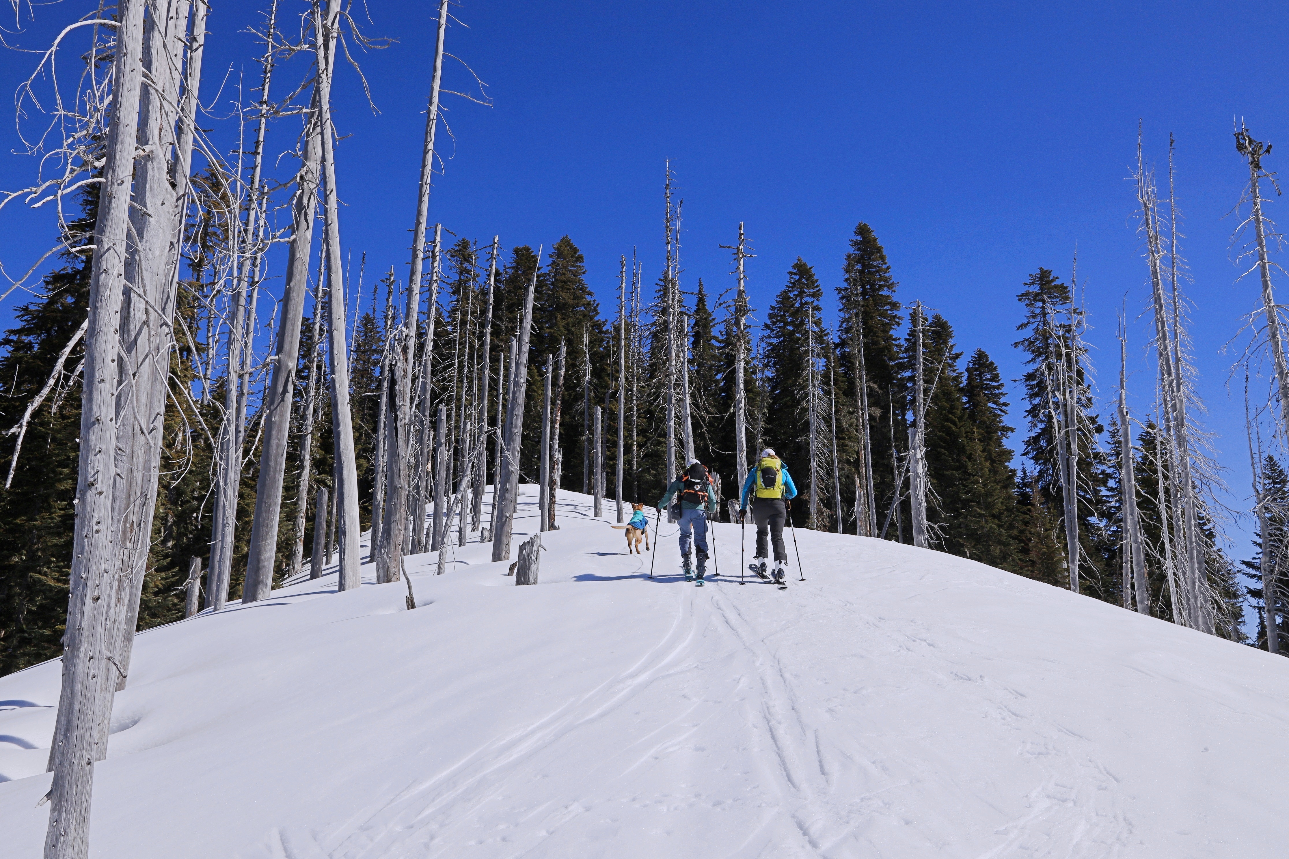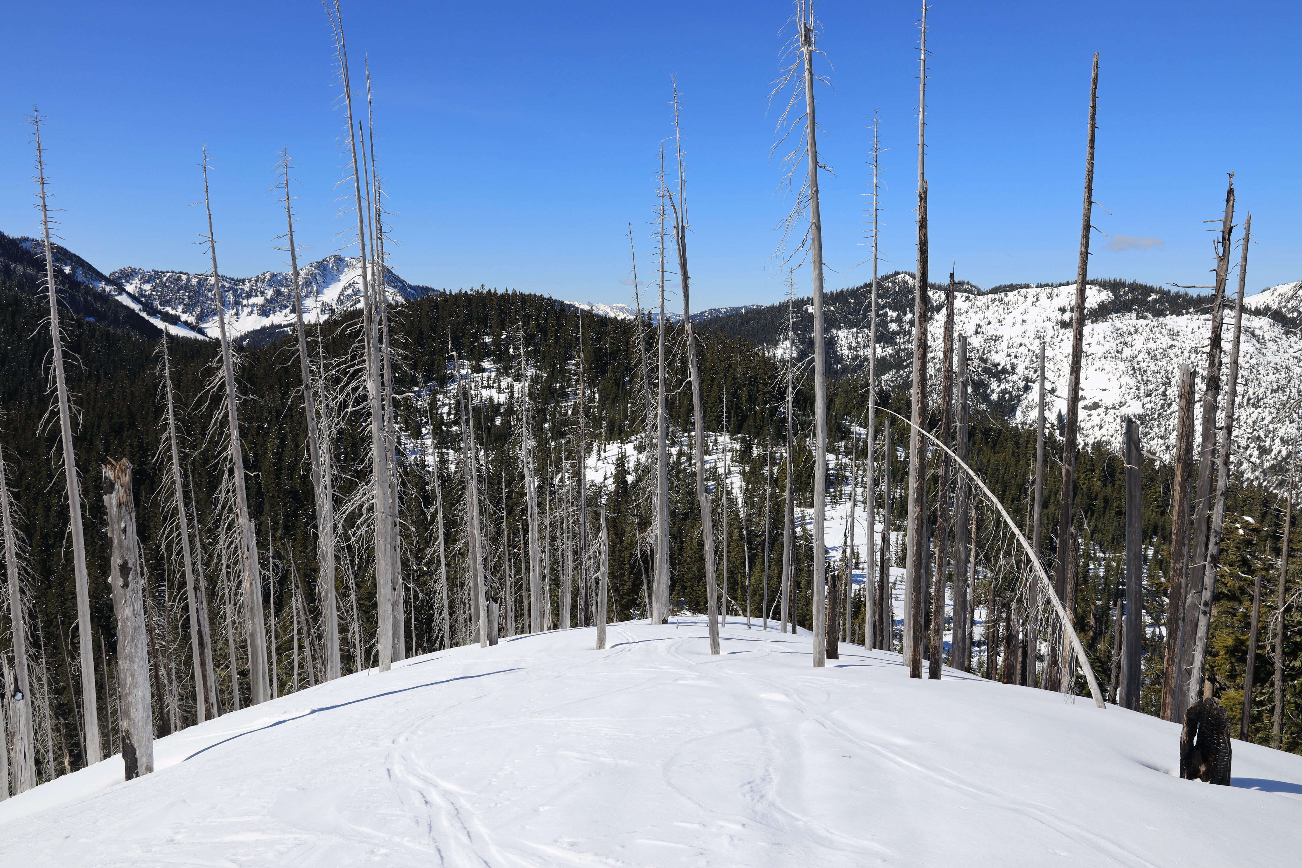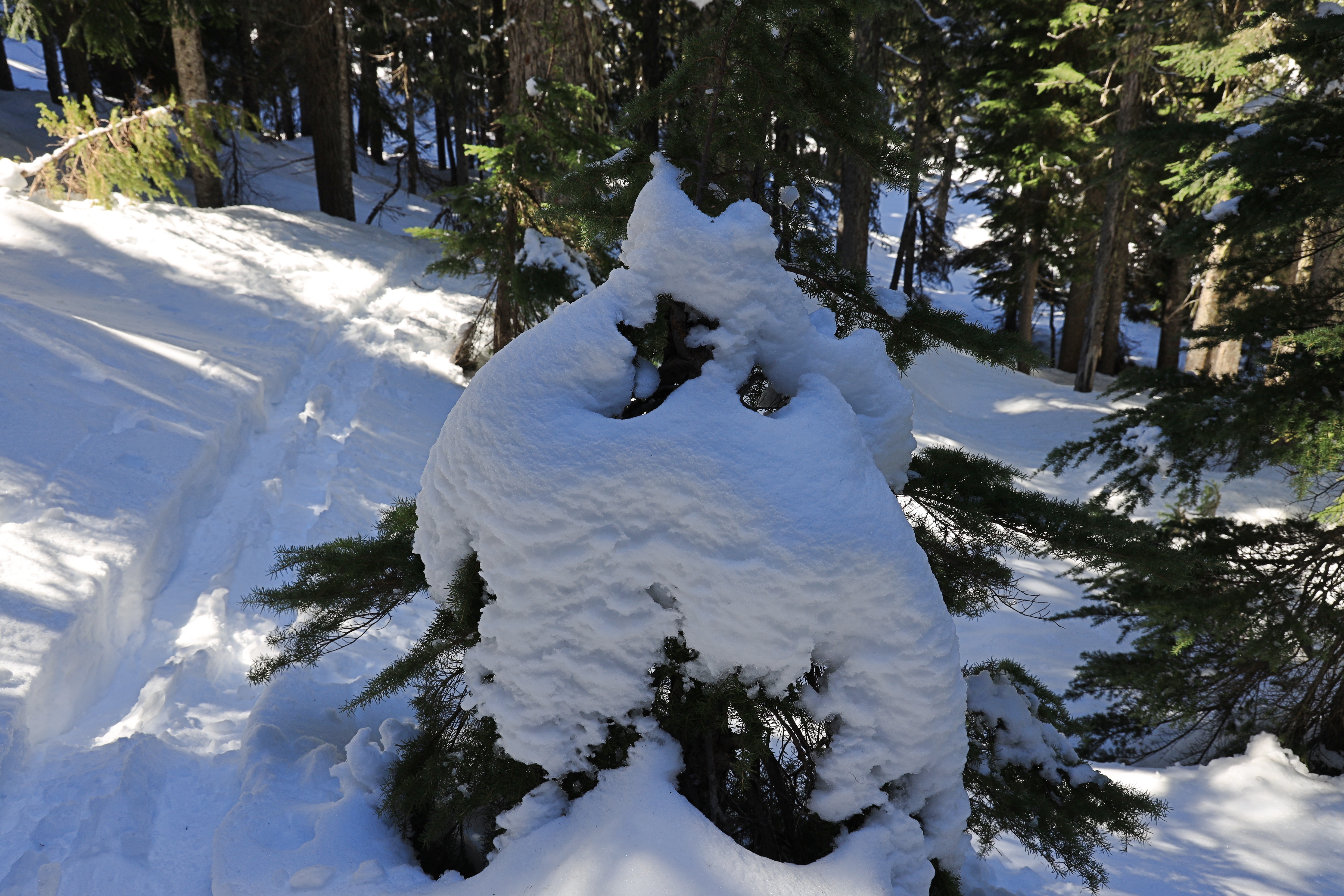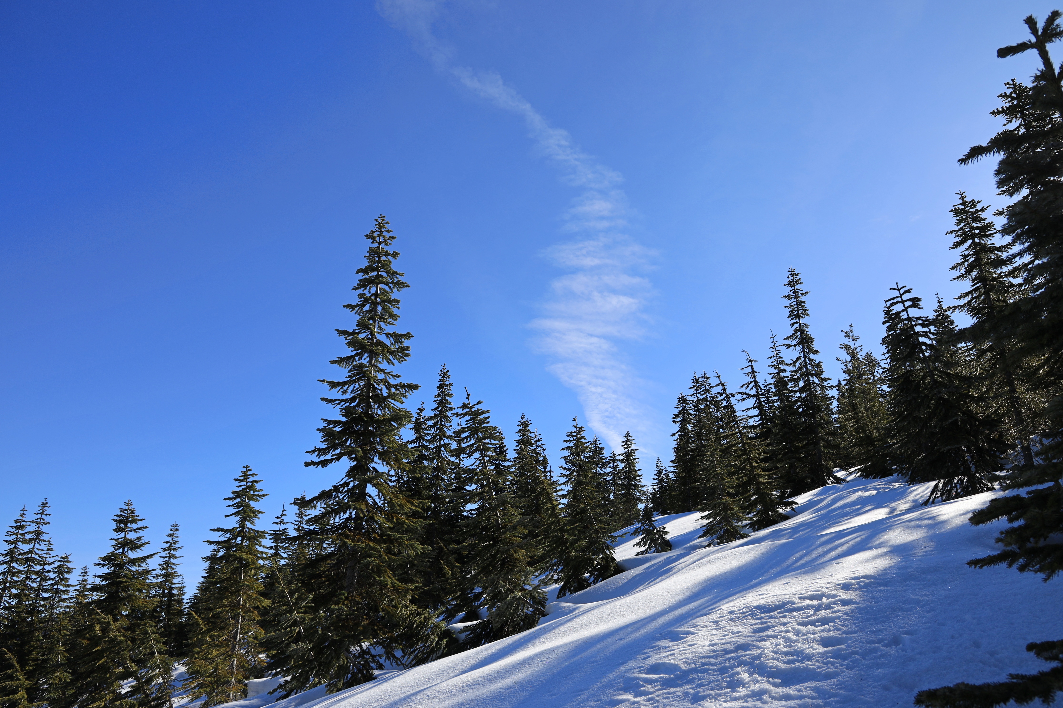 산을 오르는 경사는 눈길산행이나 산악스키를 타기 좋은 정도이고, 눈사태 위험도 비교적 낮은 곳 같습니다.