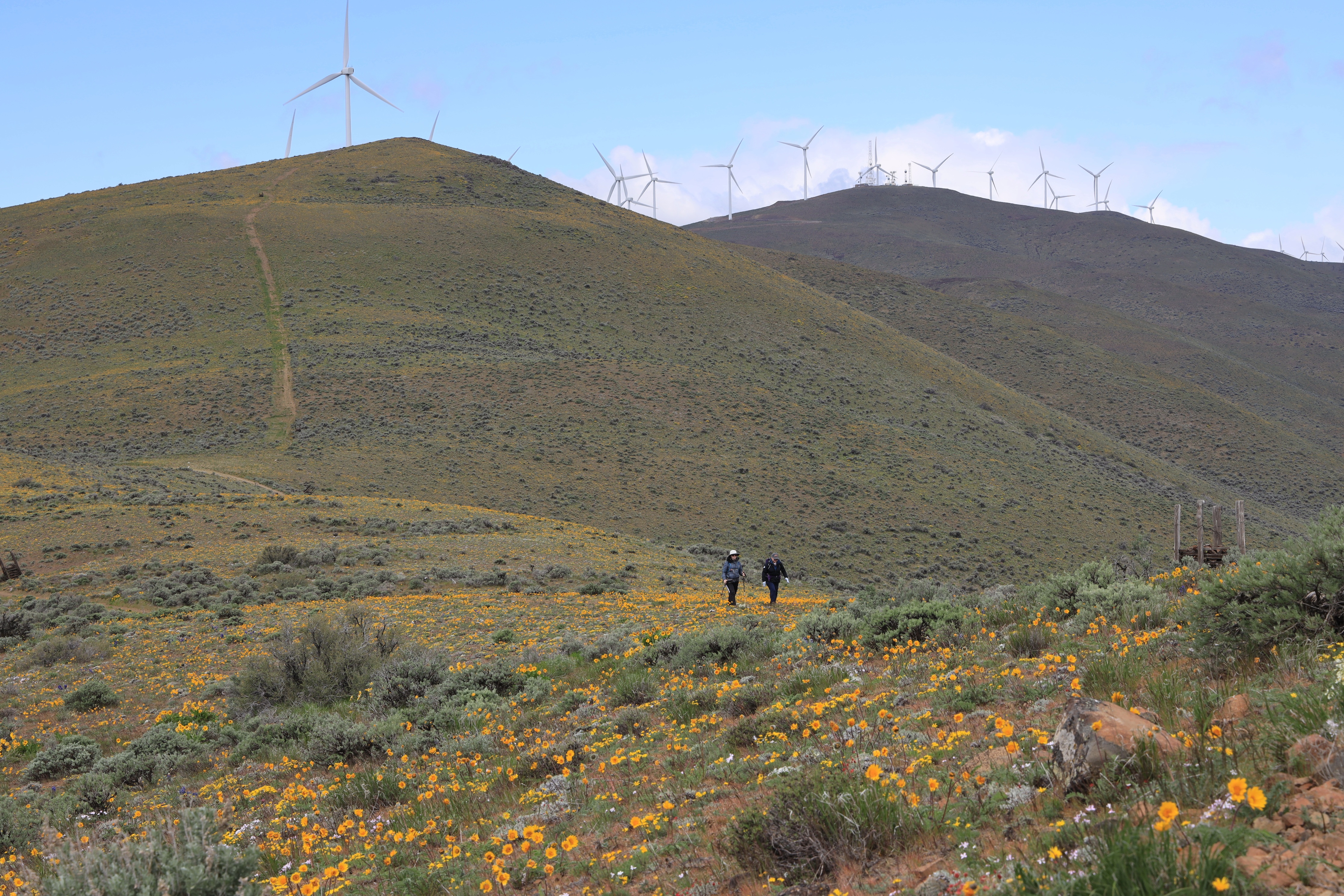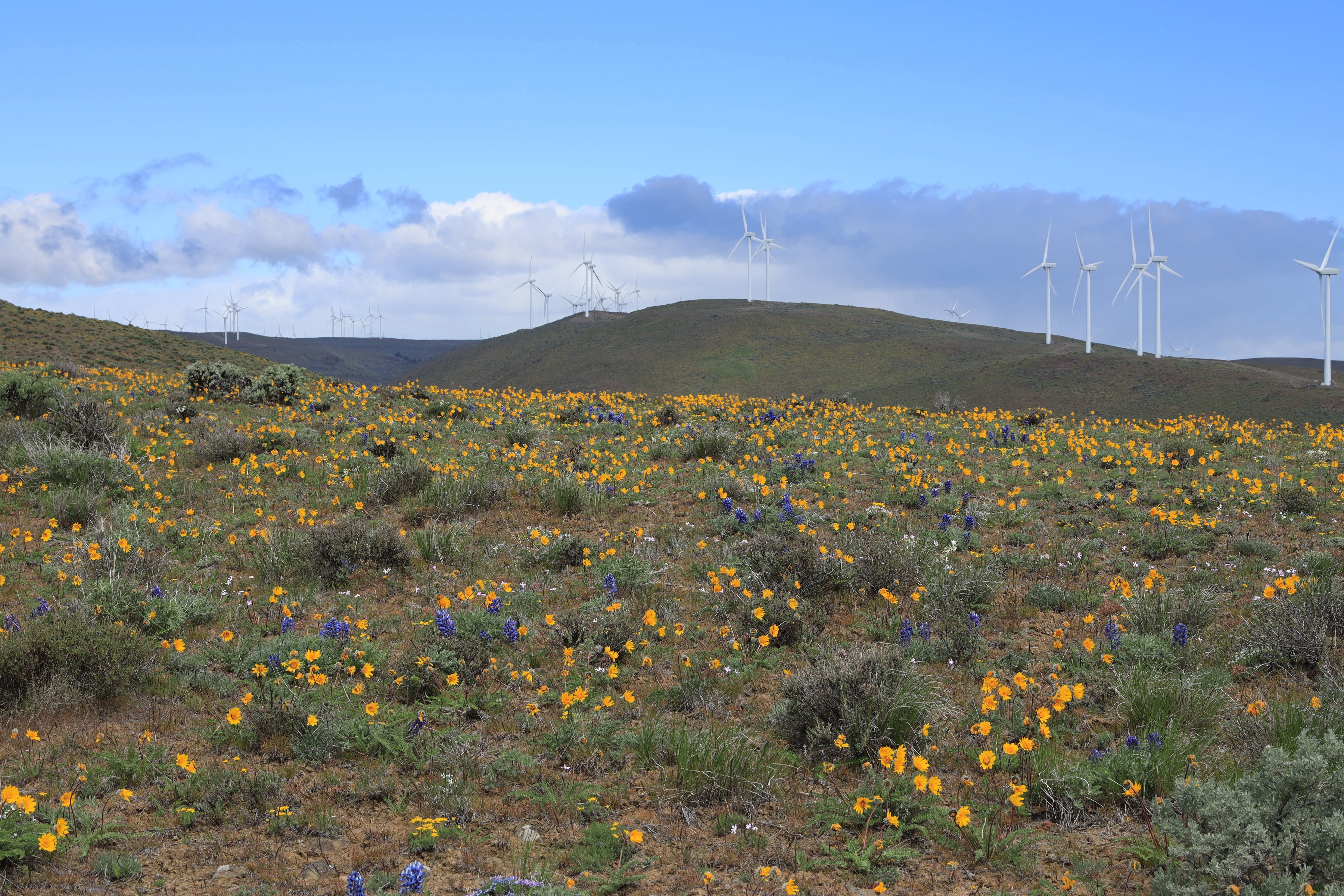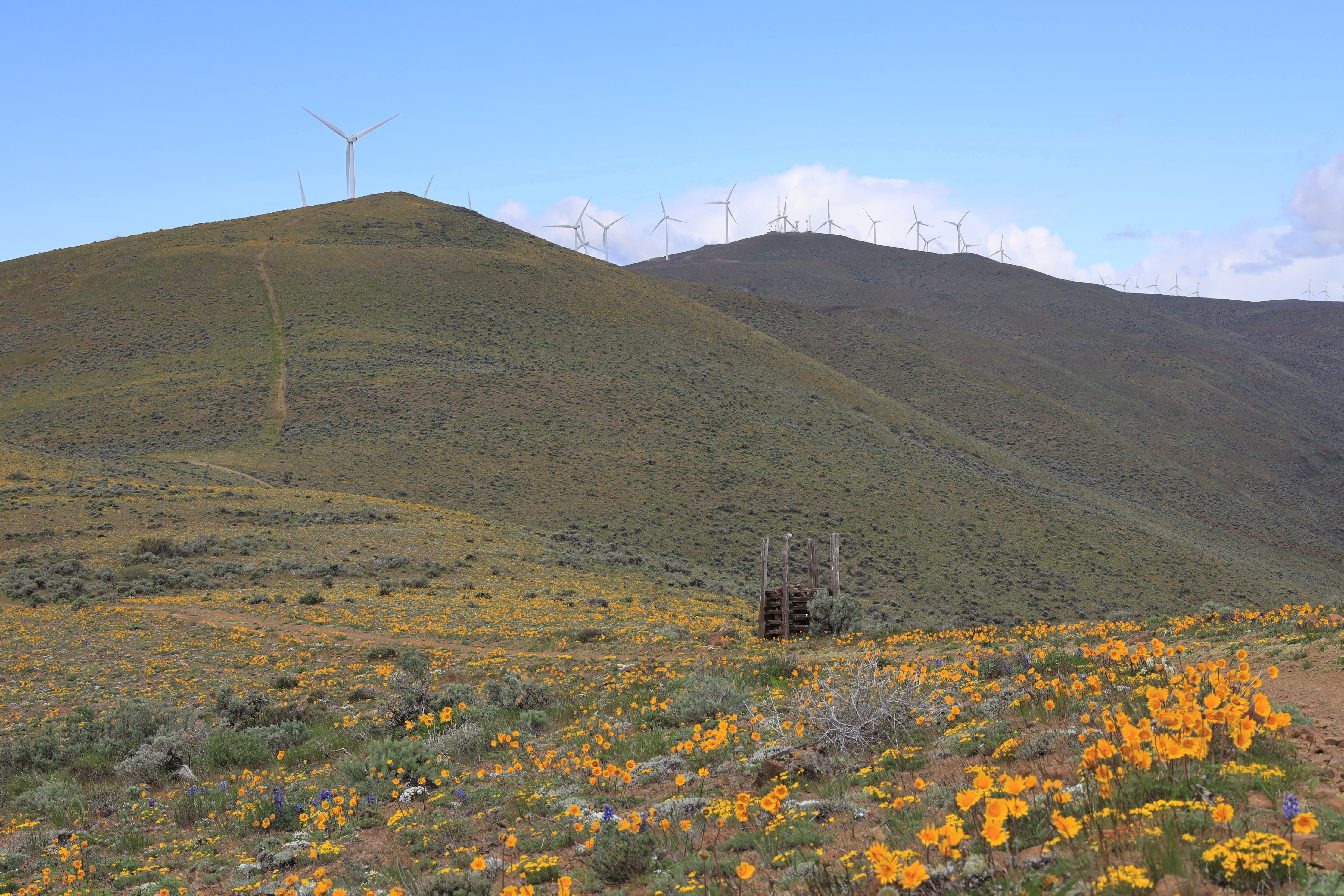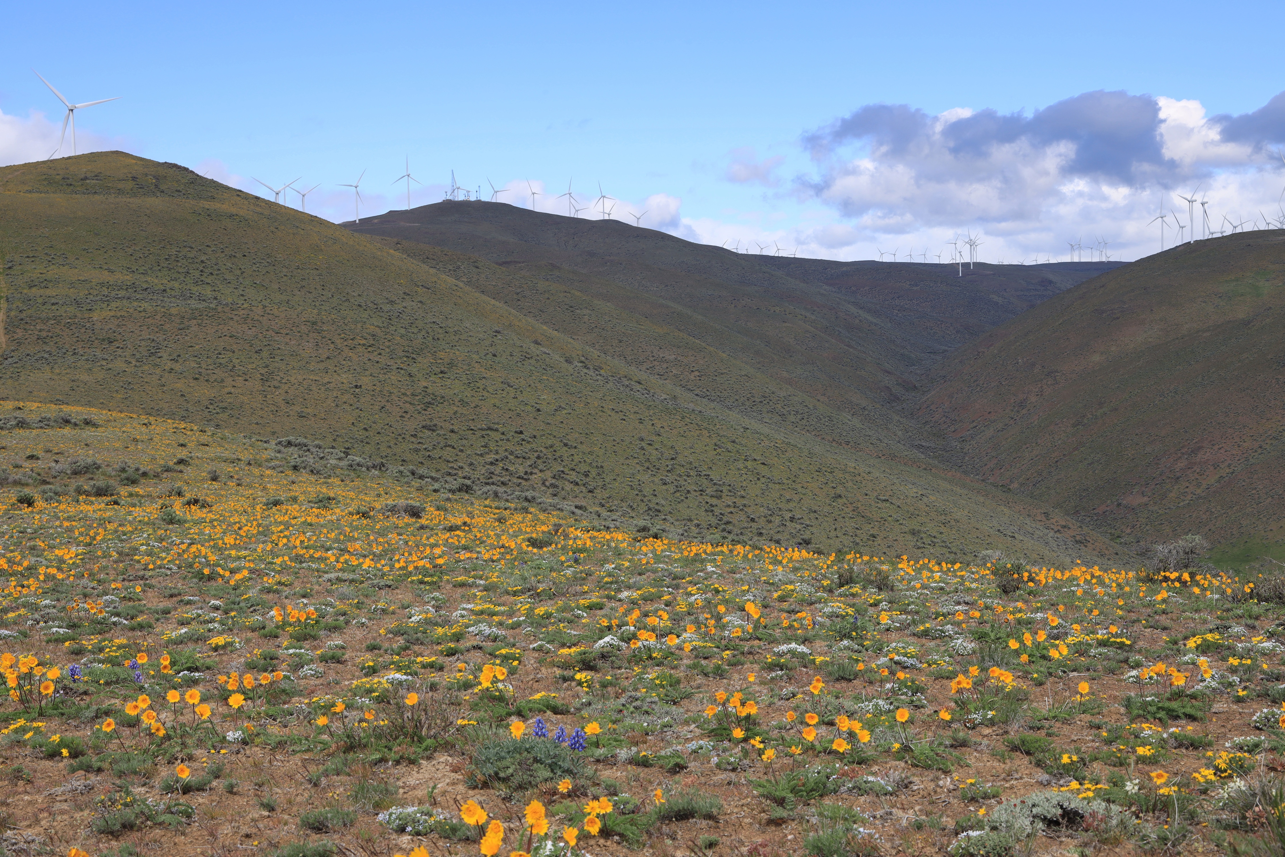 제철 만난 사막의 야생화가 너른 벌판에 가득 피었습니다. 워싱턴 주 사막에는 보통 이때쯤 (4월 말 - 5월 초)이 야생화가 좋습니다. 주차장입구에 도착하니 바람이 심하게 불고, 춥네요. 배낭에서 겨울용 재킷을 꺼내 입고 일단 출발했는데, 손이 시립니다.