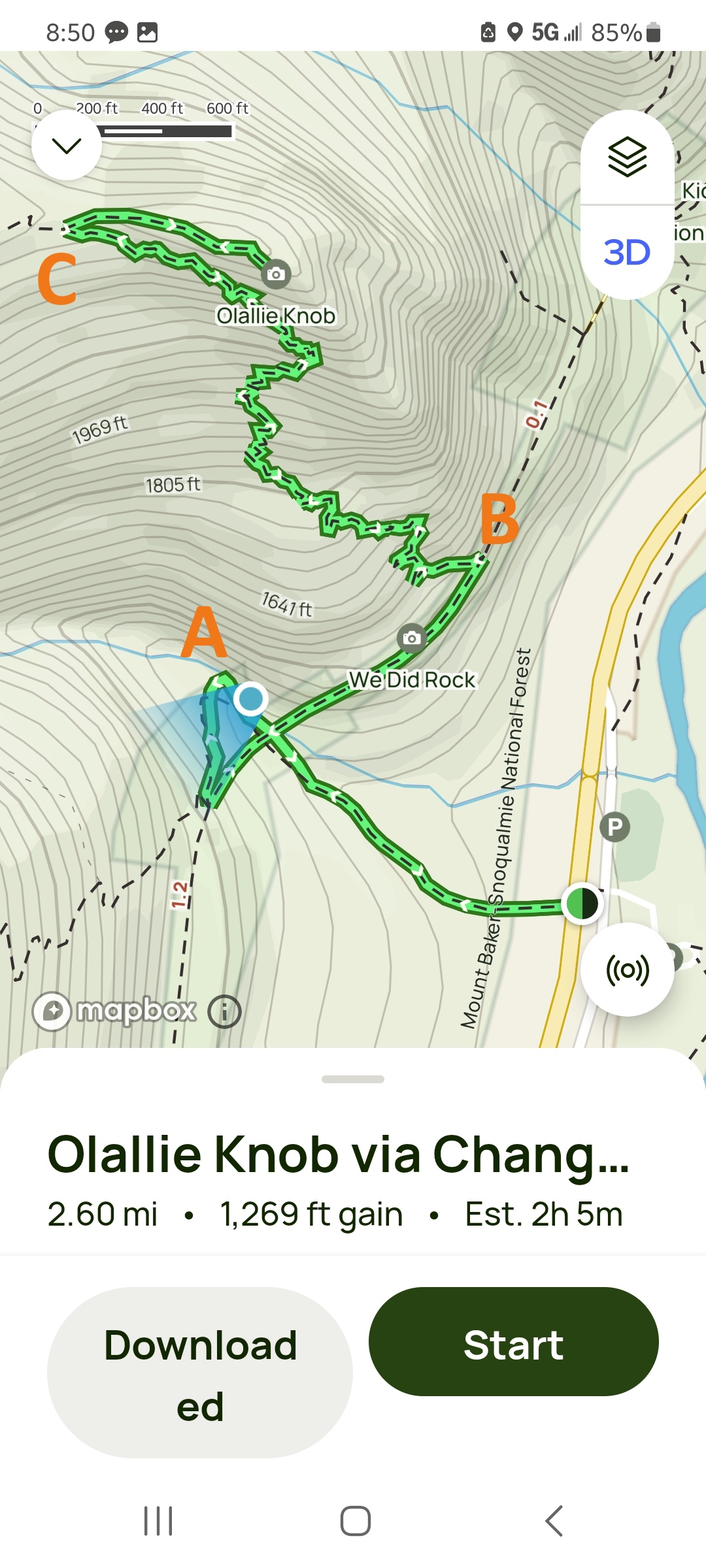 (Olallie Knob는 All Trails 앱에 있습니다.)