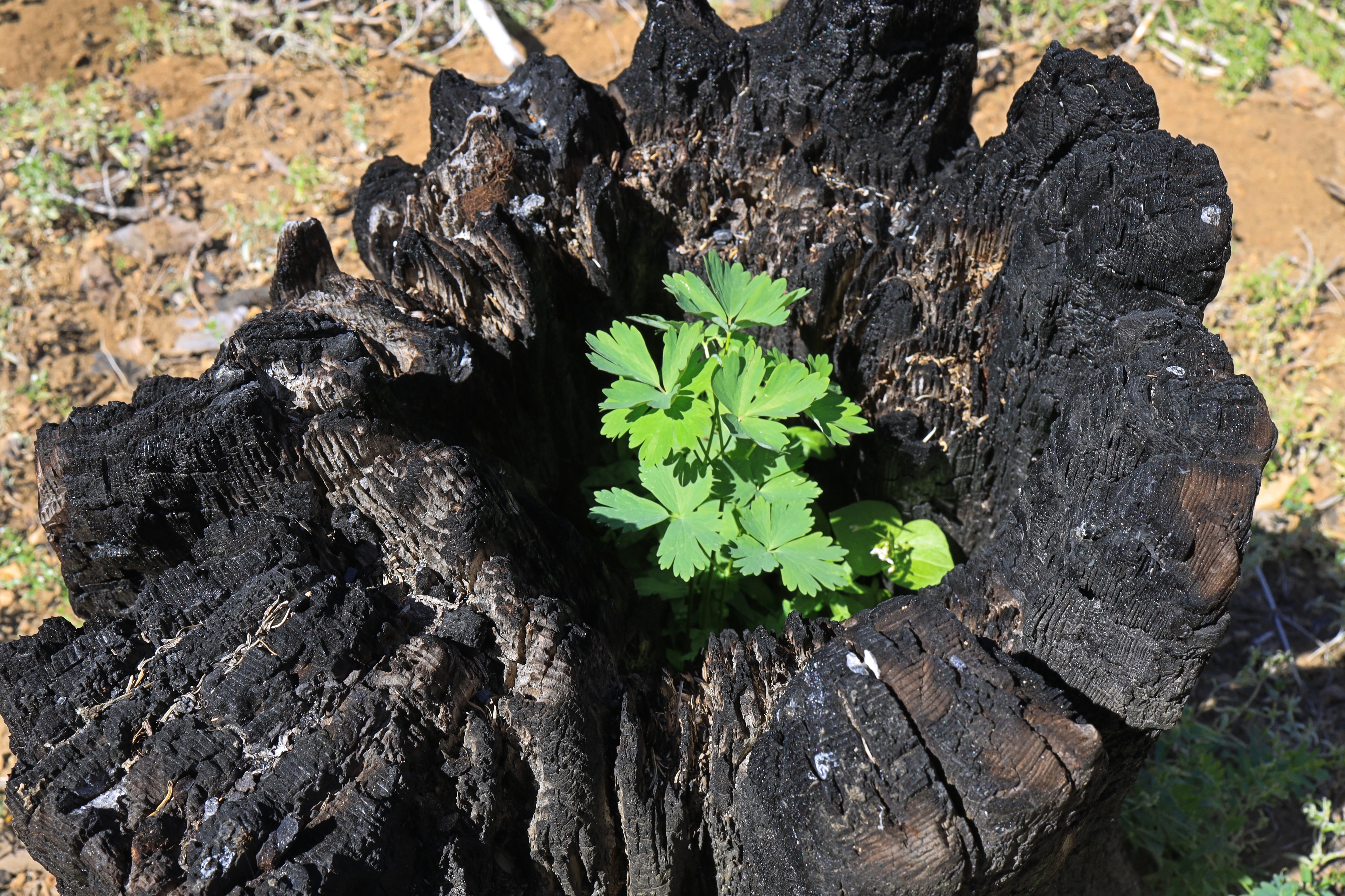 등산로 주변에는 온통 산불흔적이 남아 있습니다. 나무들이 검게 그을렸고 껍질이 벗겨져 하얗게 빛나기도 합니다.