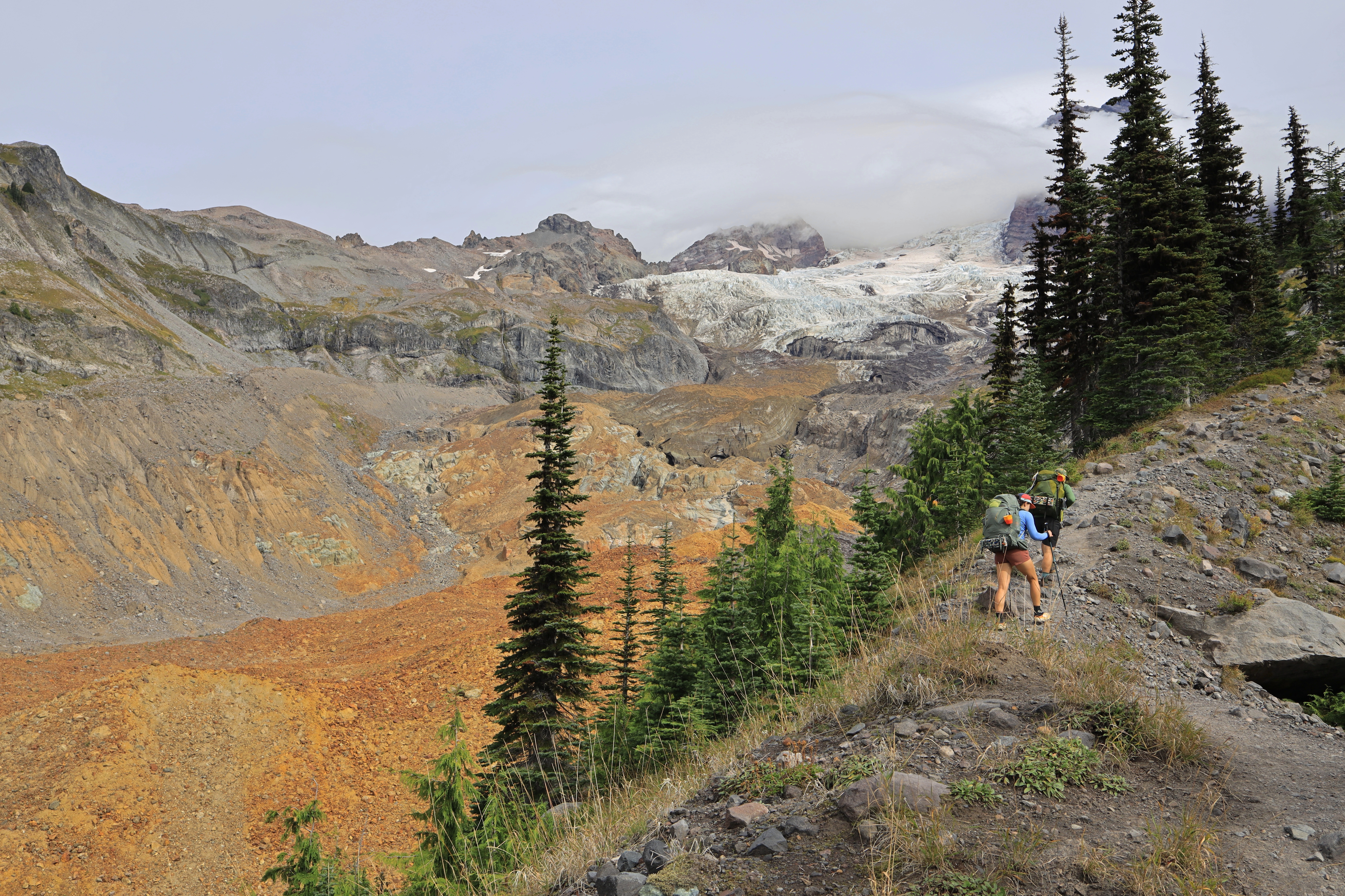 이 팀은 Wonderland Trail에 도전하는 산객 같고, 배낭을 가볍게 하고 뛰어서 구간을 통과하려나 보네요.