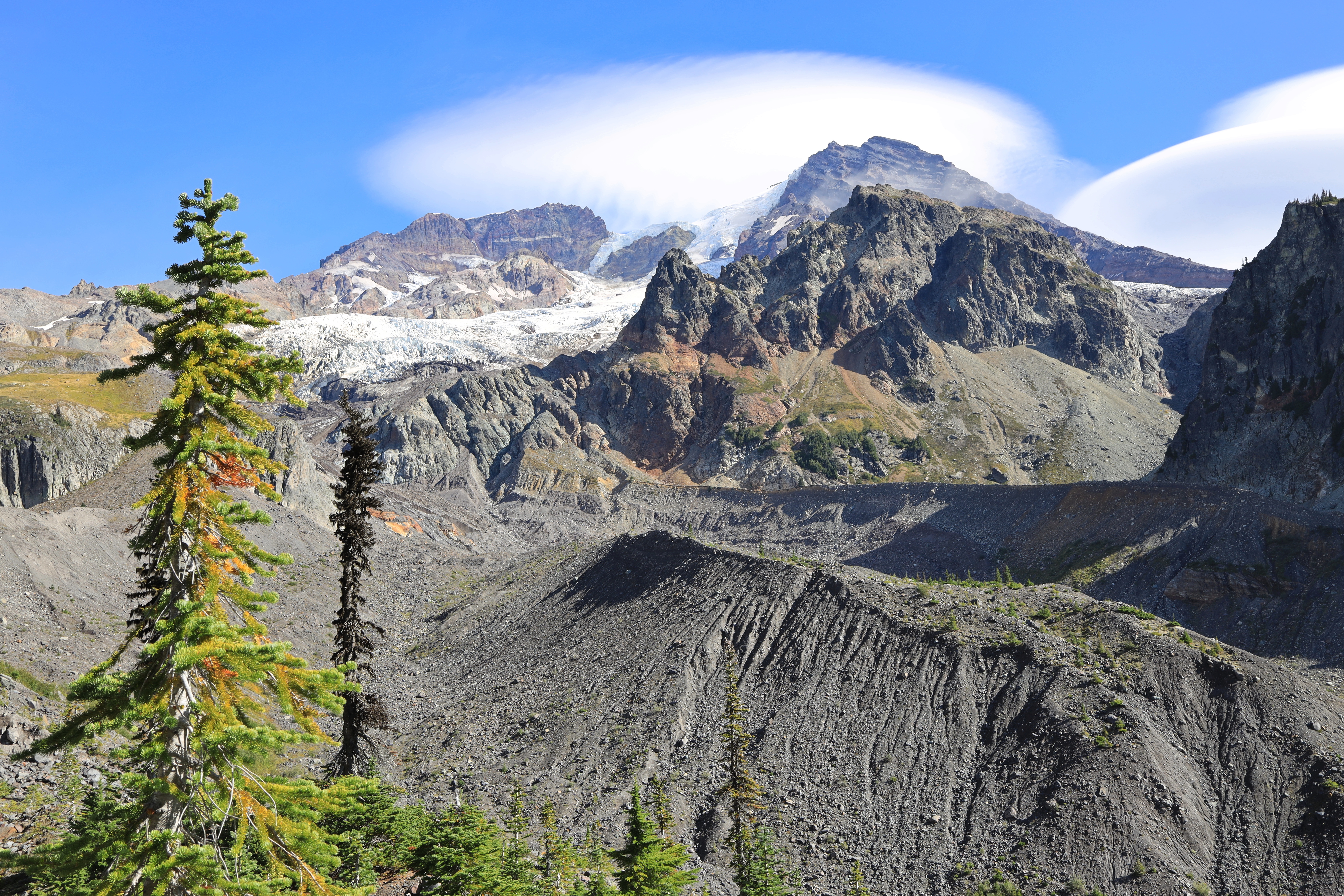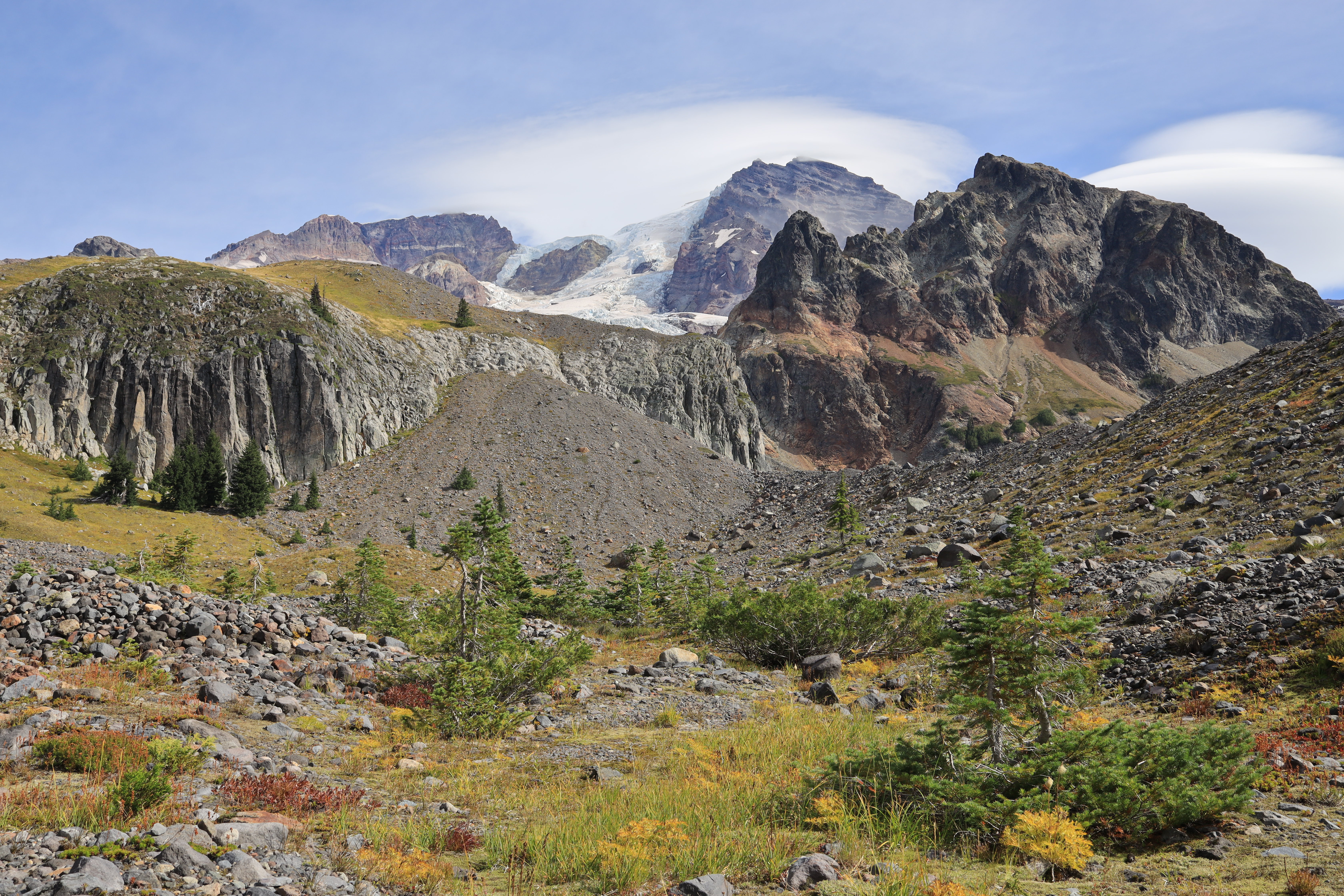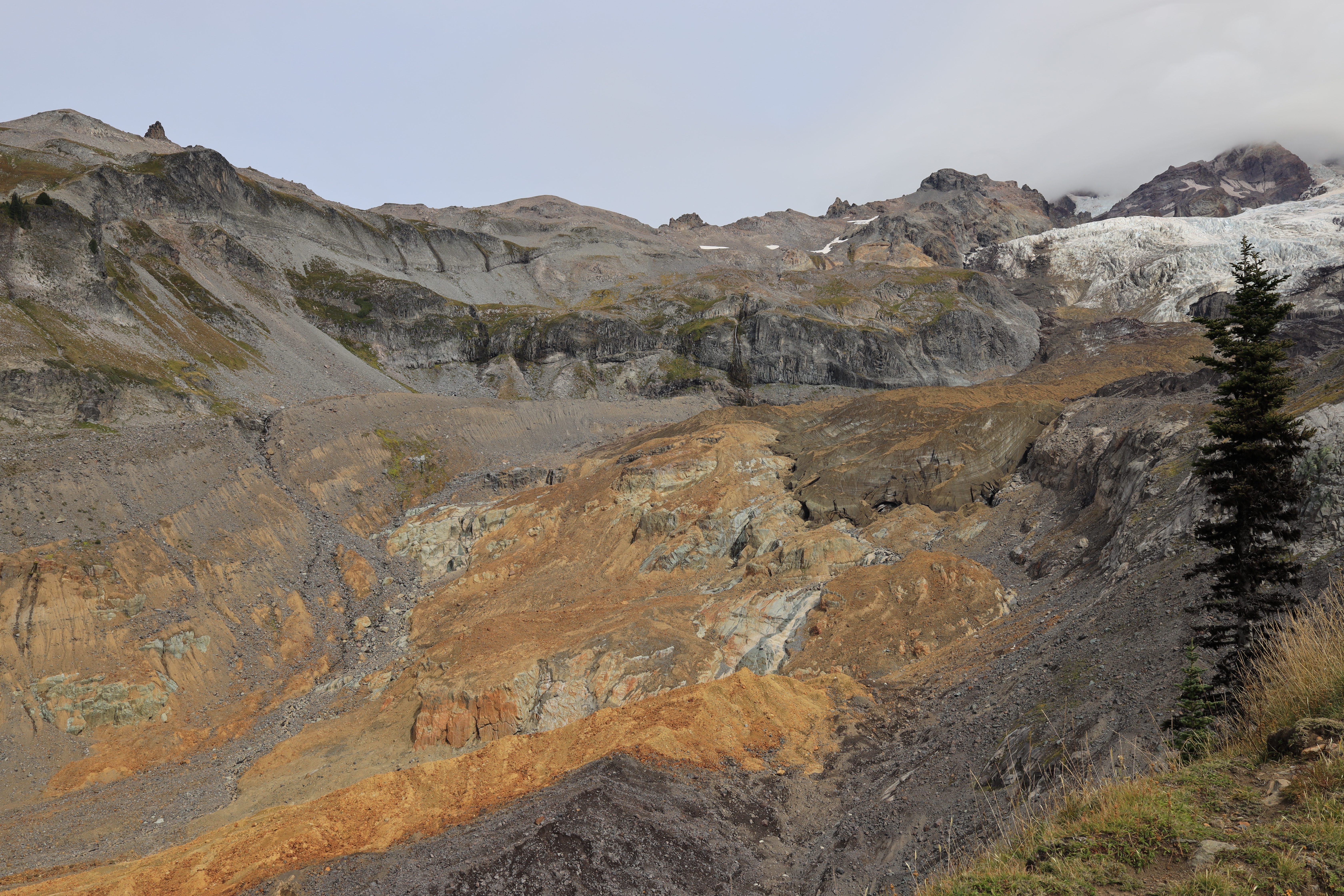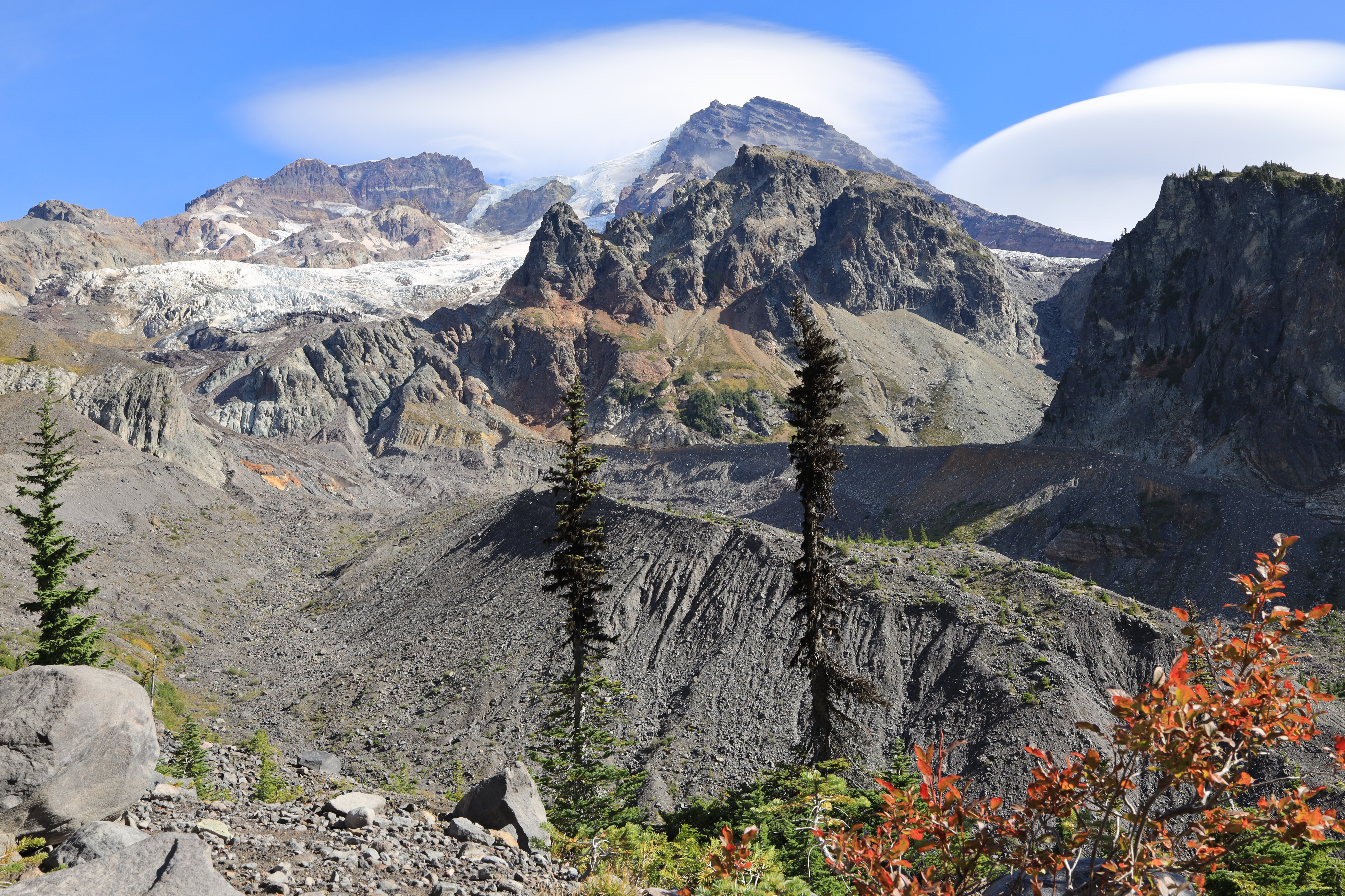 Emerald Ridge를 오르며 보는 눈산 (Mount Rainier)입니다. 남서쪽 방향에서 가까이 보는 눈산은 평소에 보던 전망과 전혀 달라 보입니다.