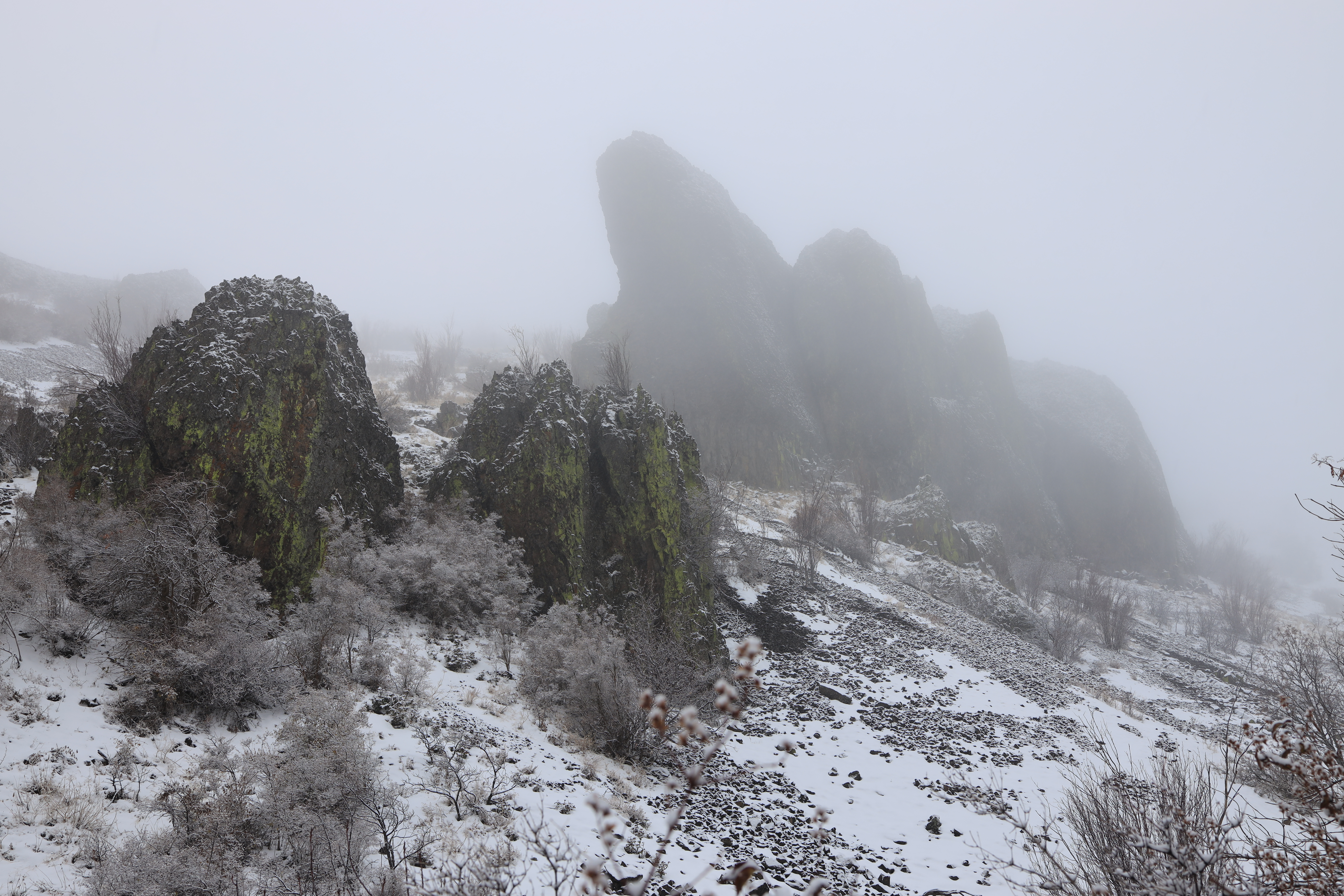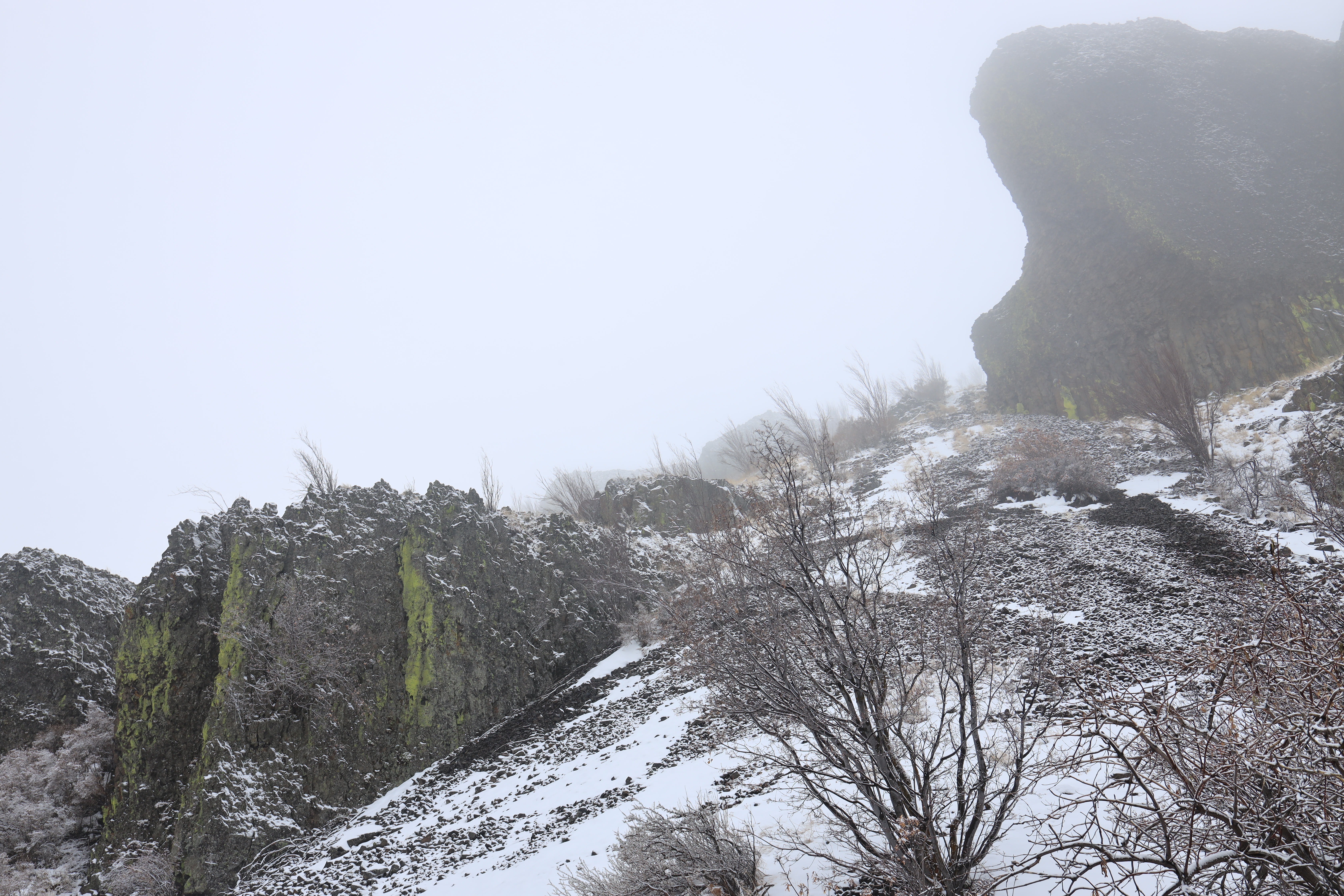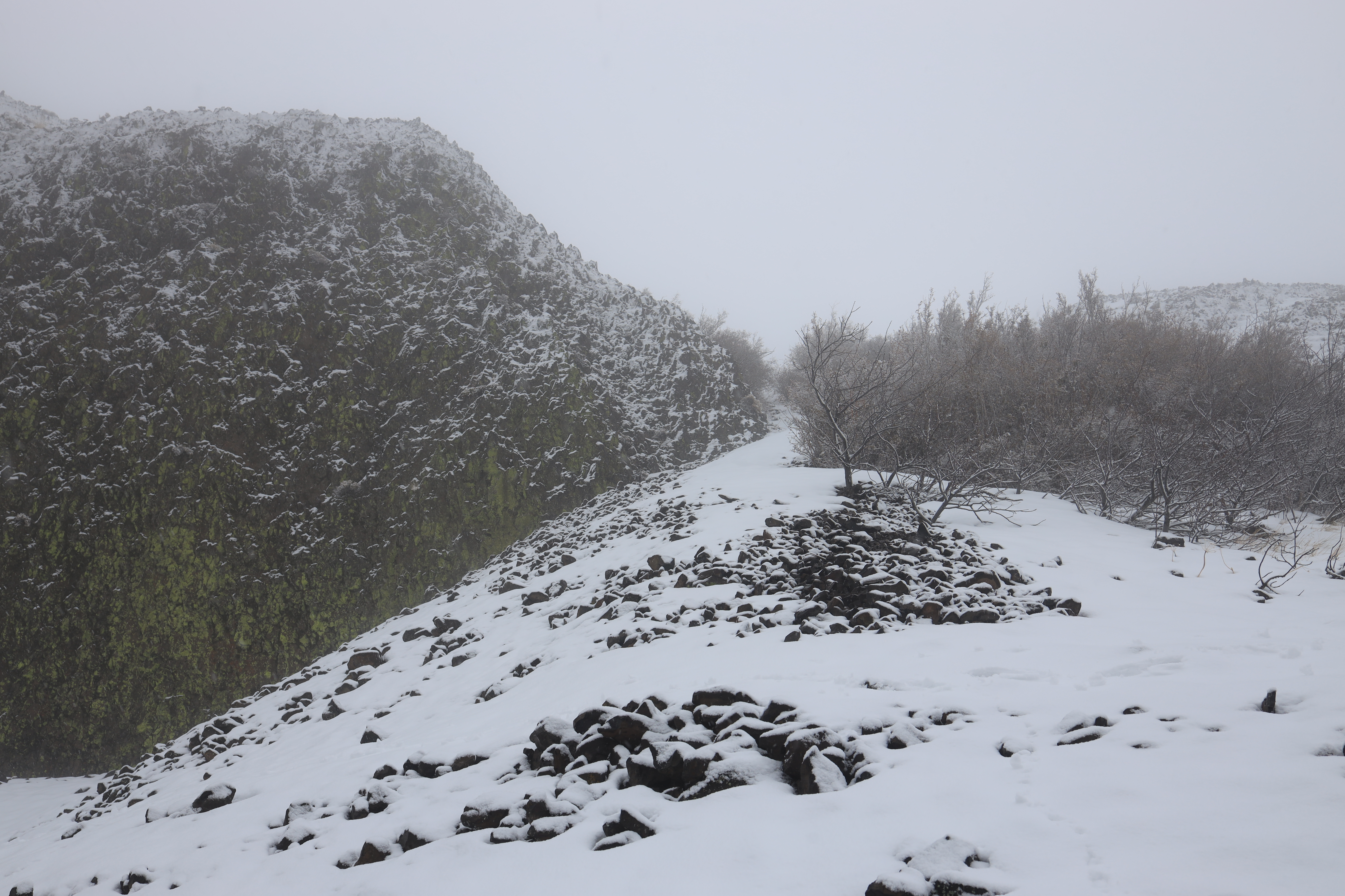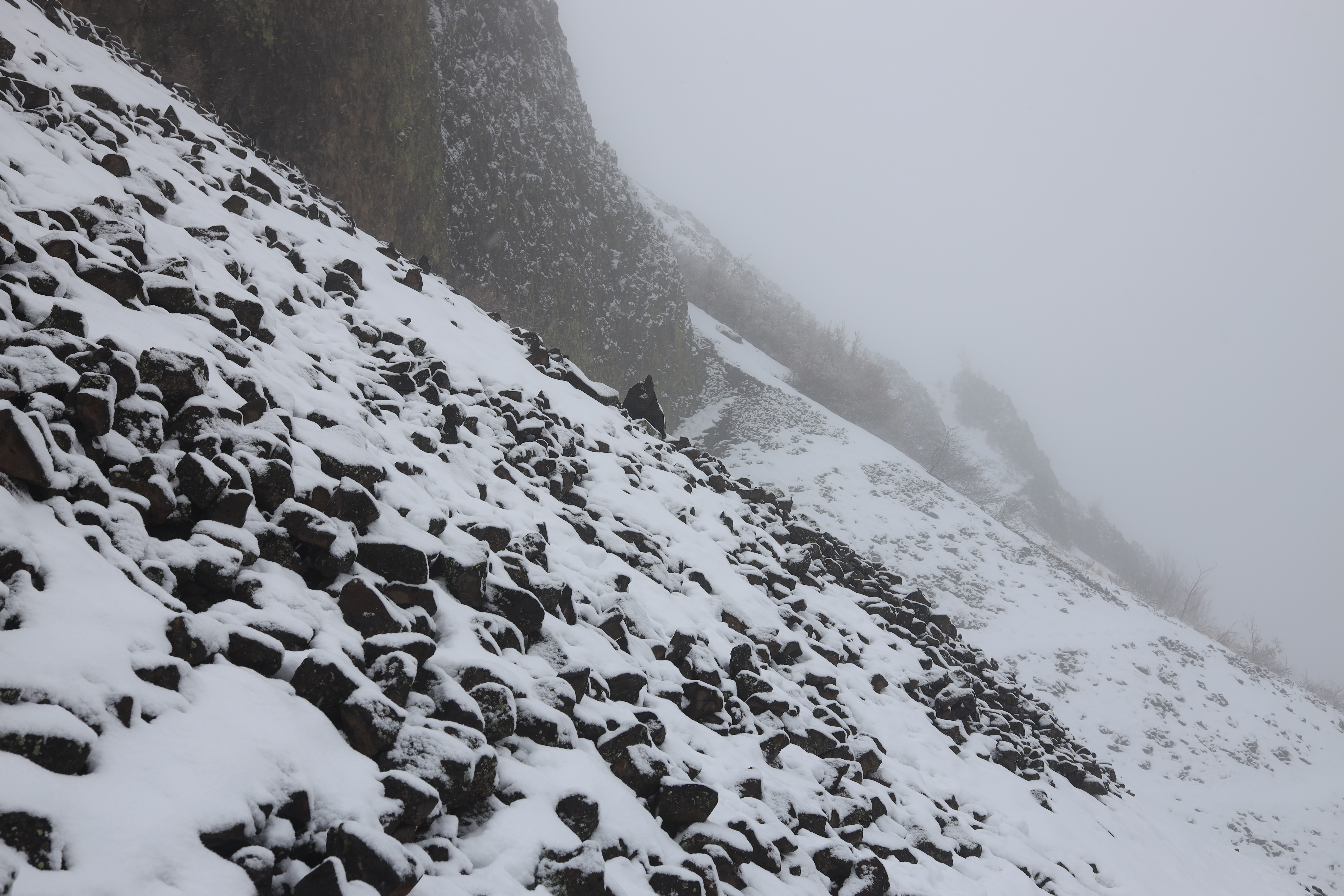 새벽에 등산로입구로 가는 고속도로 (I-90)에는 47번부터 101번 출구까지 약 50마일 (80Km)에 걸쳐 눈이 쏟아집니다. 눈길을 헤치고 산으로 가며, 이게 웬 정성인가 싶네요.