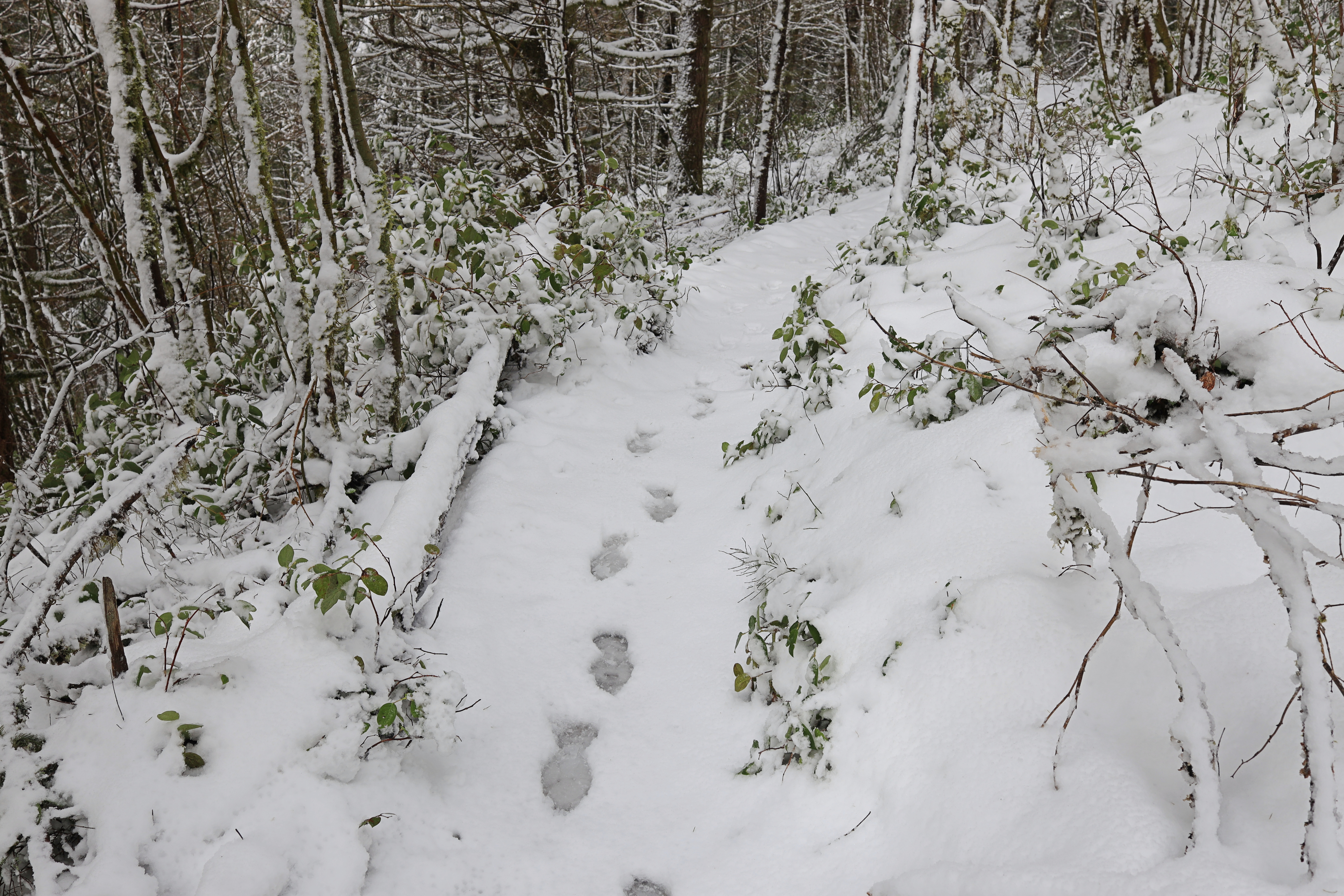 하산길에 보니, 산을 오를 때 남긴 내 발자국이 그새 녹아서 선명해졌습니다.