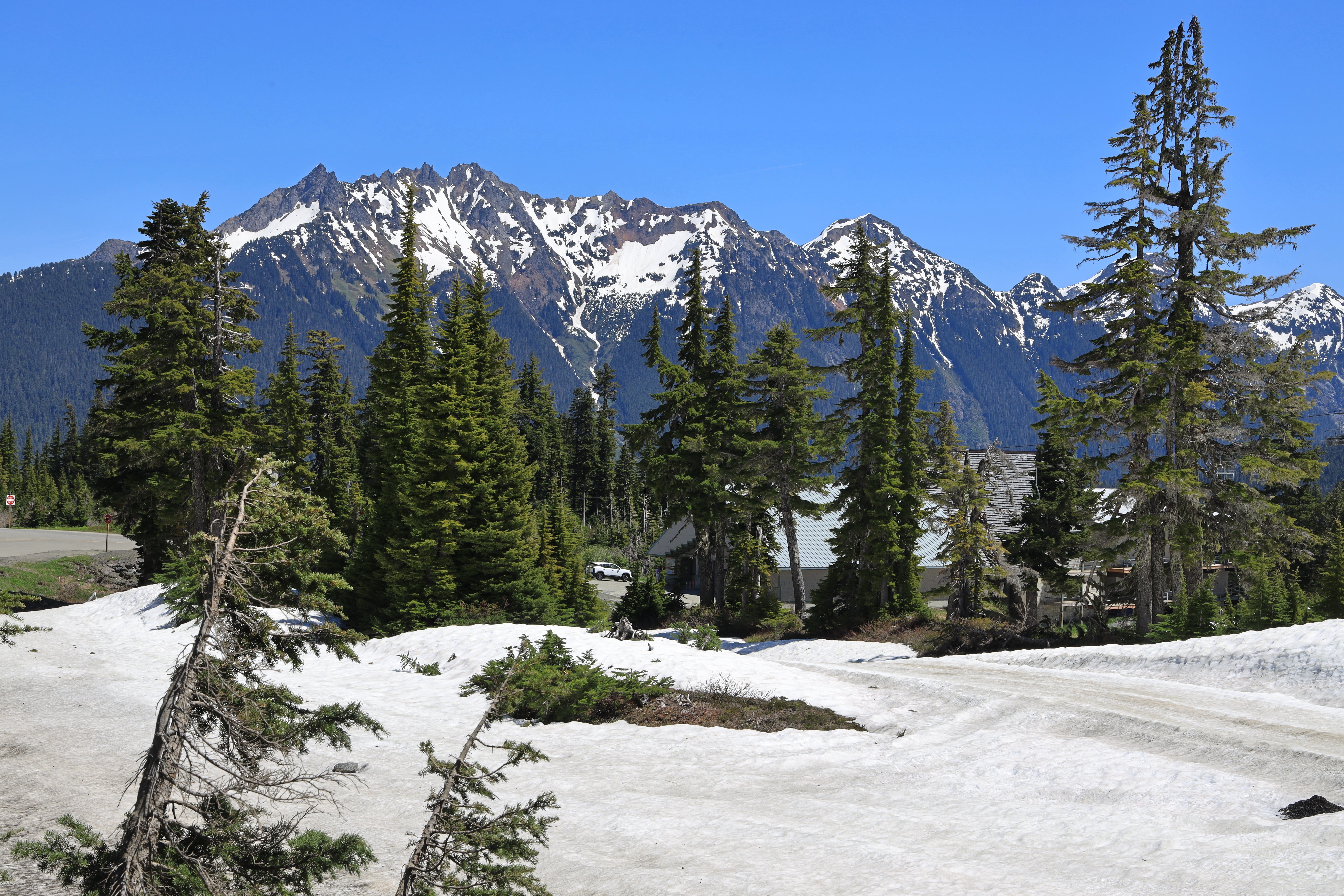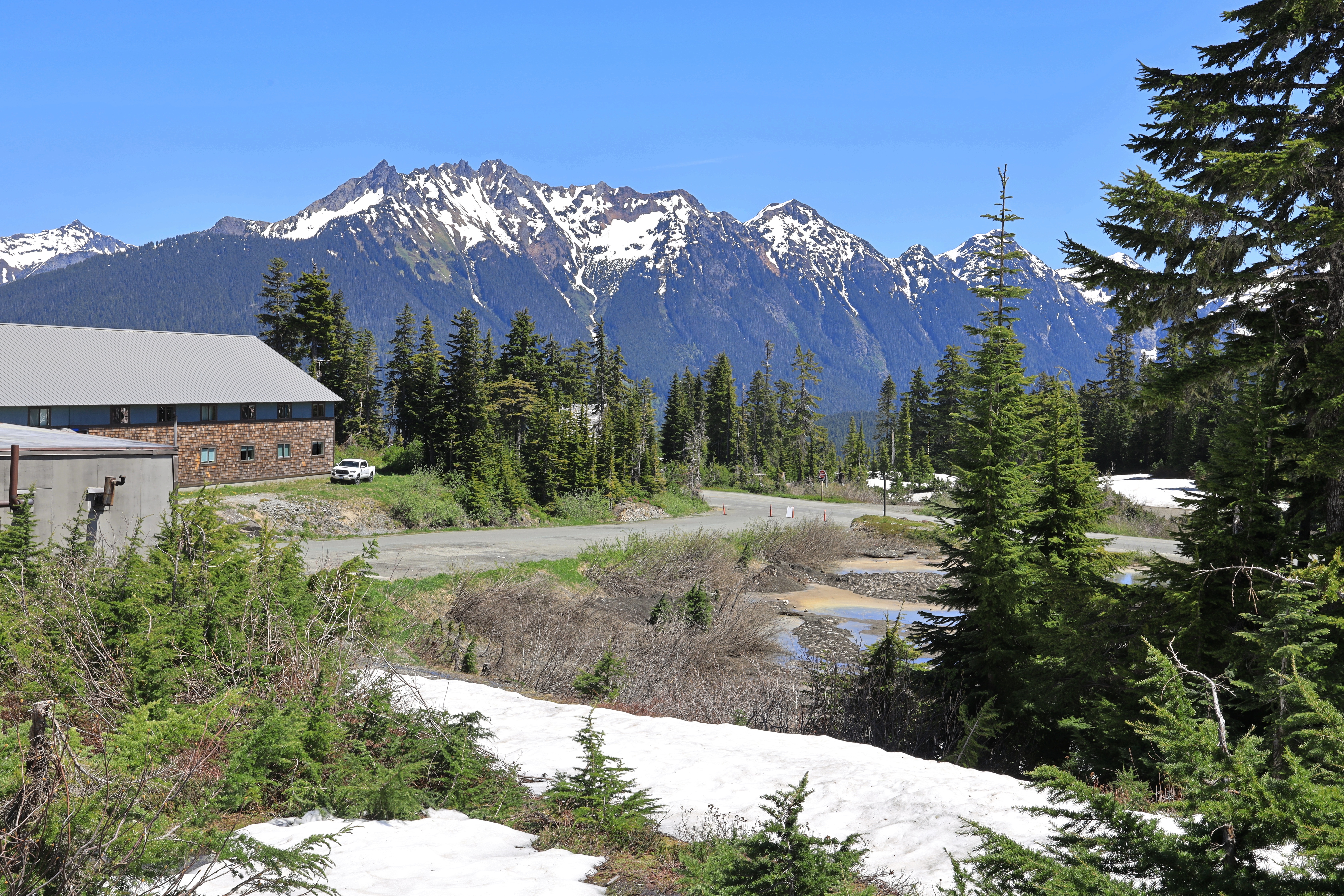 스키장에서 Artist Point 가는 도로는 아직 막혀있습니다. 도로 옆에는 눈이 키높이만큼 쌓여 있고, 도로에는 눈을 치워 놓았네요.