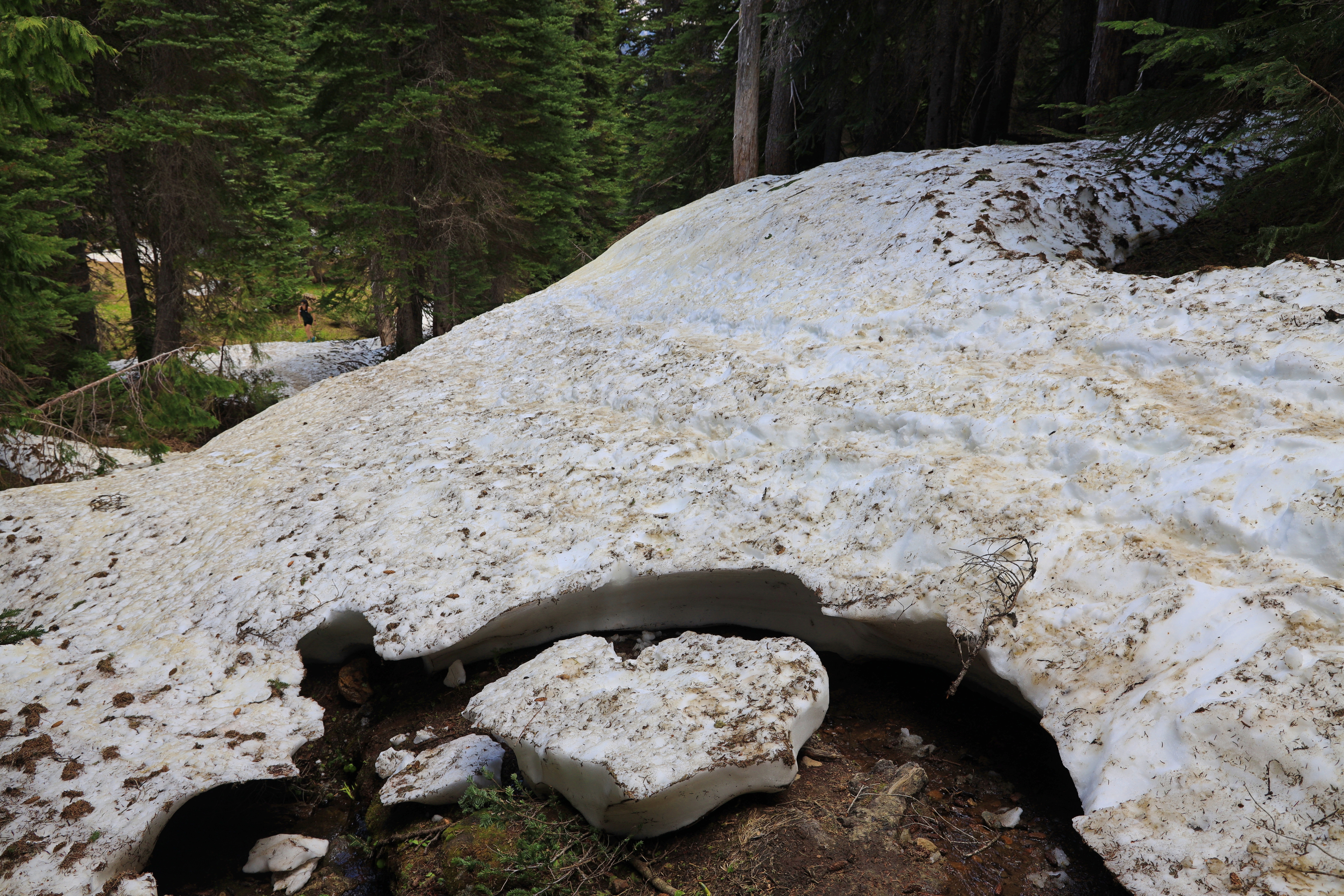 현재 (6월 말) 산 위쪽 (Sunrise)으로 가는 산악도로는 아직 막아 놓았고, 야영장 (White River Campground)으로 가는 도로는 열려있습니다. 아침 7시쯤 야영장 주차장에는 10여 대가 주차돼 있었습니다.