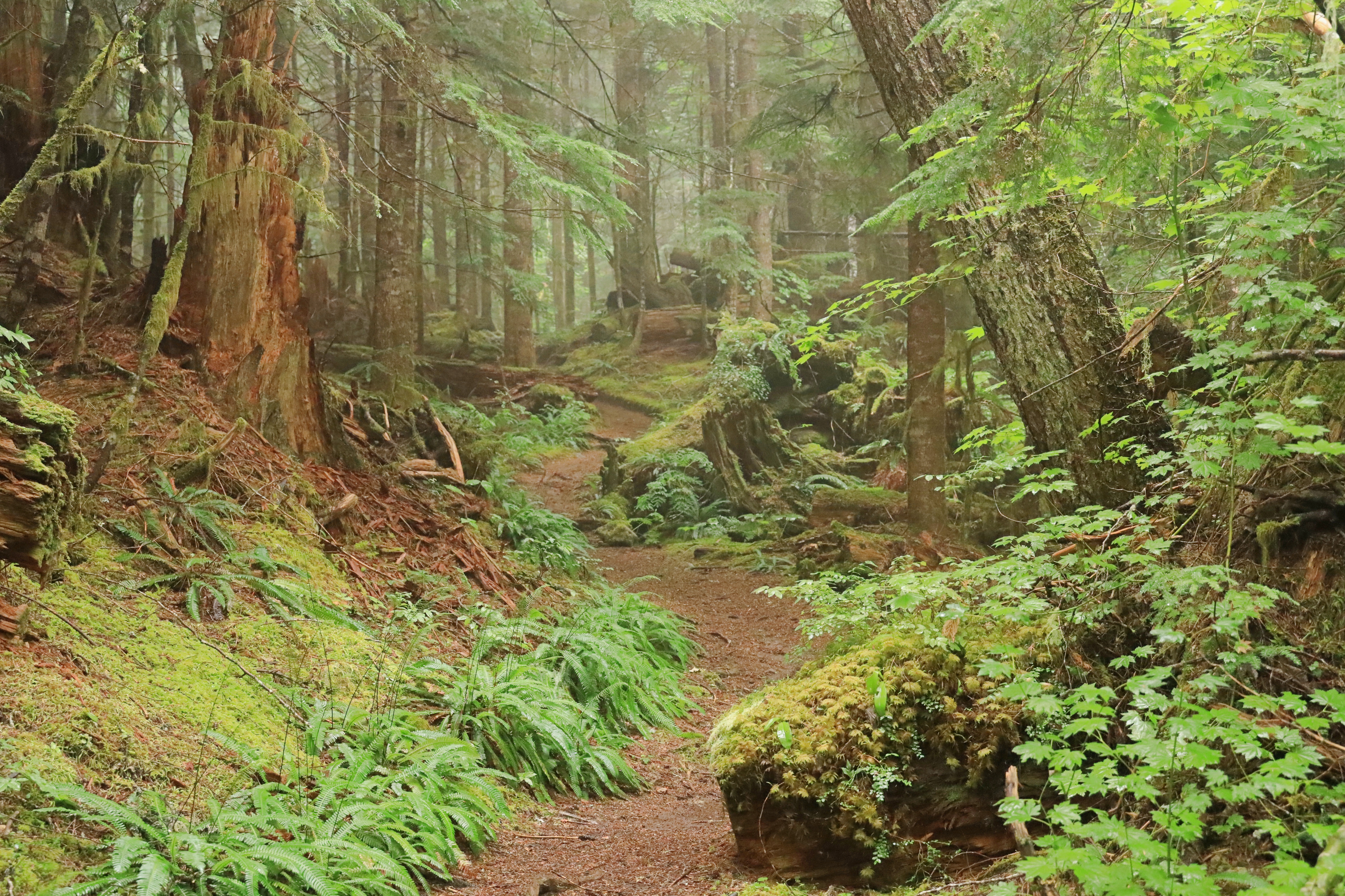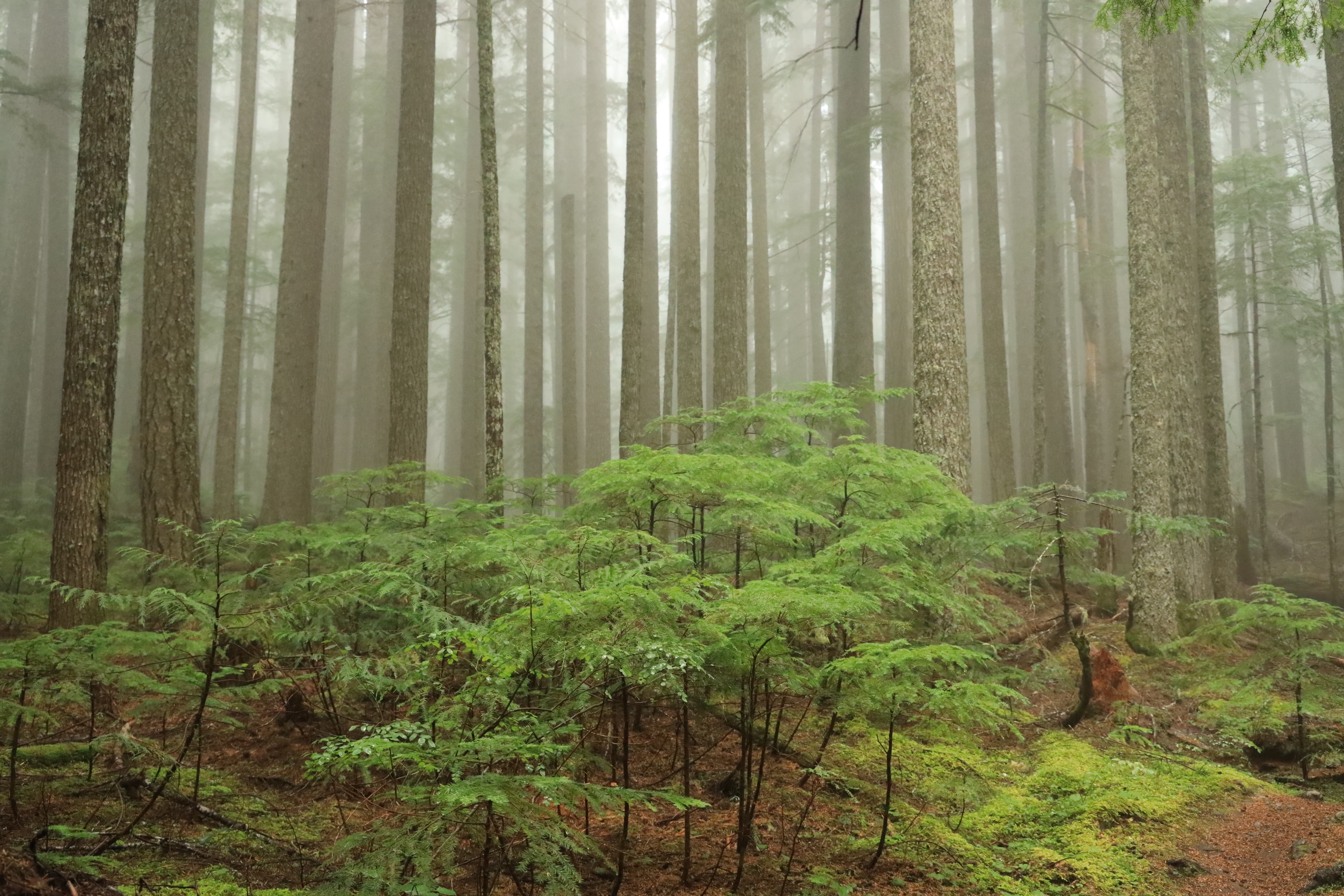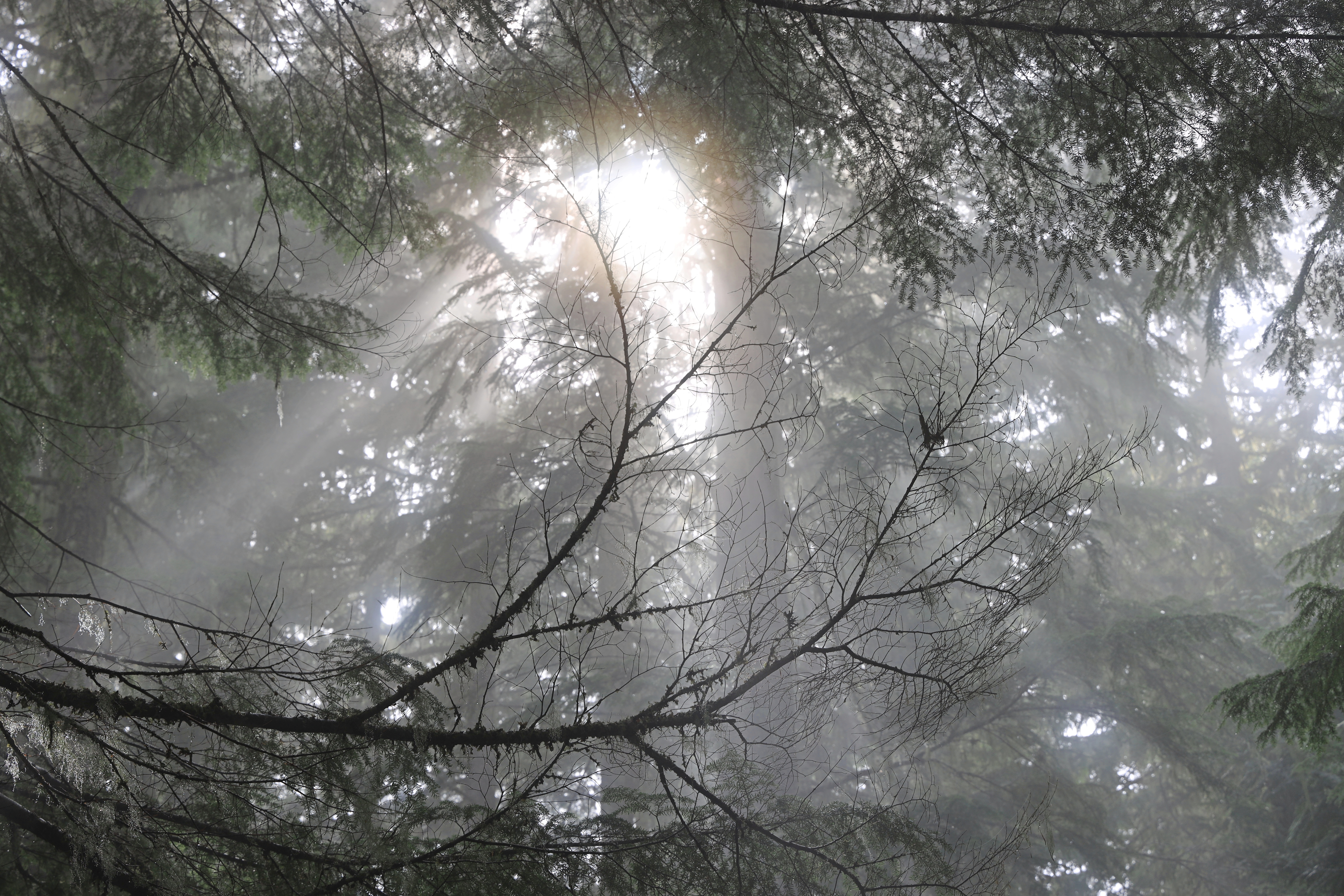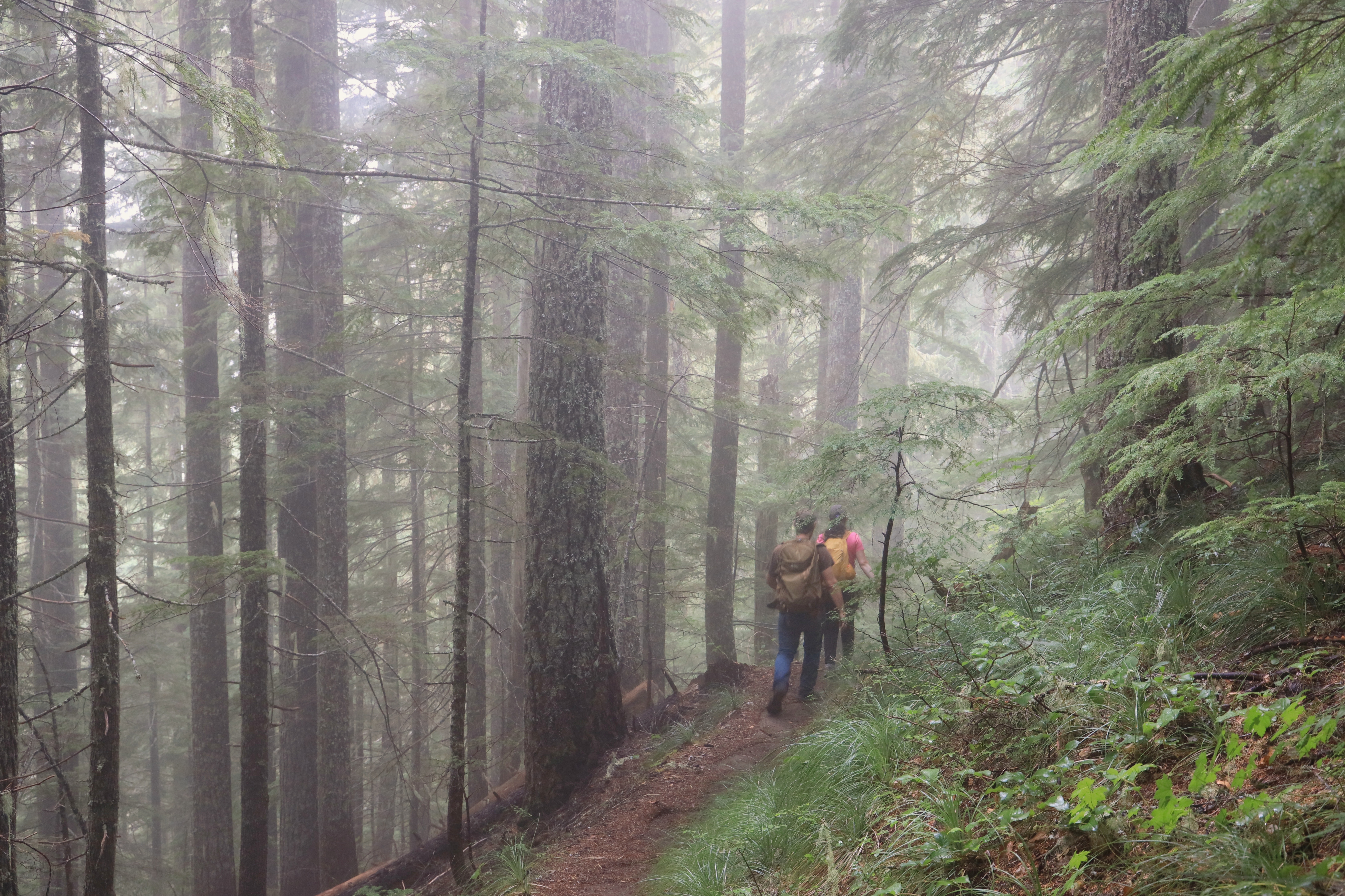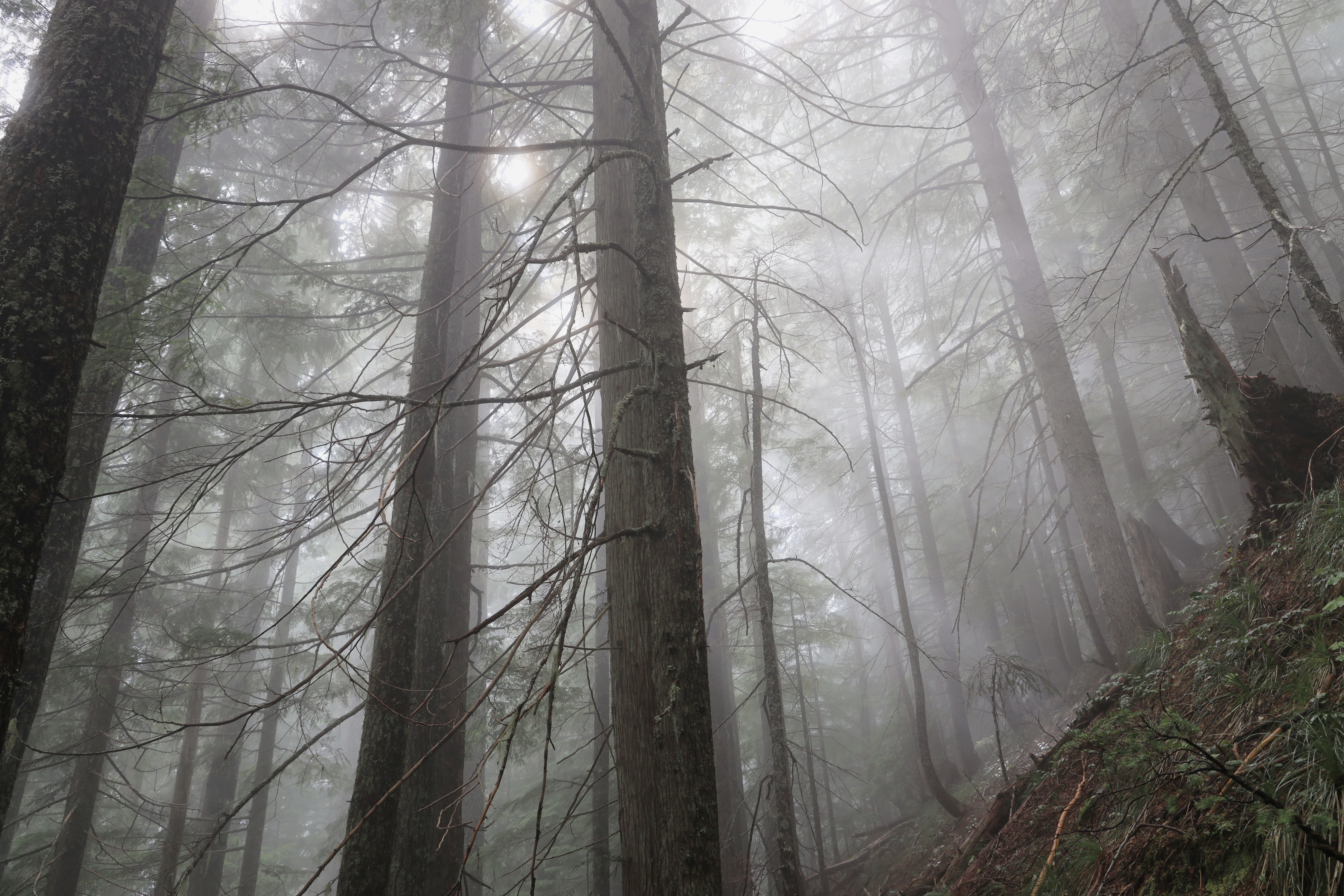 오늘따라 많이 (산행거리 왕복 11.4마일 18.3Km / 오르는 높이 3,800피트 1,158미터) 걸었는데 산 위에서 구름만 잔뜩 보았습니다. 그래도, 숲이 좋아 아주 나쁘지는 않았고, 숲으로 쏟아져 들어오는 환상적인 빛무리를 보았답니다. 그리고, 안개비를 맞으며 급경사를 오르니 덥지 않아 좋네요.