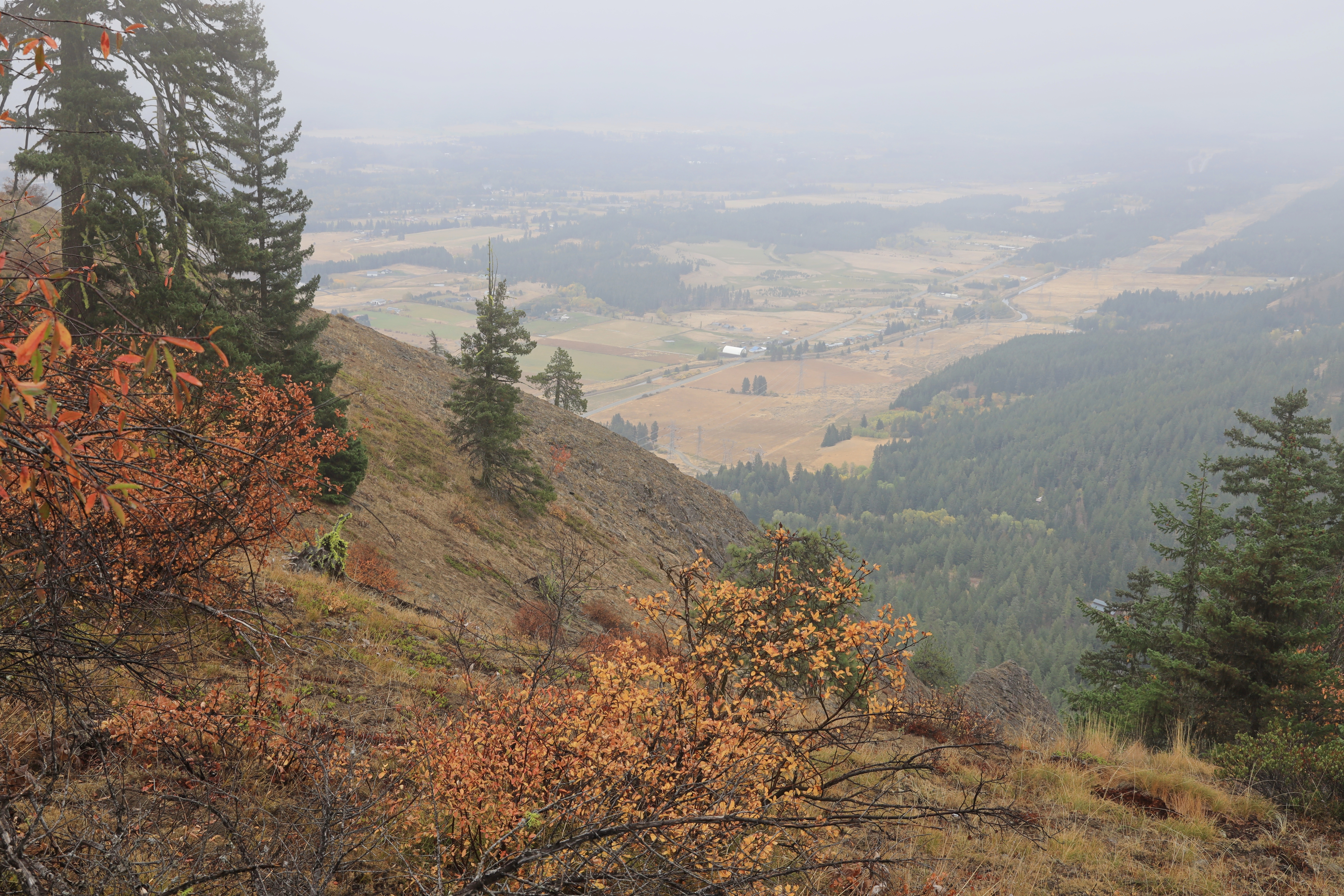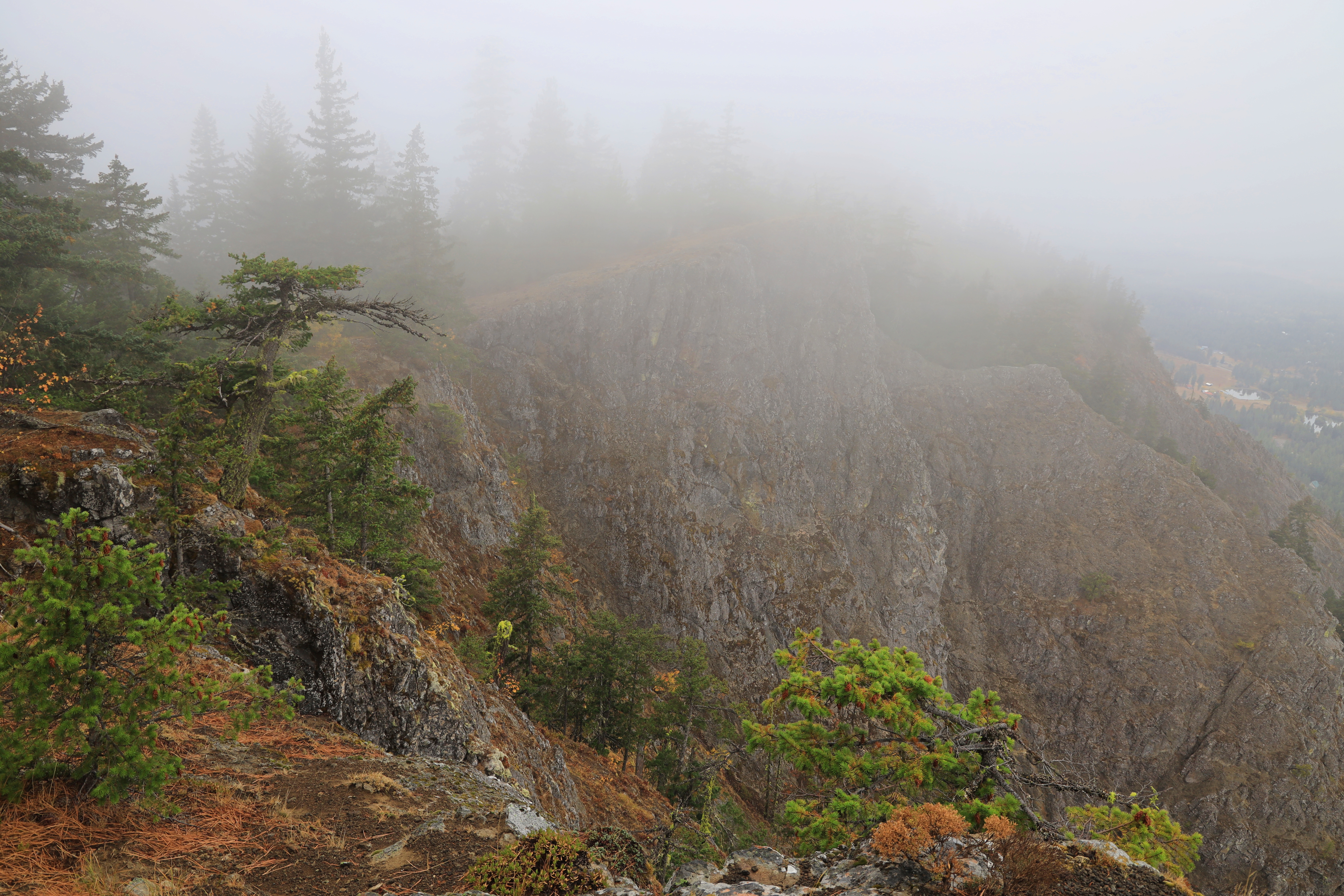 집동네에 비 올 때 가려고 남겨두었던 Peoh Point를 먼저 올랐습니다. 절벽 위에서 마을이 한눈에 보이는 전망 좋은 곳입니다. 그런데, 캐스케이드 산맥 너머라서 비가 오지는 않았지만 구름 속에서 눈발이 날립니다. 기온은 33'F (0.6'C) 였는데 바람 부니 춥네요.